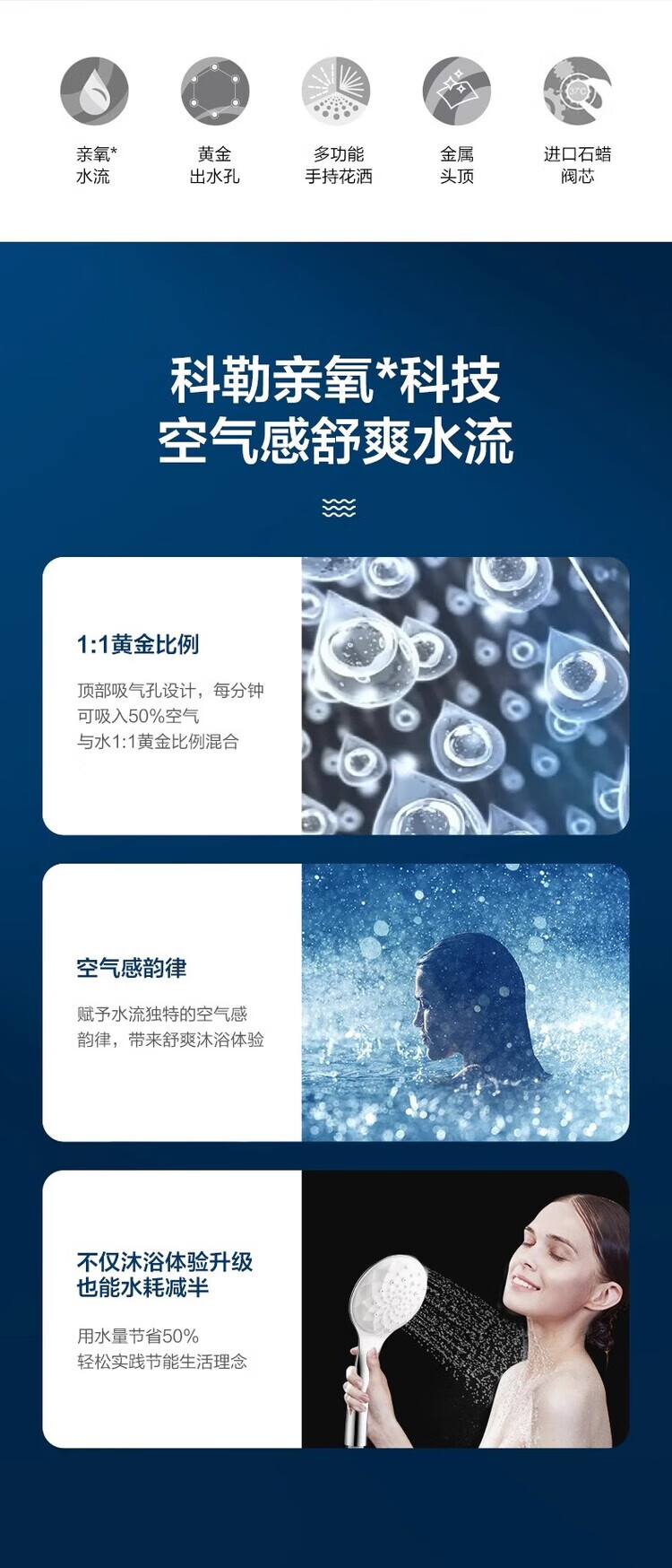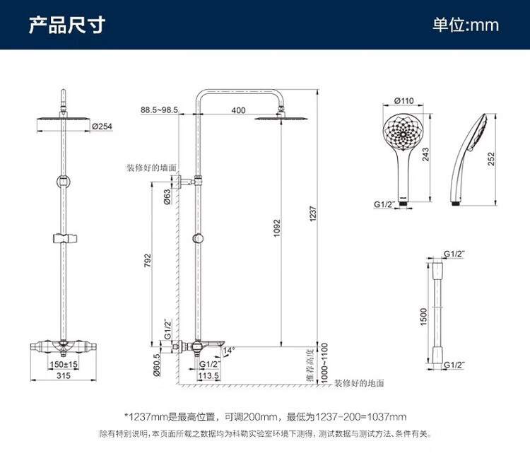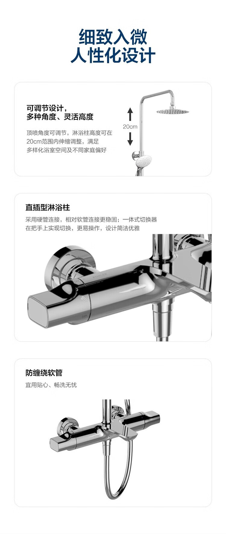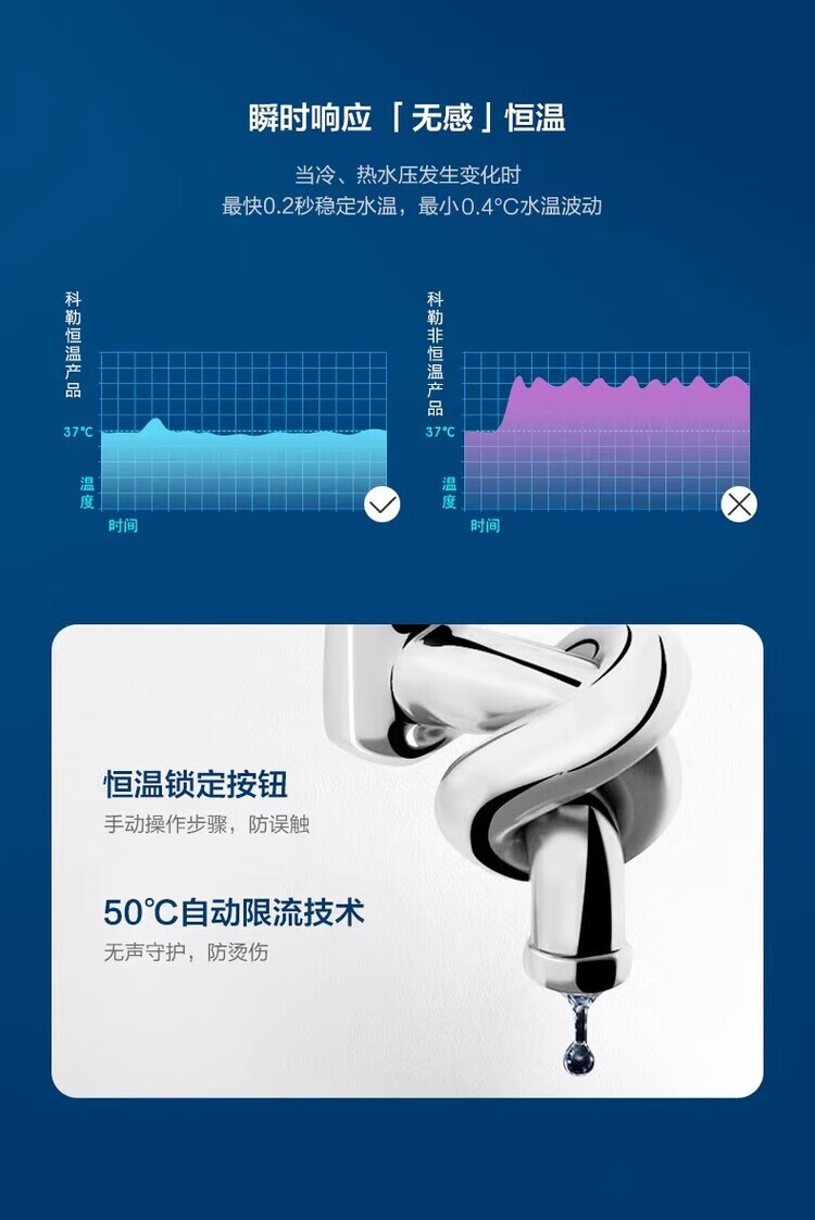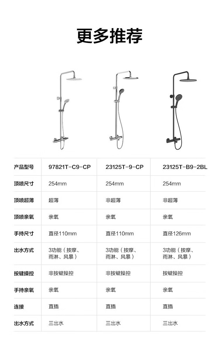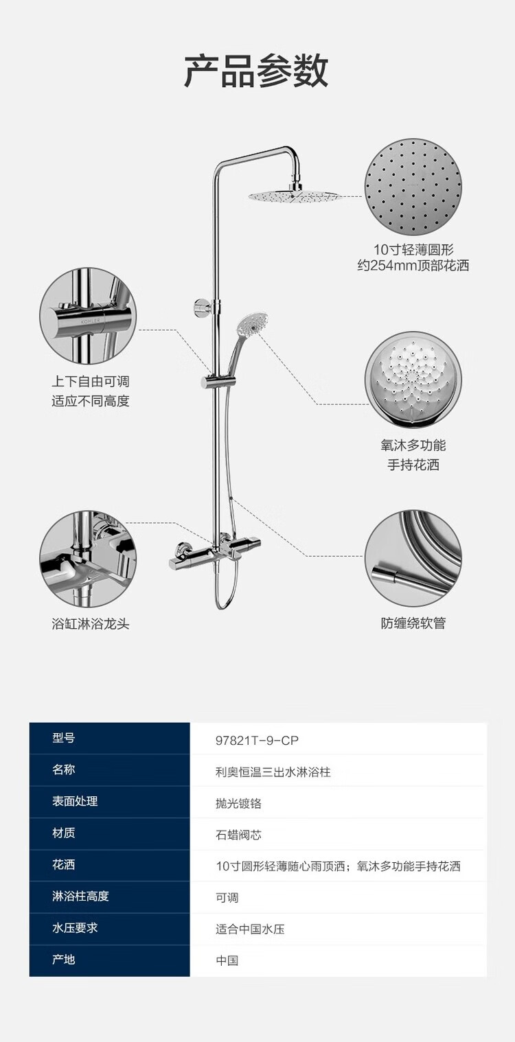Kohler selects American high-end Leo K-97821T/97822T-CP constant temperature wall-mounted all-copper three-outlet shower head K-97821T-9-CP with lower outlet