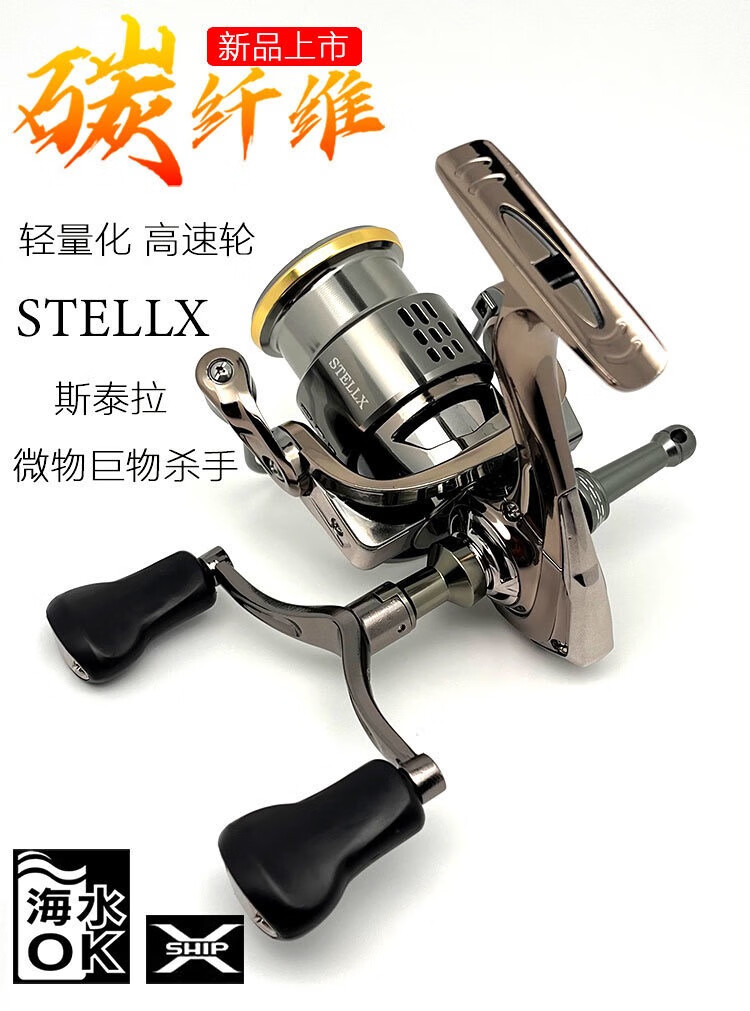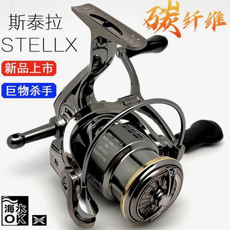 SHIMANO Stella Spinning Wheel Long-range Casting Domestic Golf Oblique Mouth No Gap Long-range Casting Luya Wheel Sea Fishing Black 2500s Double Rocker + Balance Rod