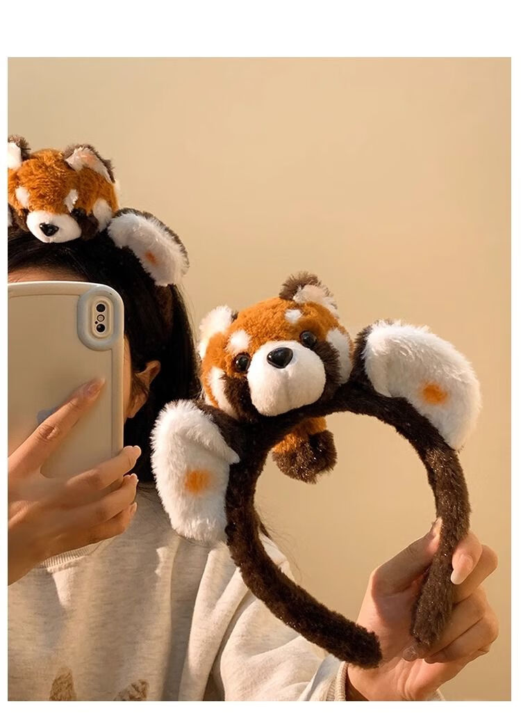 Hai Yiduo Cute Raccoon Headband Zoo Plush Red Panda Funny Headband Peripheral Hair Accessories Cartoon Headwear Photo Hairpin Plush Red Panda Headband 1 Pack