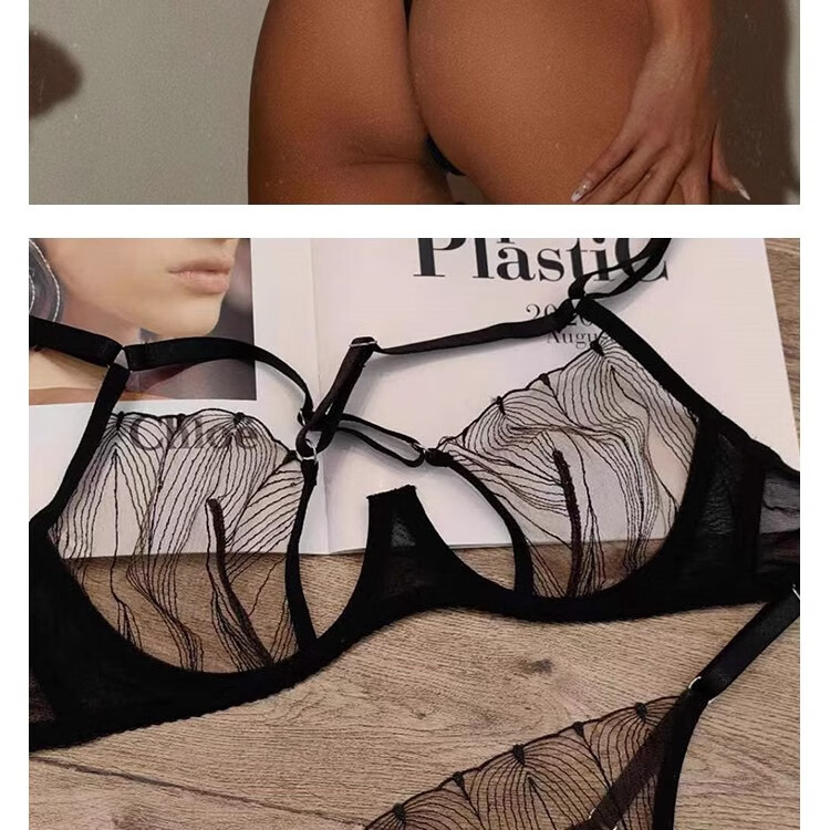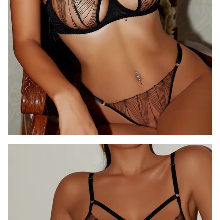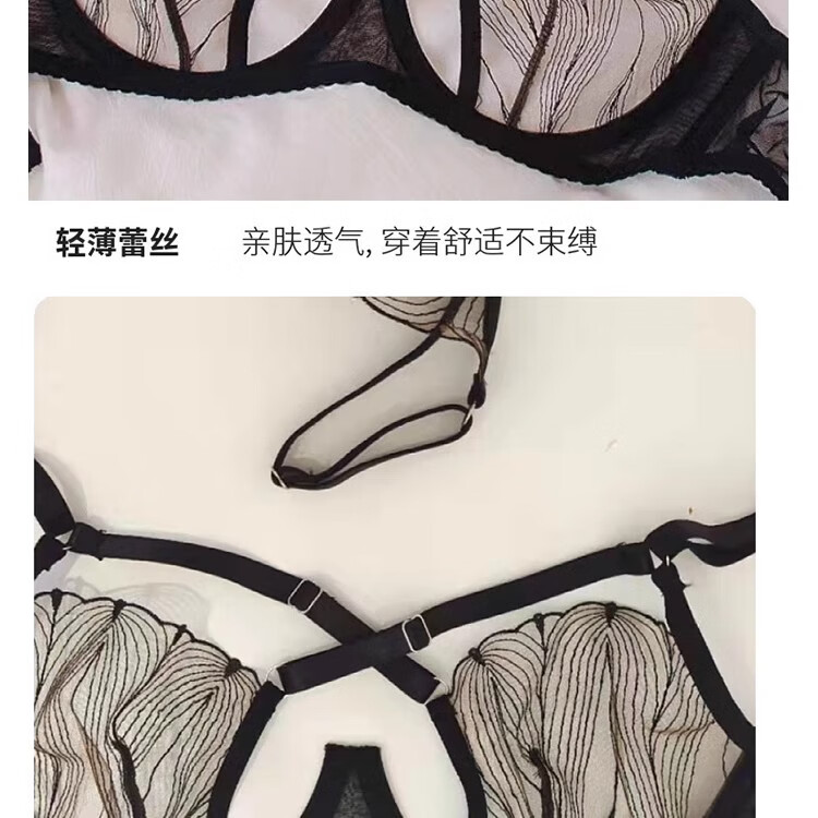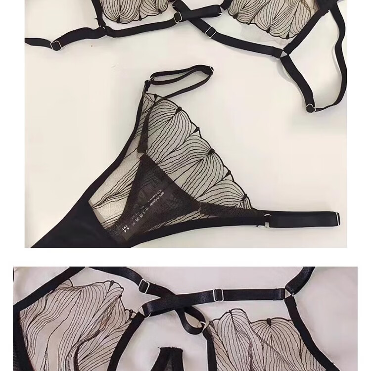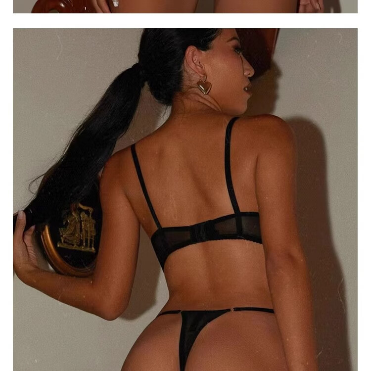 Victoria Palace Sexy Underwear Cross Strap Top Support Big Breast Reduction Anti-sagging Lace Bra Thong Bra Set Black M