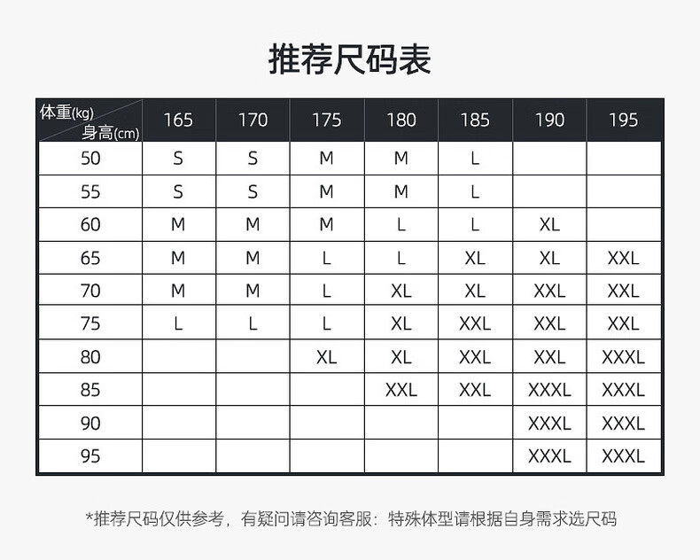China (cm) 165 / 88-90 170 / 96-98 175 / 108-110 180 / 118-122 185 / 126-130