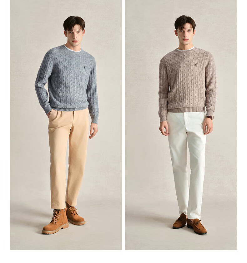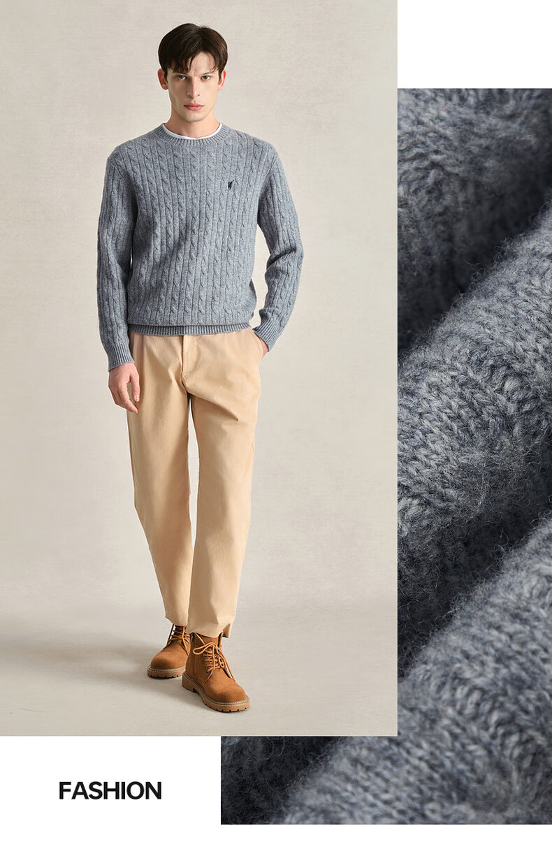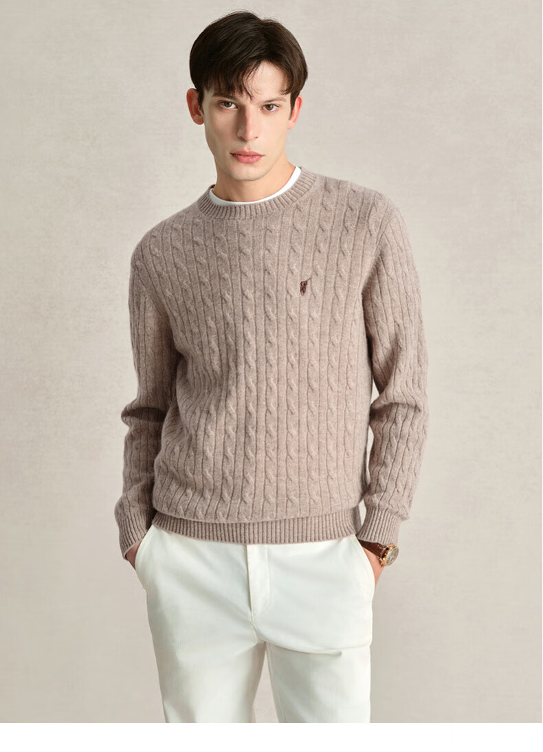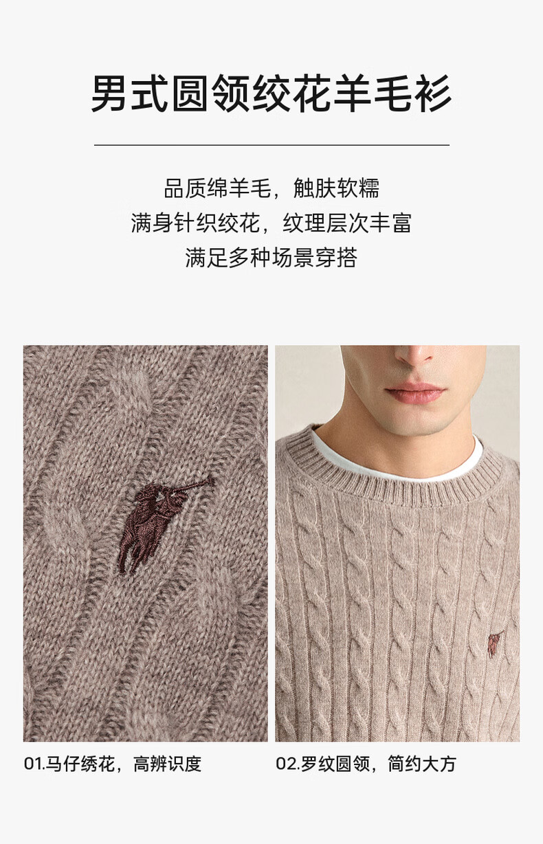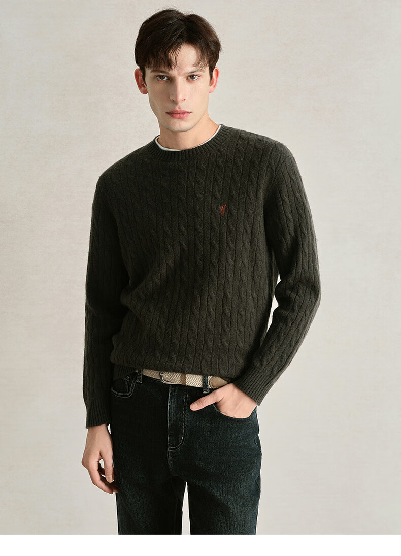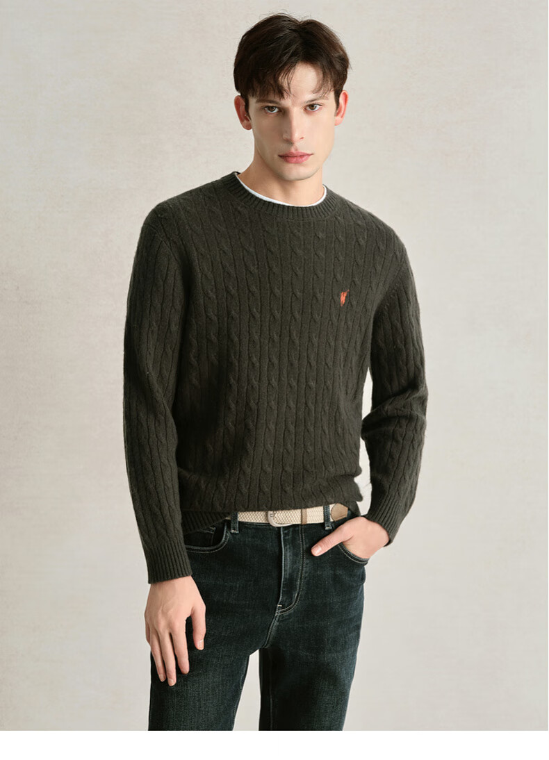 POLOWALK Мужской свитер 2024 Осень и зима Новый вязаный свитер с круглым вырезом Мужской кардиган цвета хаки M (170)