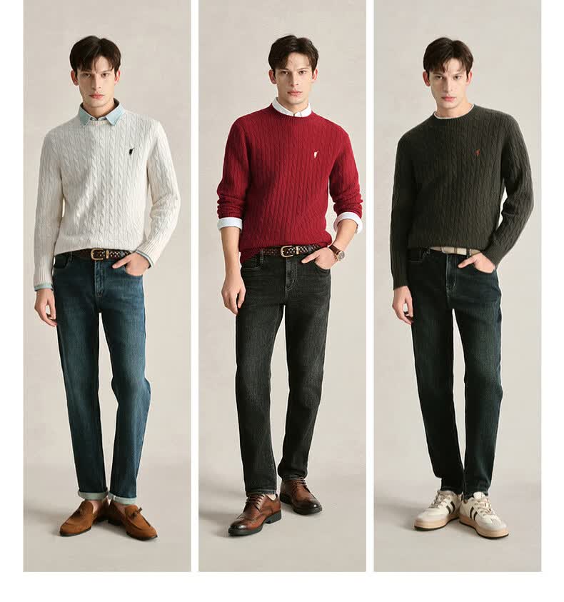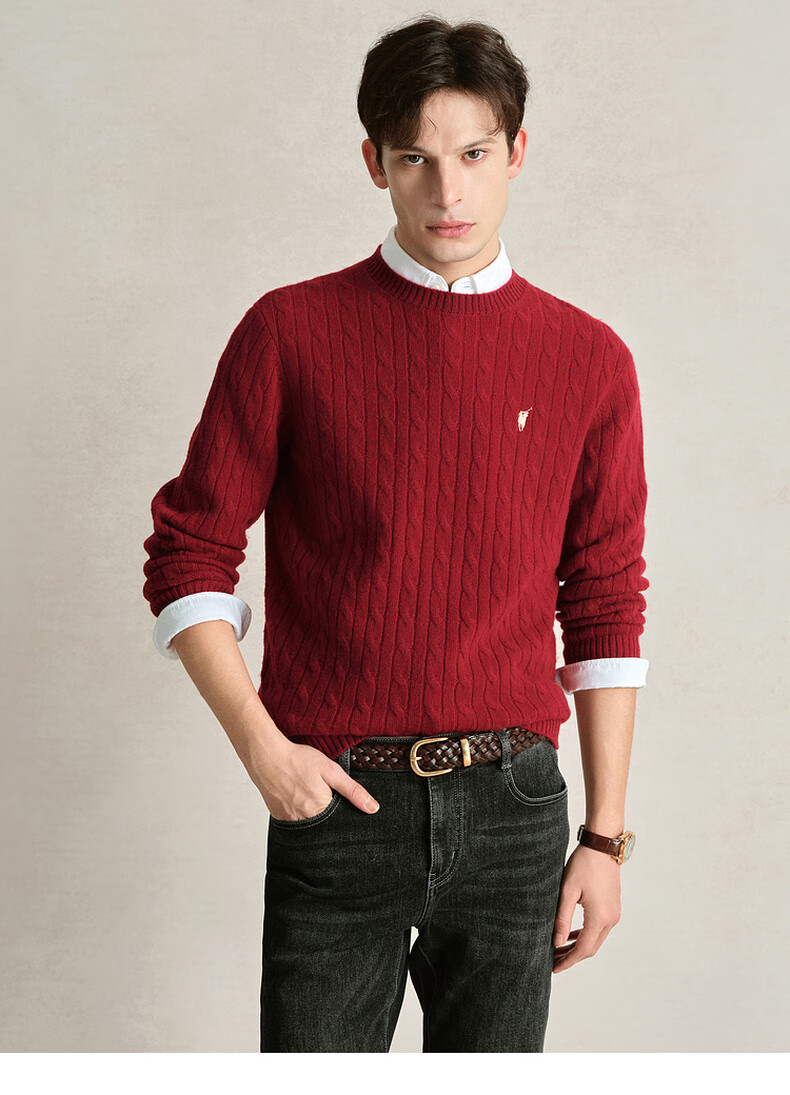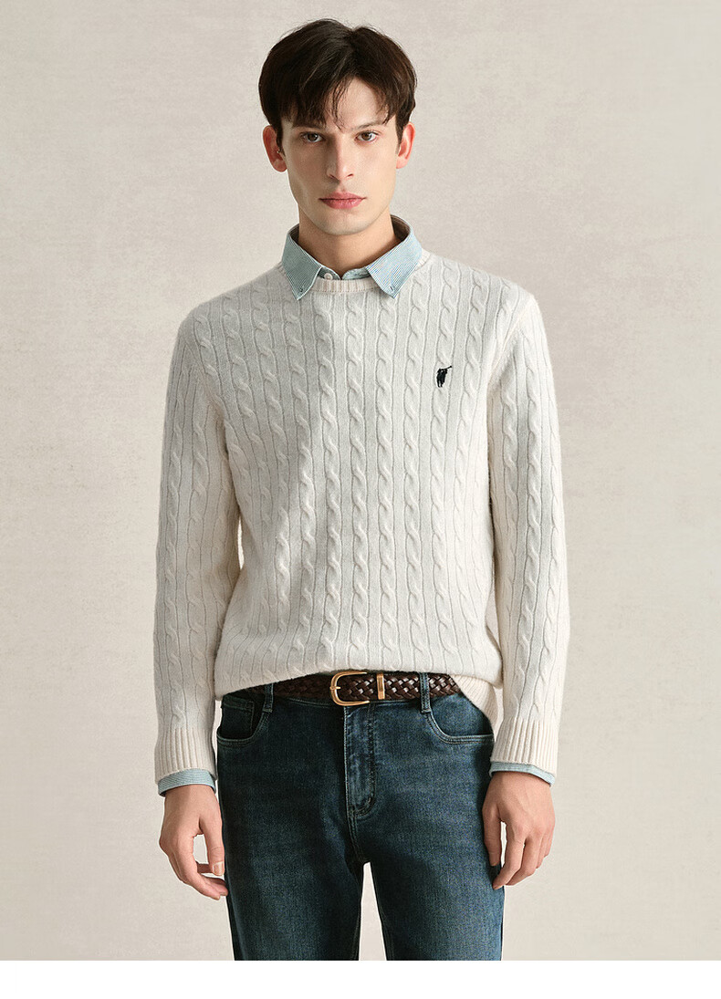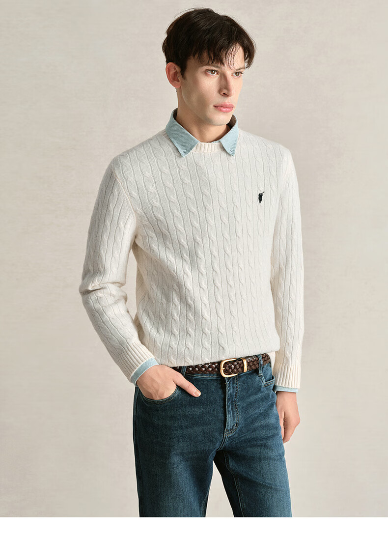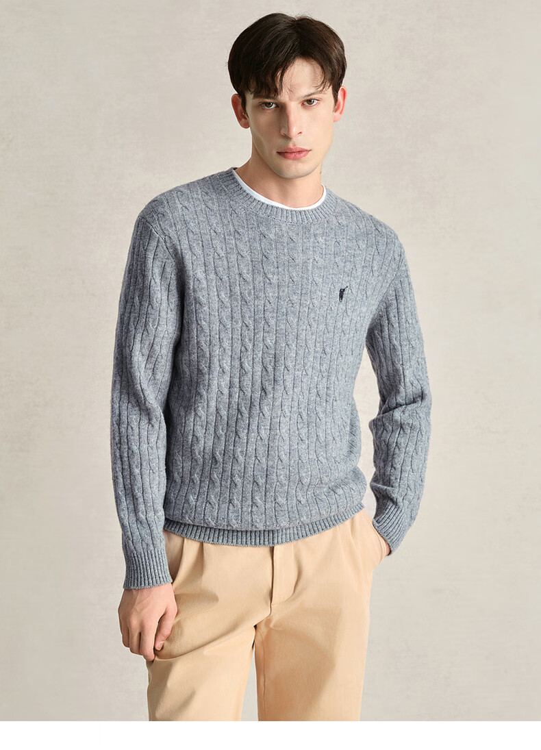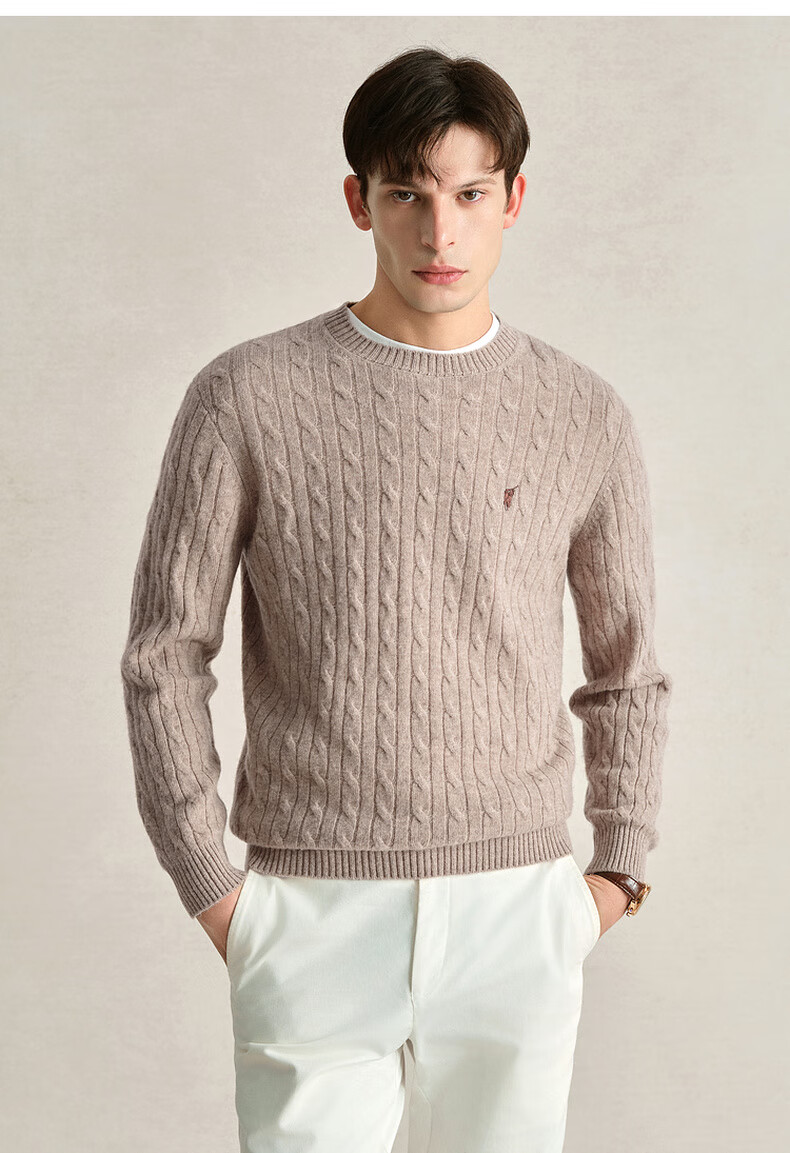POLOWALK Мужской свитер 2024 Осень и зима Новый вязаный свитер с круглым вырезом Мужской кардиган цвета хаки M (170)
