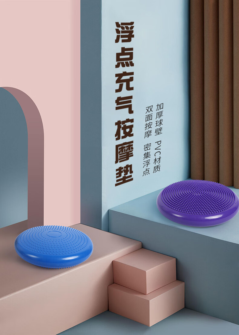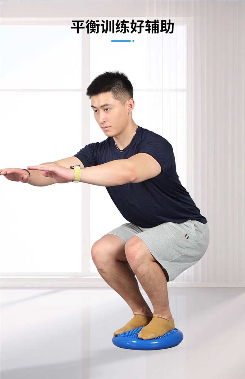 瑜伽充气坐垫 按摩坐垫感统康复训练平衡盘脚踝锻炼平衡稳定器材 蓝色赠充气筒