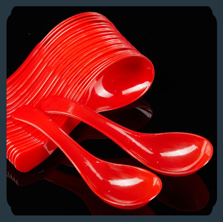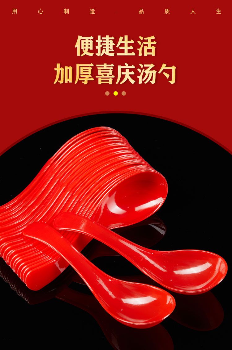Yuque disposable spoon thickened wedding banquet spoon plastic red spoon plus hard spoon wedding birthday banquet home banquet red round bottom crystal spoon thickened 50 pieces