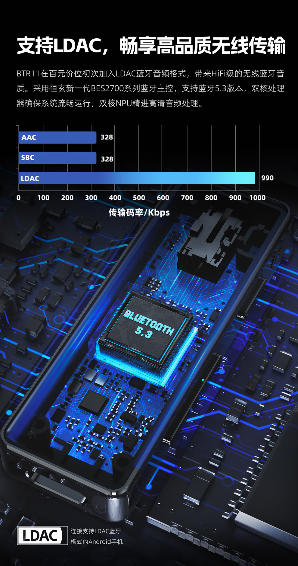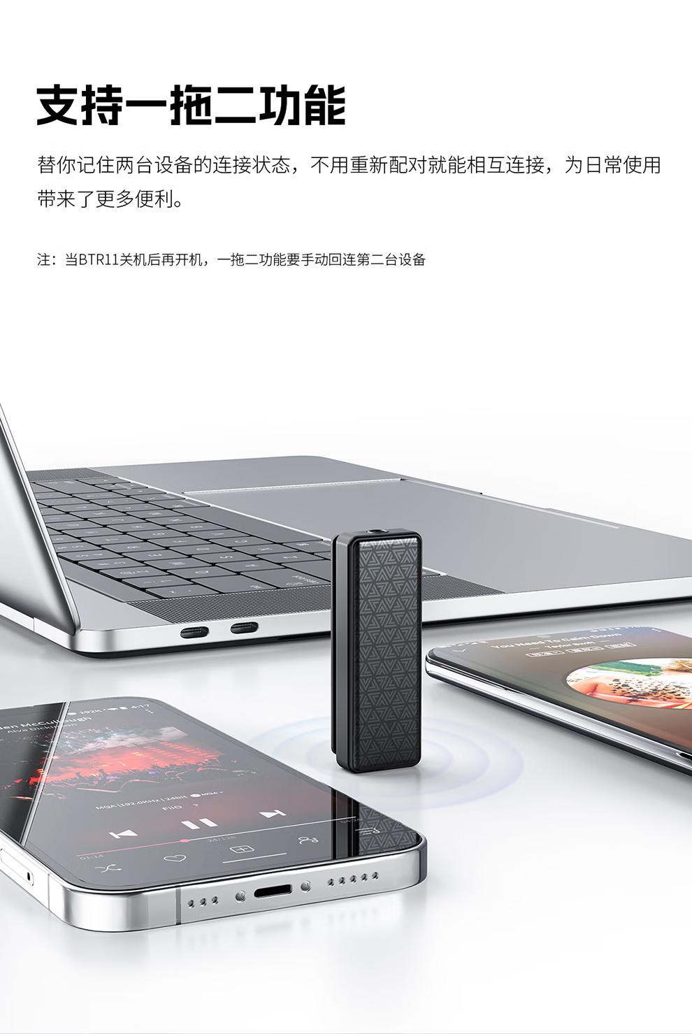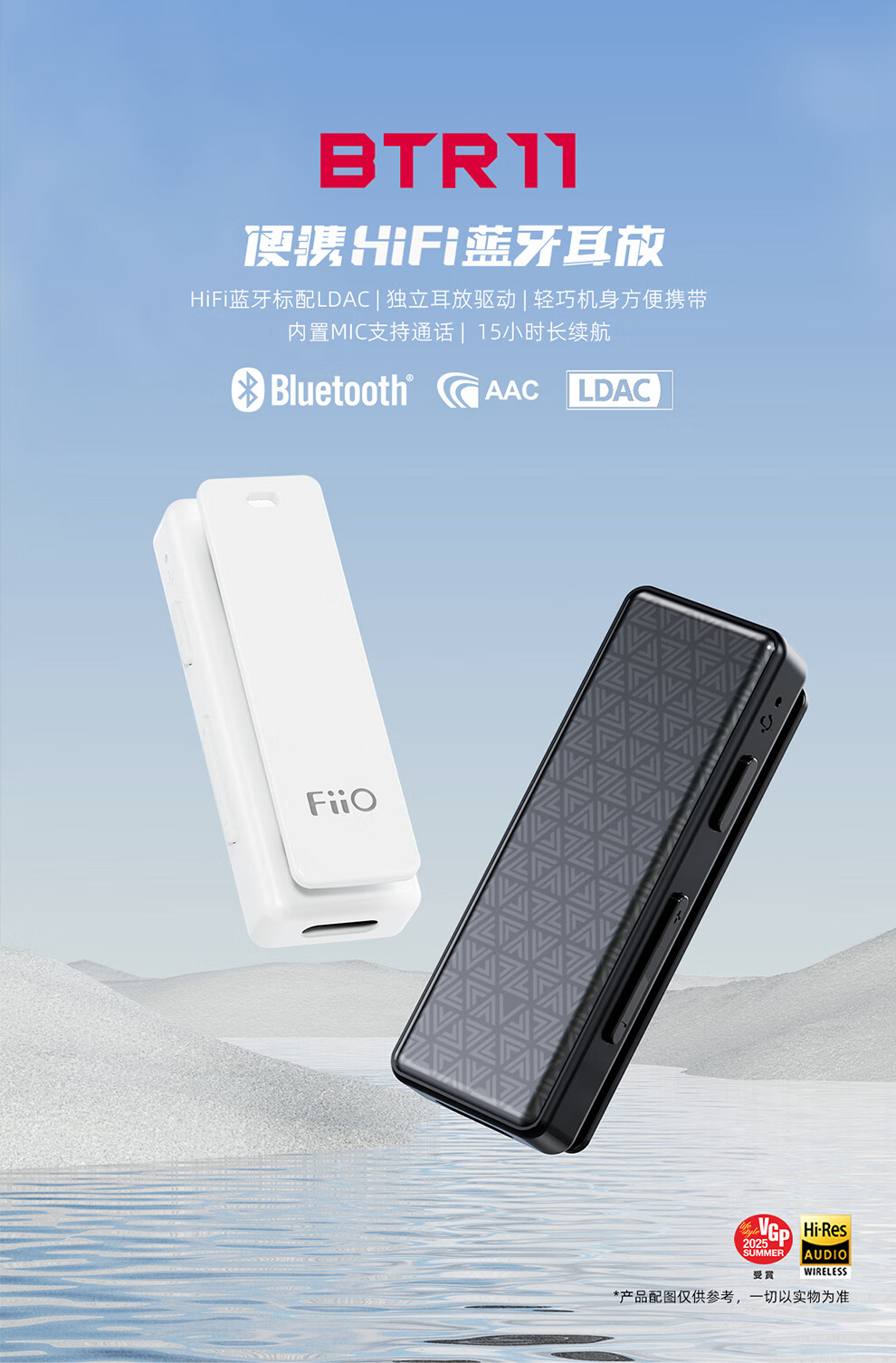 FiiO BTR11 Bluetooth 5.3 audio receiver headphone amplifier with mic for calls, universal for computer, desktop, tablet and mobile phone player, supports LDAC AAC, black
