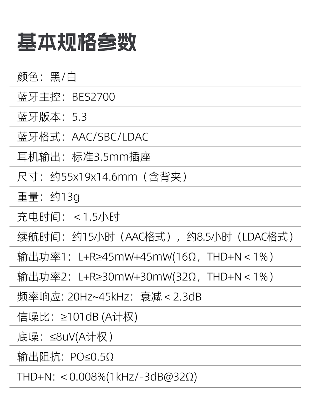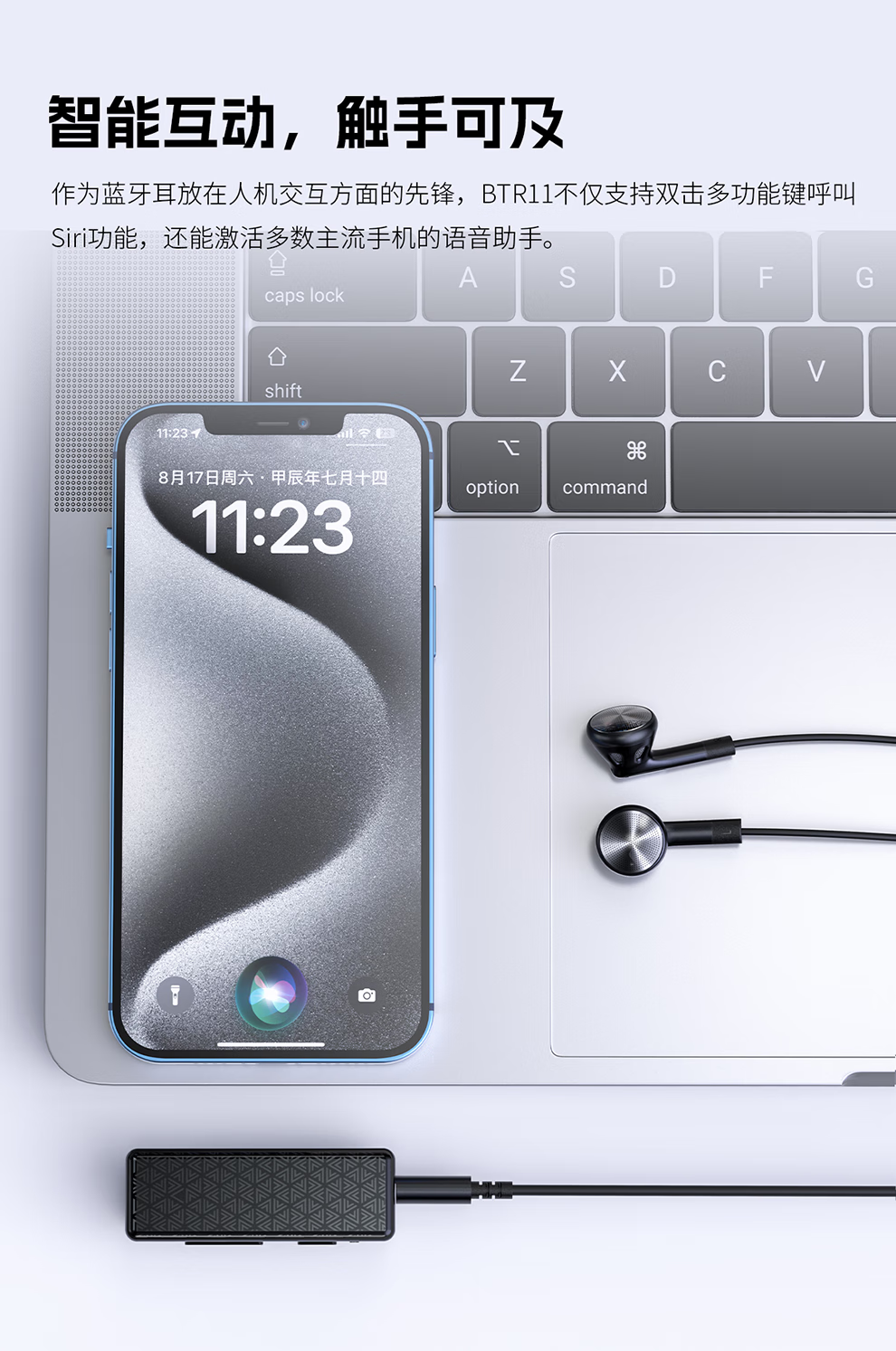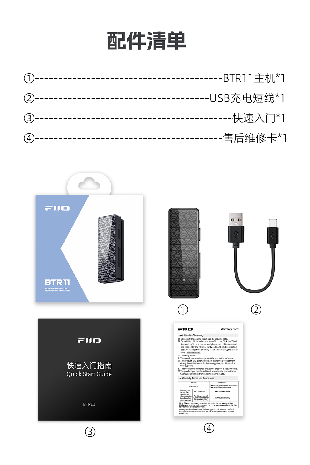 FiiO BTR11 Bluetooth 5.3 audio receiver headphone amplifier with mic for calls, universal for computer, desktop, tablet and mobile phone player, supports LDAC AAC, black