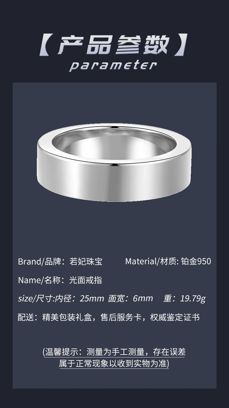 Ruofei platinum ring men's wide ring pt950 smooth solid aperture plain ring simple plate ring platinum men's ring ring engraving 30g (width 8mm) platinum smooth ring No. 18