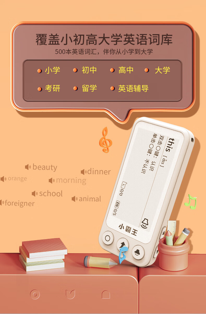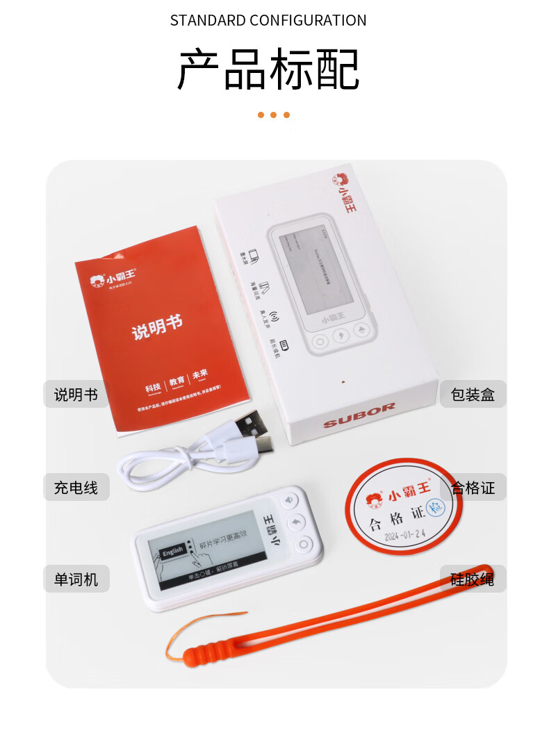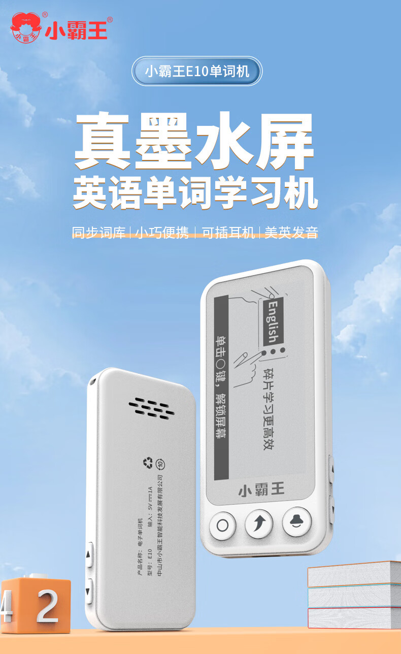 Xiaobawang E10 word machine English learning machine, eye-protecting ink screen, primary school, high school, university synchronization thesaurus, pocket portable memorization tool, students-specific accurate pronunciation, gift-wired headphones, eye-protecting ink screen, universal for primary school, high school and studying abroad