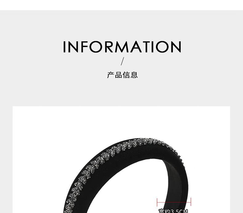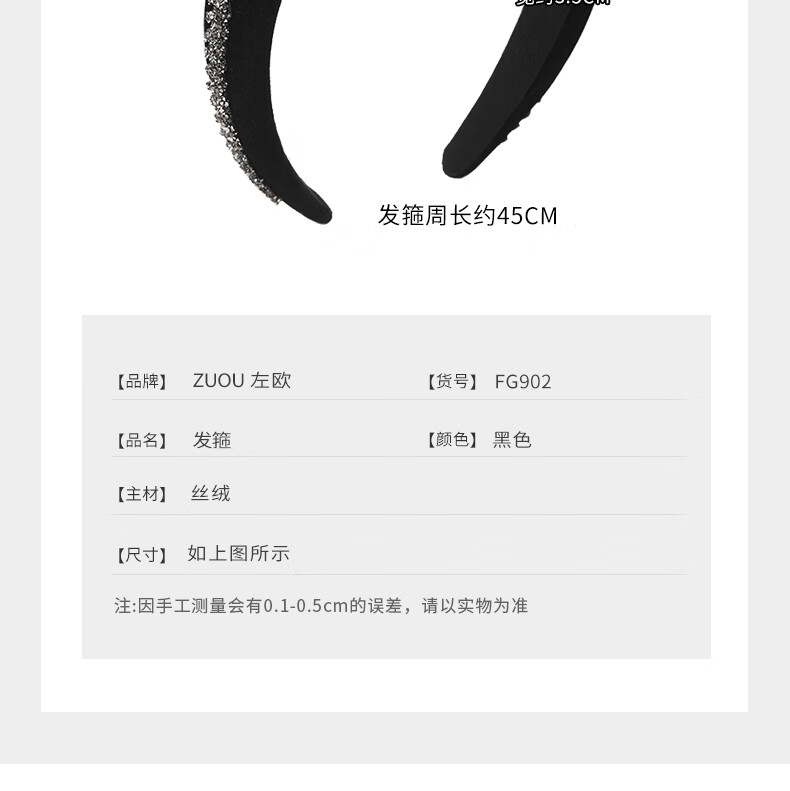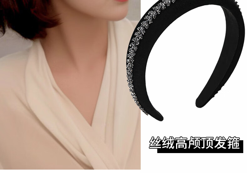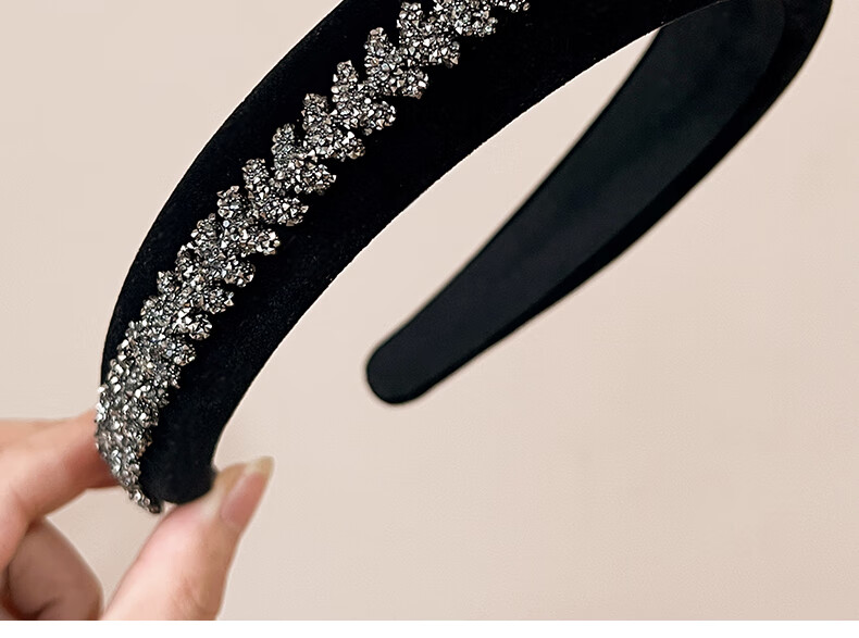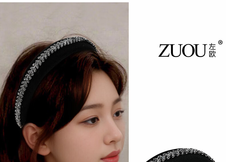 Zuoou hairband for women, high-end, fashionable, wide-brimmed hairpin, black sponge hairpin, velvet rhinestone headband, hair hole headdress, black
