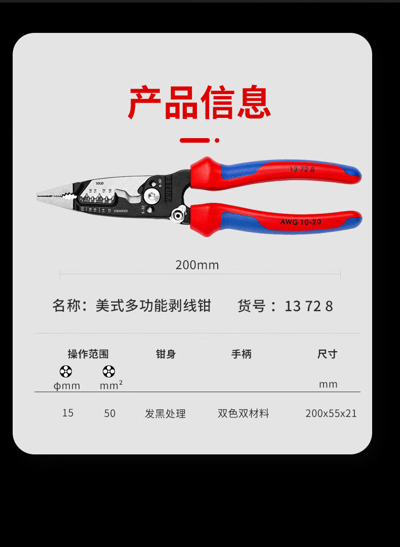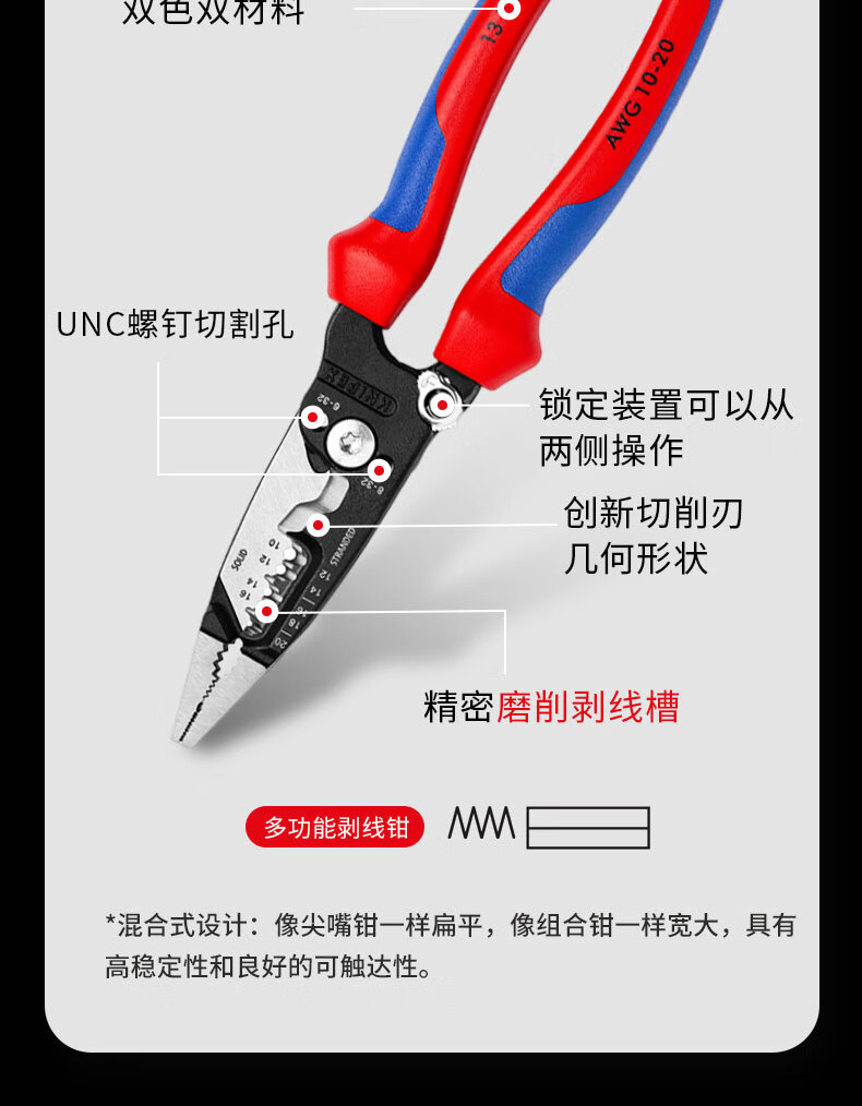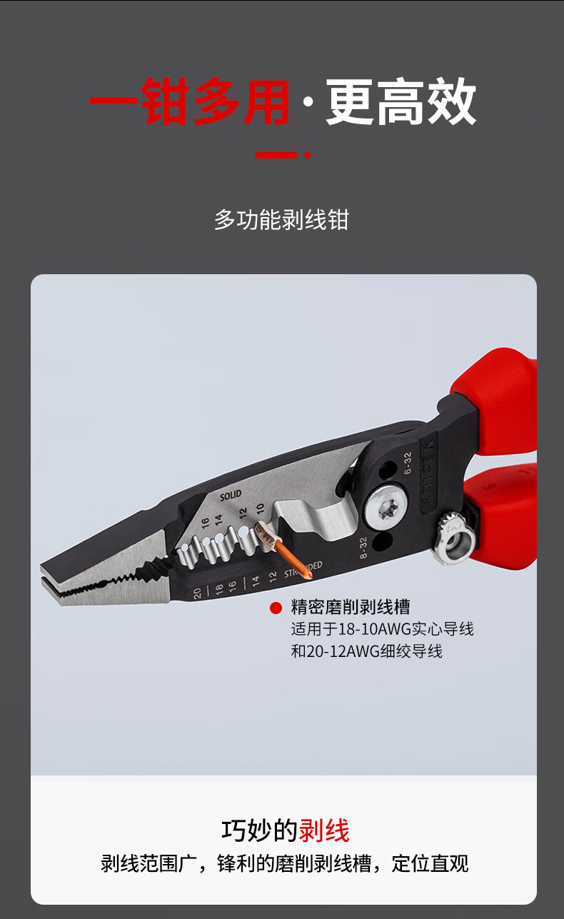 KNIPEX German imported tools multi-functional wire stripping pliers electrician special pliers wire cutter needle nose pliers household K.13 72 8