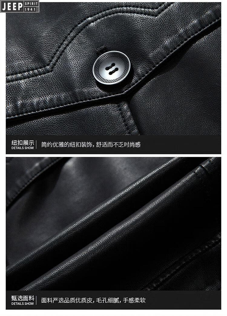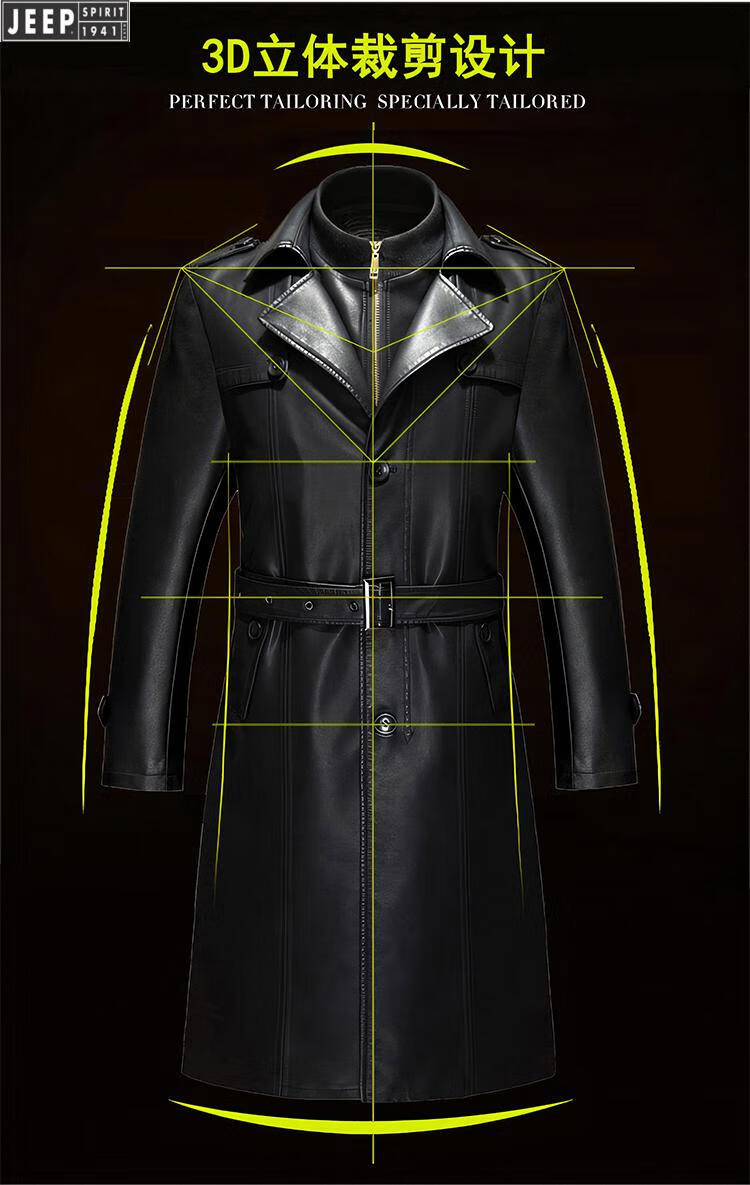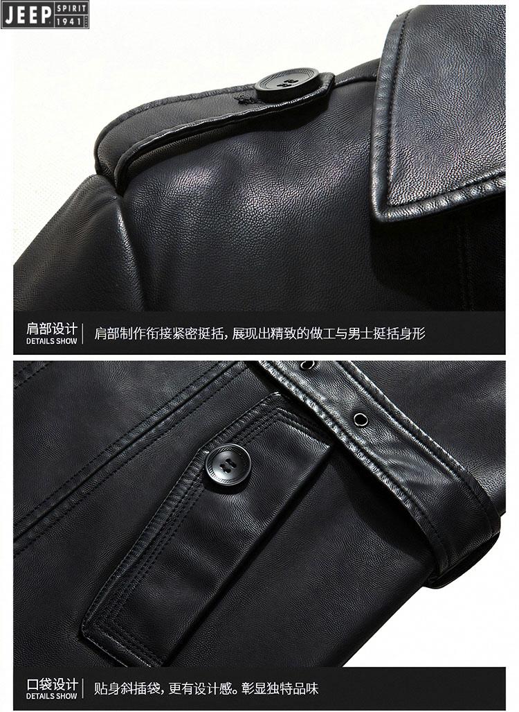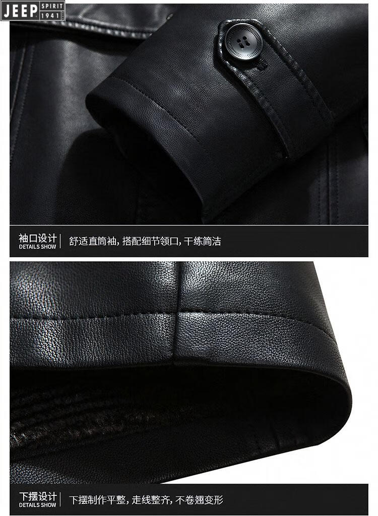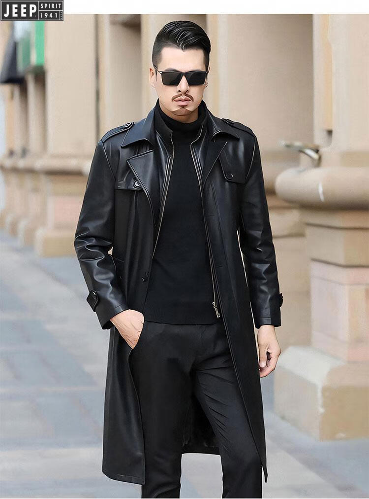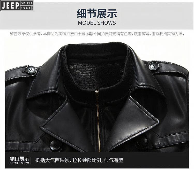 JEEP SPIRIT long knee-length leather jacket for men, down-lined leather windbreaker, winter jacket, sheepskin coat, genuine leather down jacket, plus fleece, detachable inner collar and inner placket, 5XL/200 size
