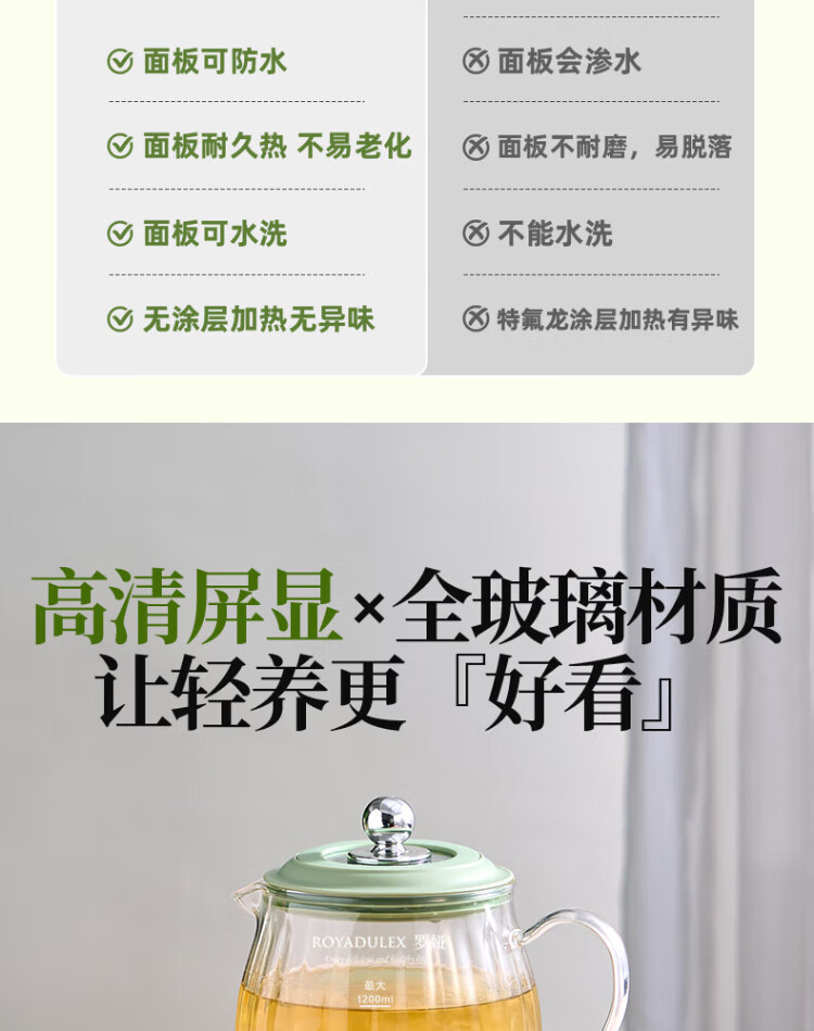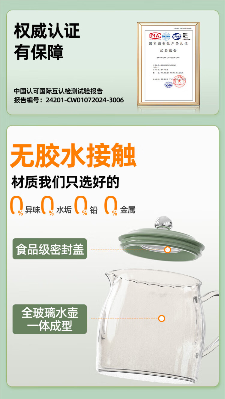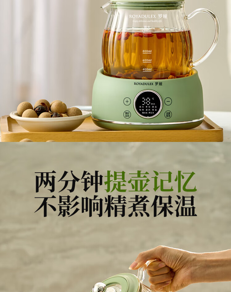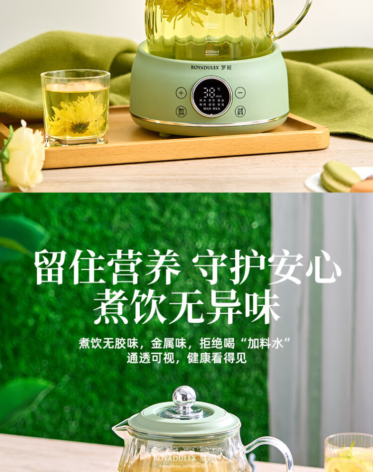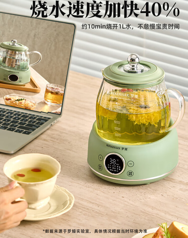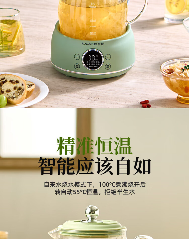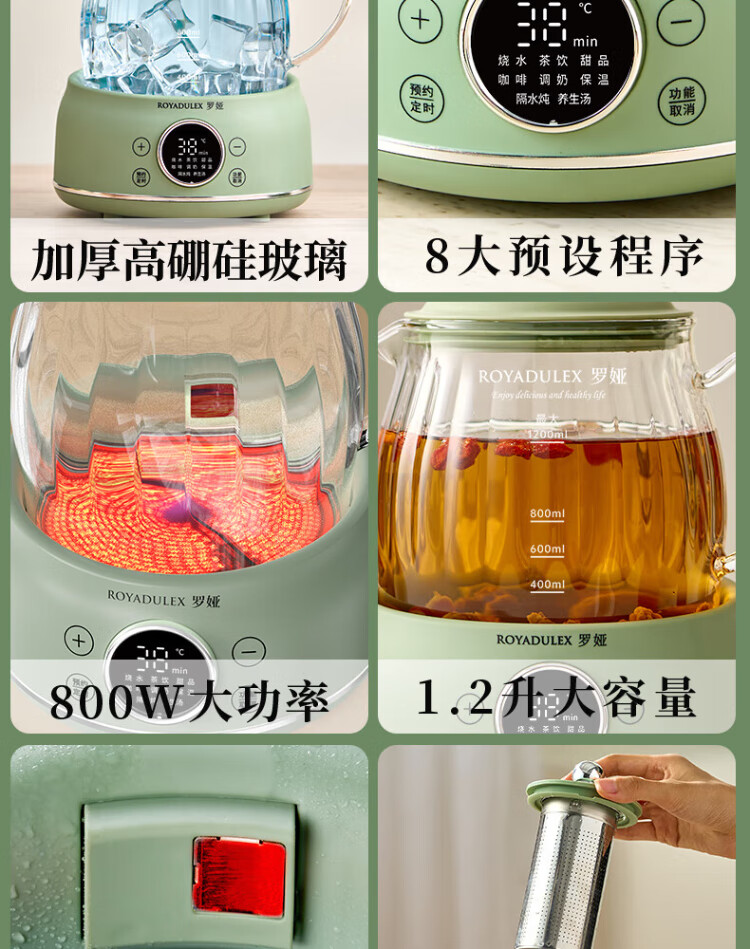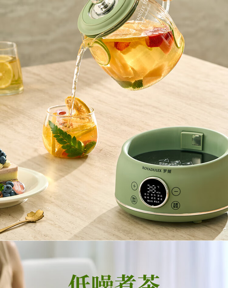 Luoya Health Pot Full Glass Stewing Kettle Electric Ceramic Stove Tea Kettle Tea Kettle 1.2L Office Tea Kettle Split Constant Temperature Kettle Boil Kettle Tea Kettle Boil Kettle Nordic Green (Tea Leaking Style) 1.2L