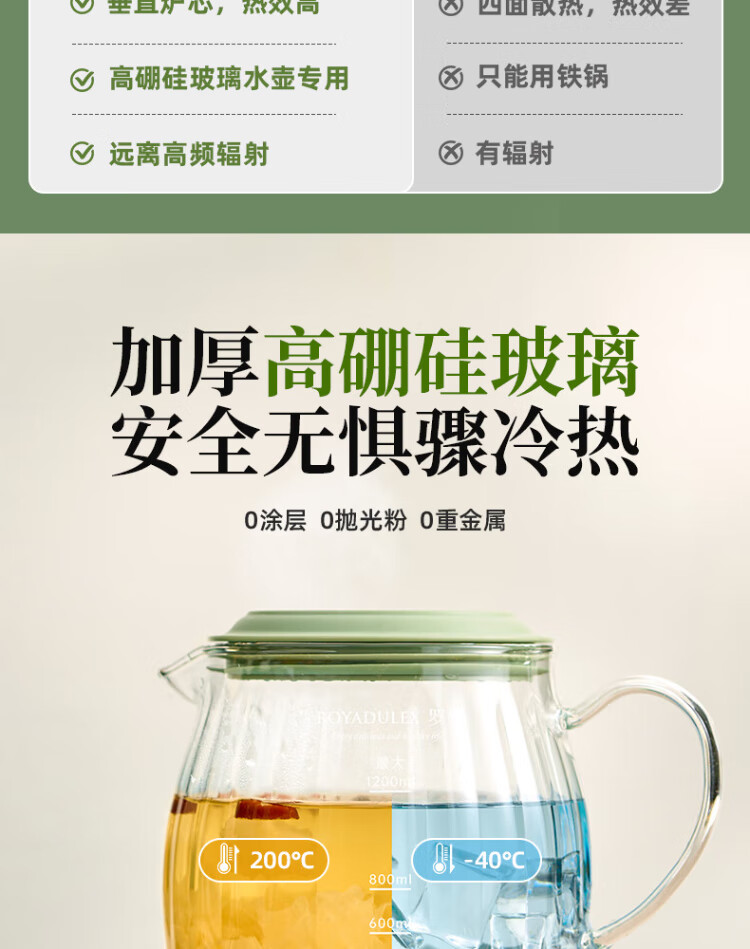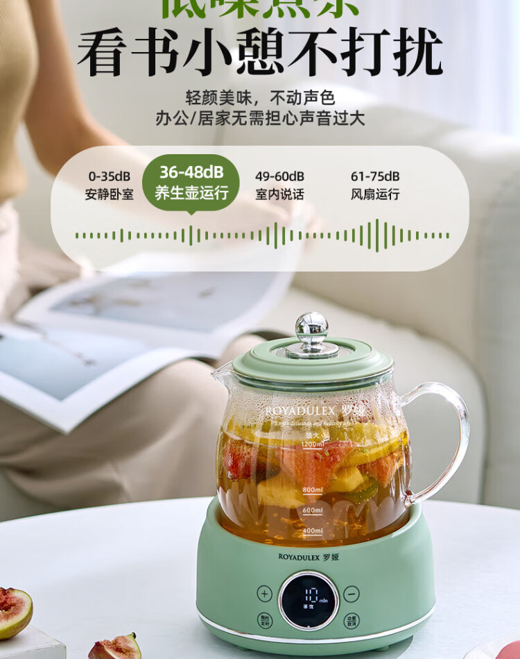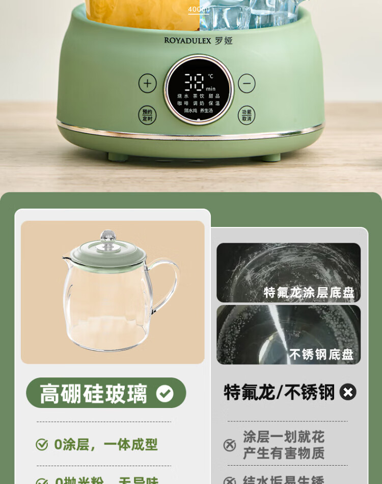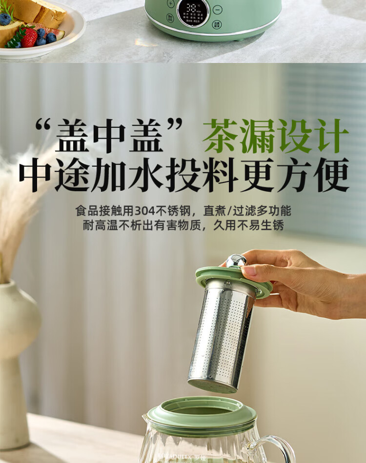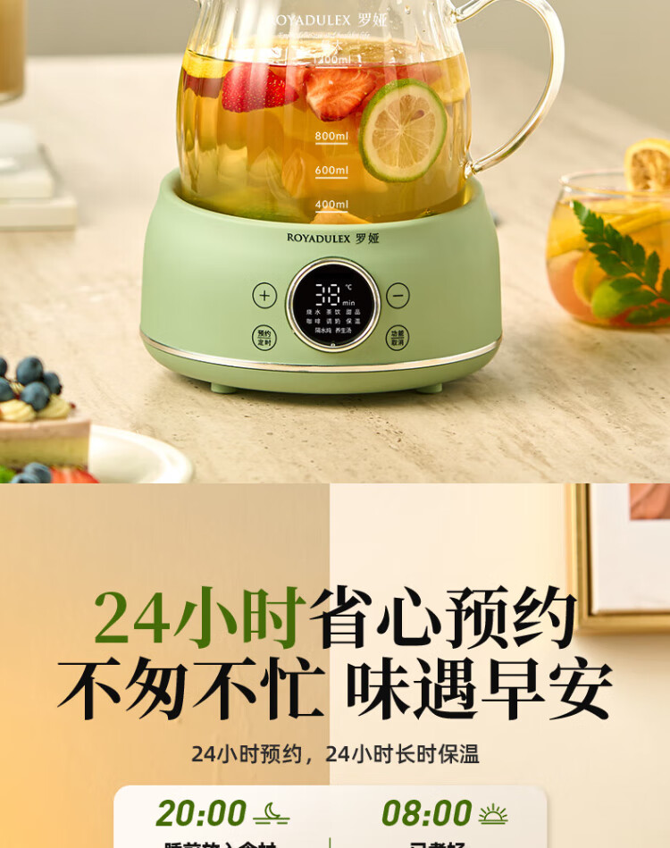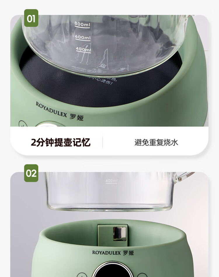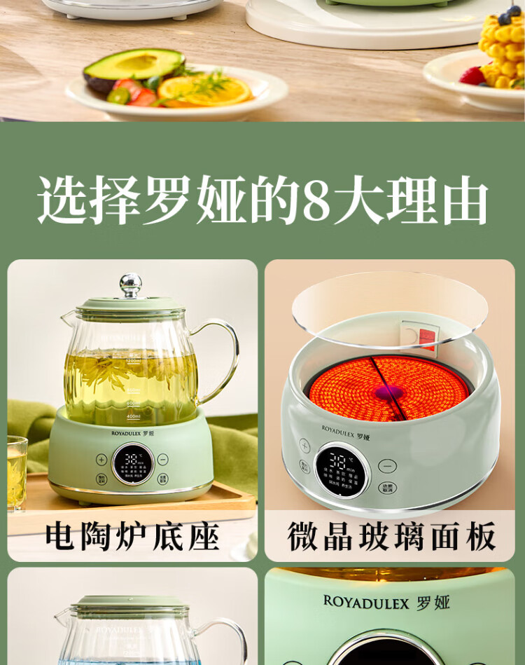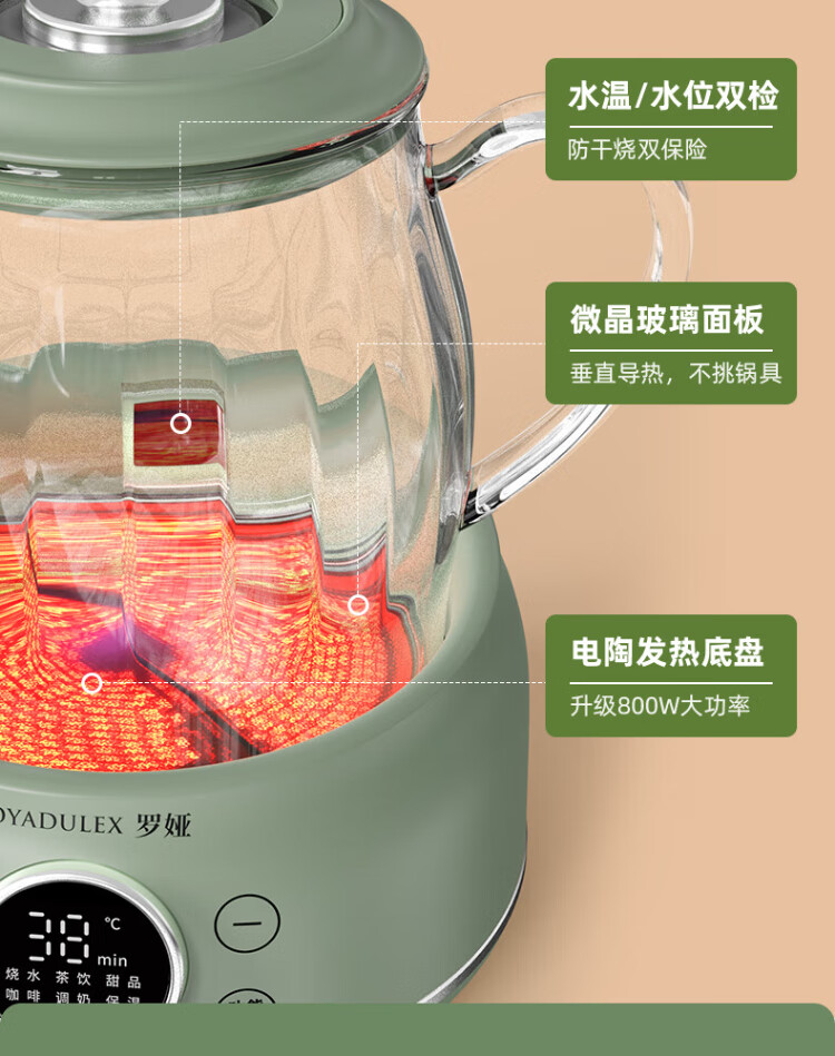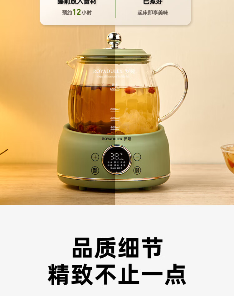 Luoya Health Pot Full Glass Stewing Kettle Electric Ceramic Stove Tea Kettle Tea Kettle 1.2L Office Tea Kettle Split Constant Temperature Kettle Boil Kettle Tea Kettle Boil Kettle Nordic Green (Tea Leaking Style) 1.2L