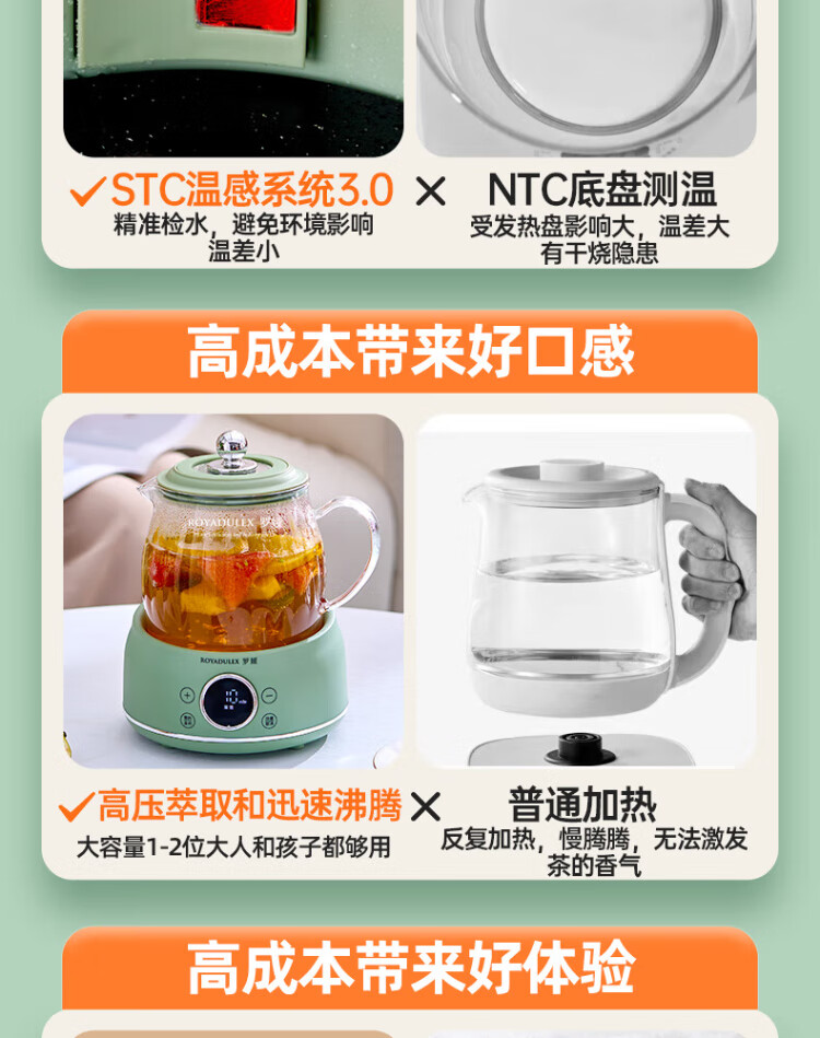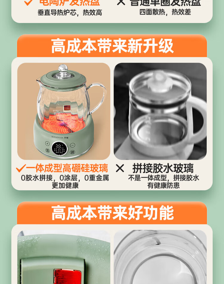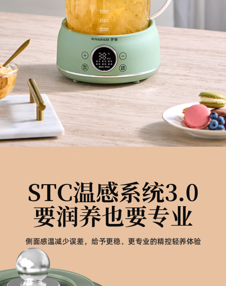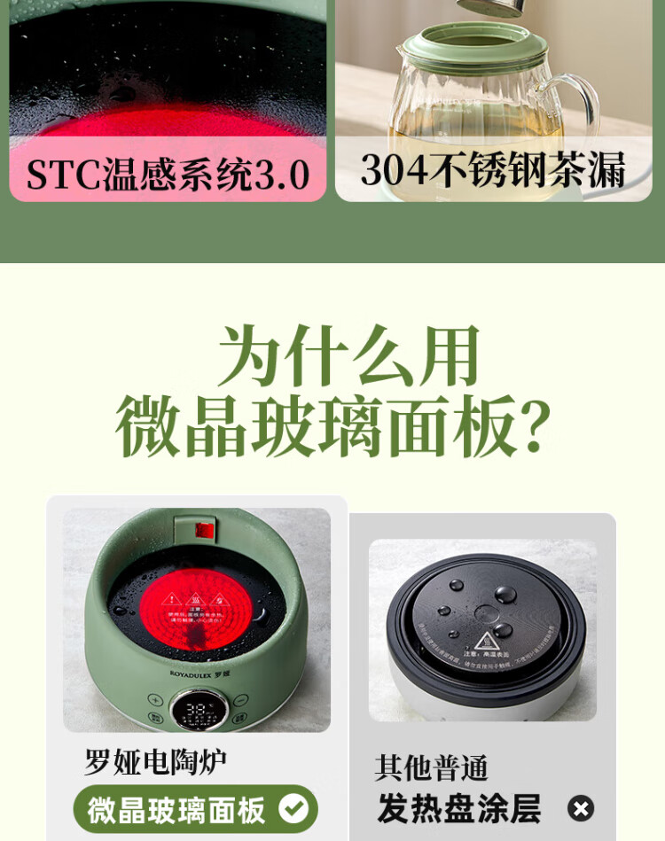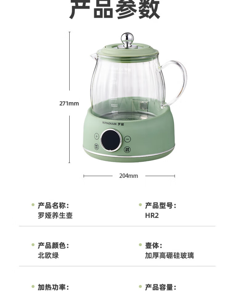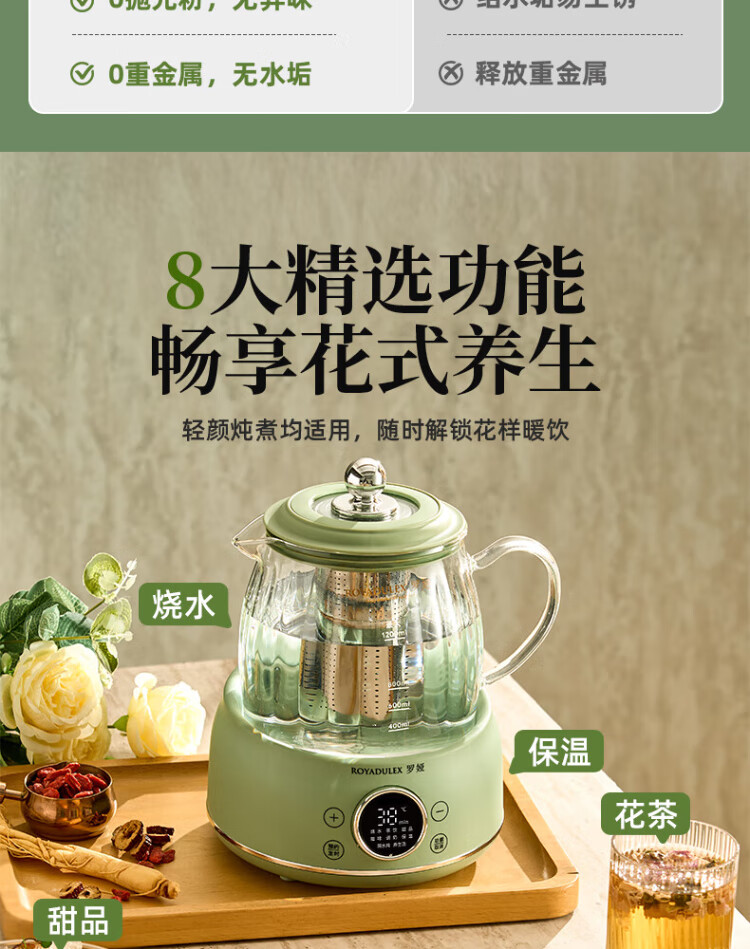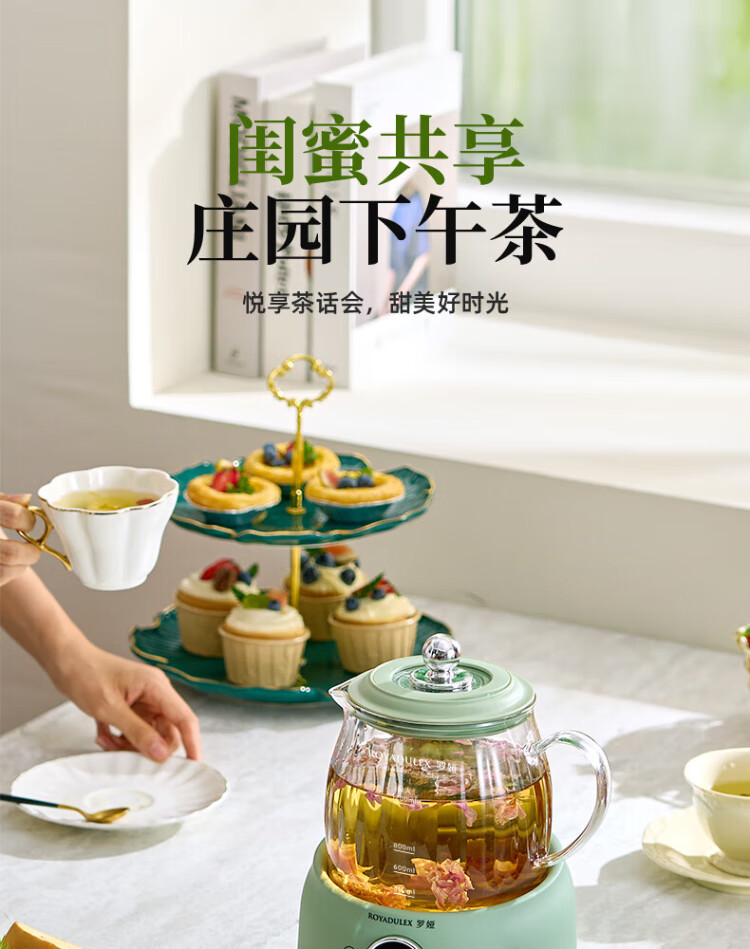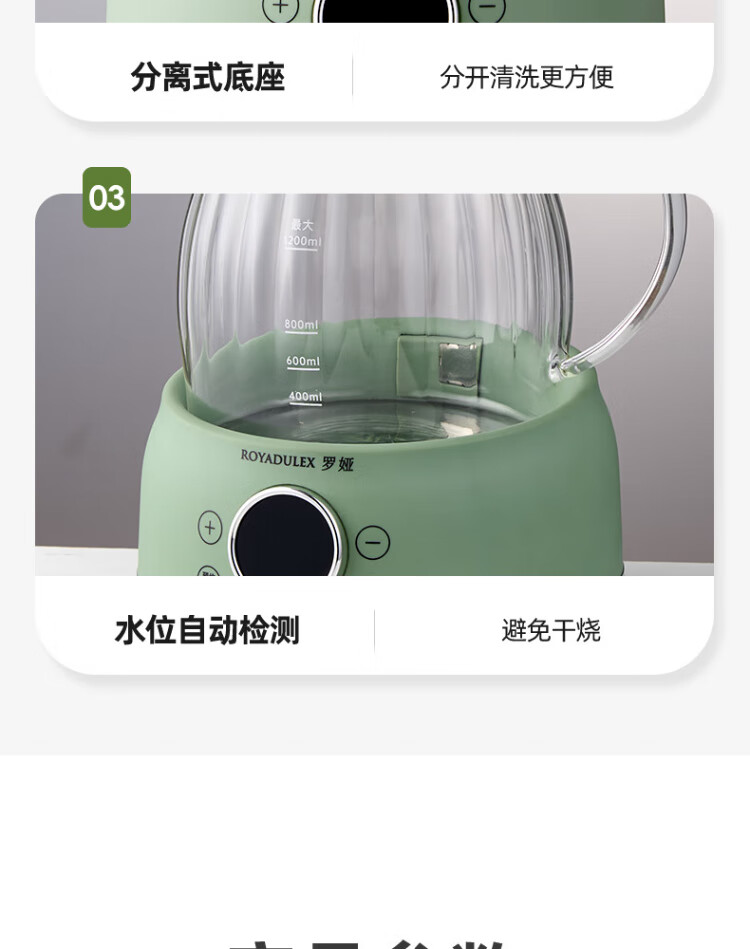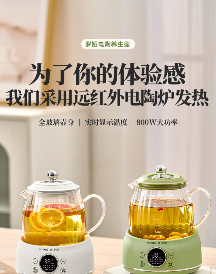 Luoya Health Pot Full Glass Stewing Kettle Electric Ceramic Stove Tea Kettle Tea Kettle 1.2L Office Tea Kettle Split Constant Temperature Kettle Boil Kettle Tea Kettle Boil Kettle Nordic Green (Tea Leaking Style) 1.2L