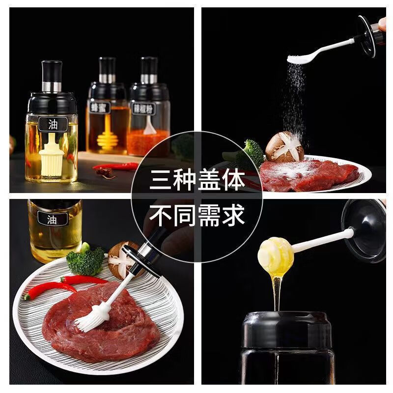 Seasoning bottle kitchen household spoon lid integrated seasoning oil pot salt MSG seasoning box combination set quantitative seasoning bottle random 180ml*1 hot selling recommendation