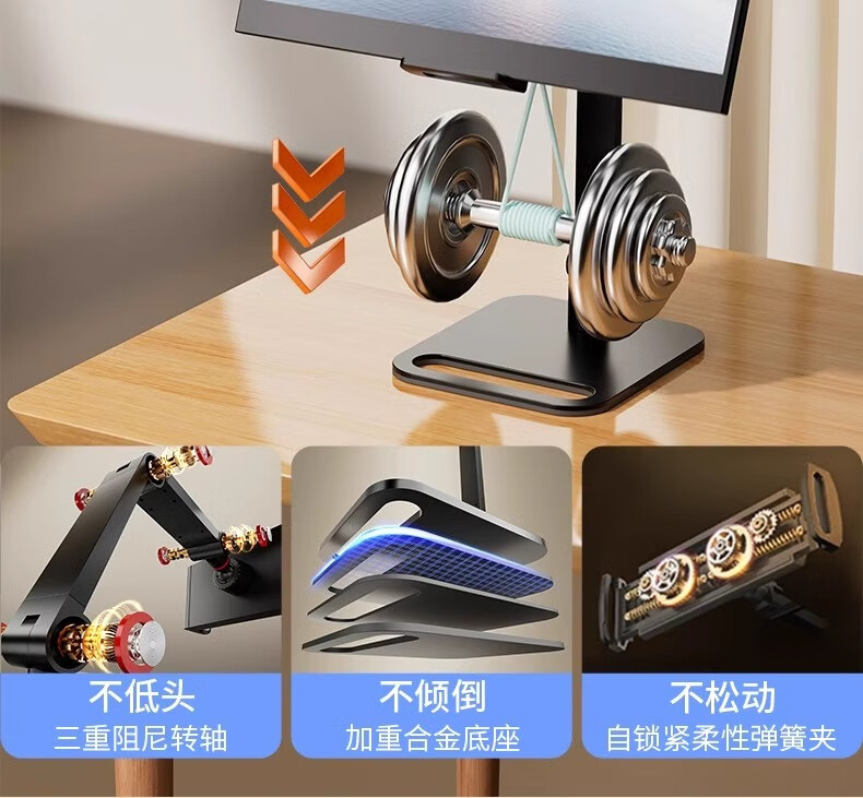 Tosman Portable Screen Stand Extended Secondary Screen Adjustable Tablet Stand Telescopic Rotation Lift iPad Monitor Universal 360 Degree Three-Section Bedside Support Stand Desktop Stand Desktop Stand Heightened Model/Dual-Force Arm Support
