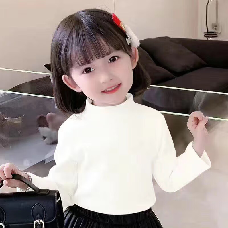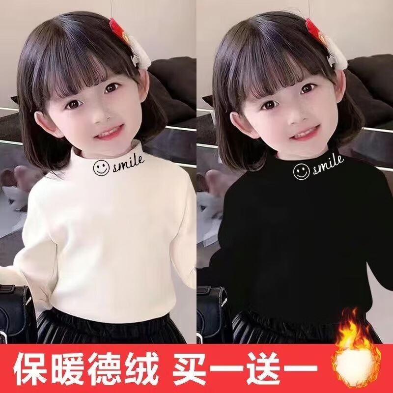 Hanghe 2-piece children's clothing, DeRong autumn and winter new style, medium-high collar T-shirt, thermal clothing, girls' base layer shirt, charming apricot + colorful powder 90, recommended height 80-90cm