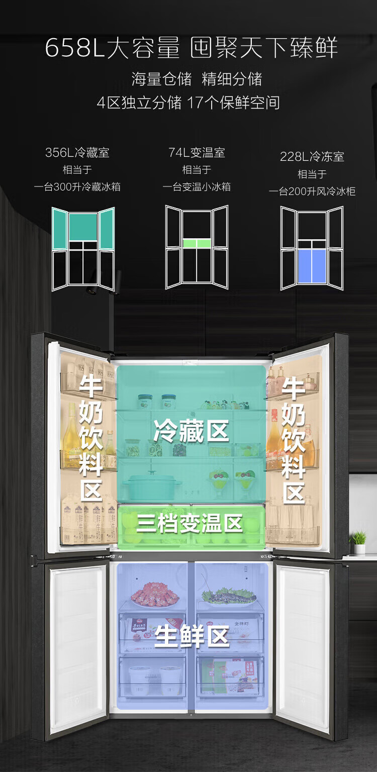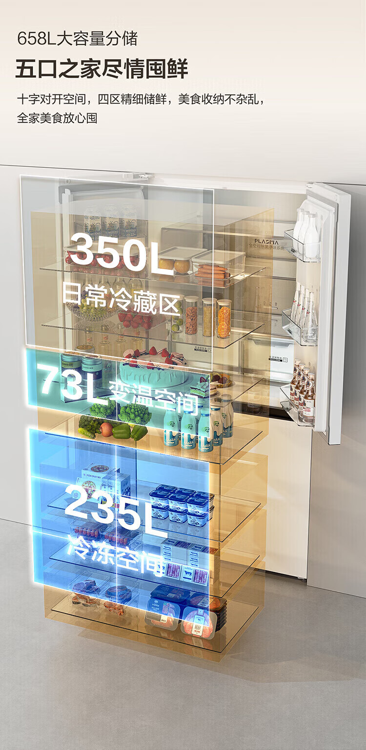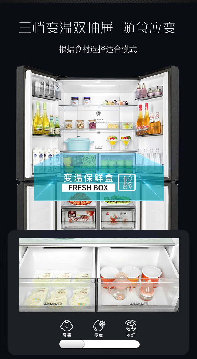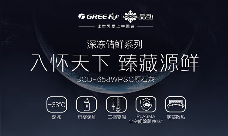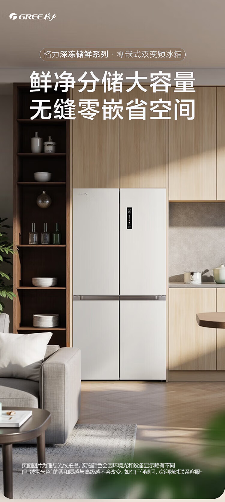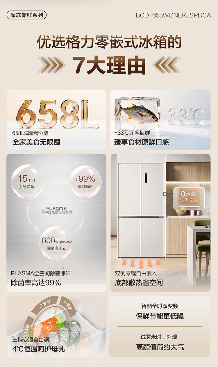 格力(GREE)晶弘冰箱十字对开底部散热可嵌入恒温母婴保鲜节能变频一级能效 BCD-658WGNEK2SPDCA BCD-658WPSC原石灰