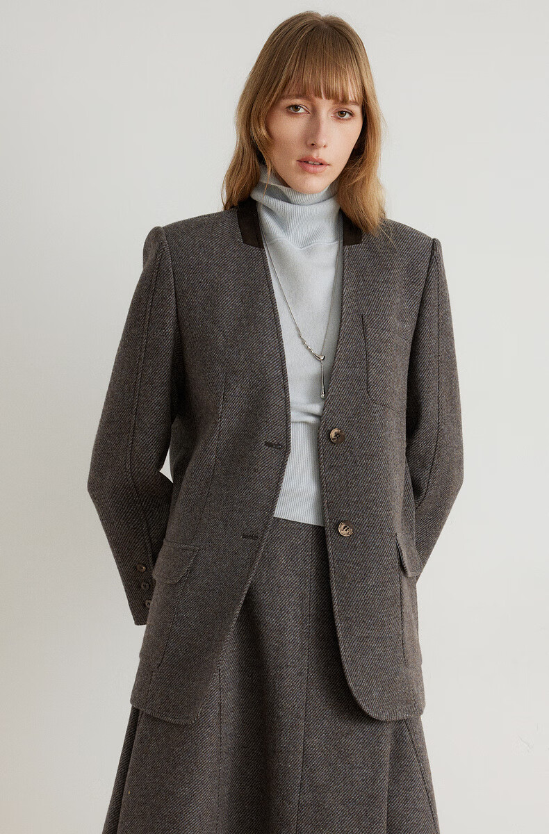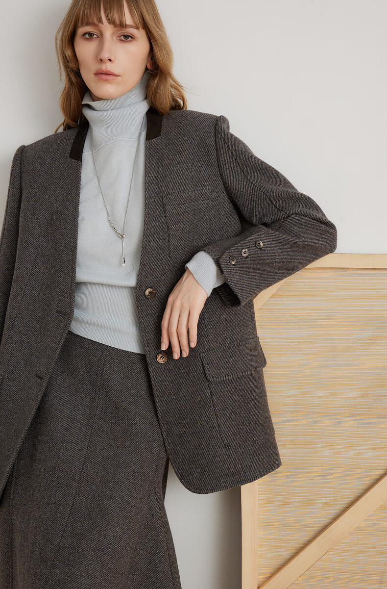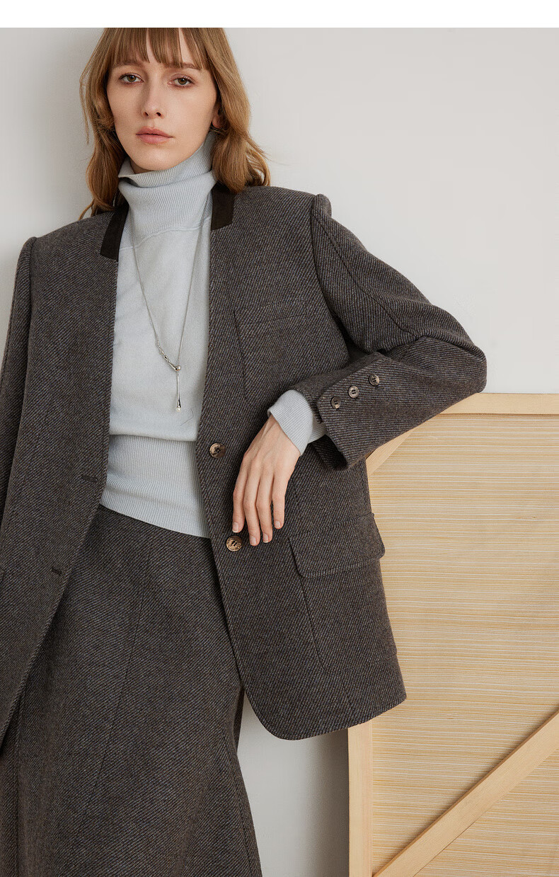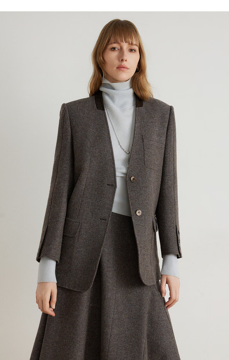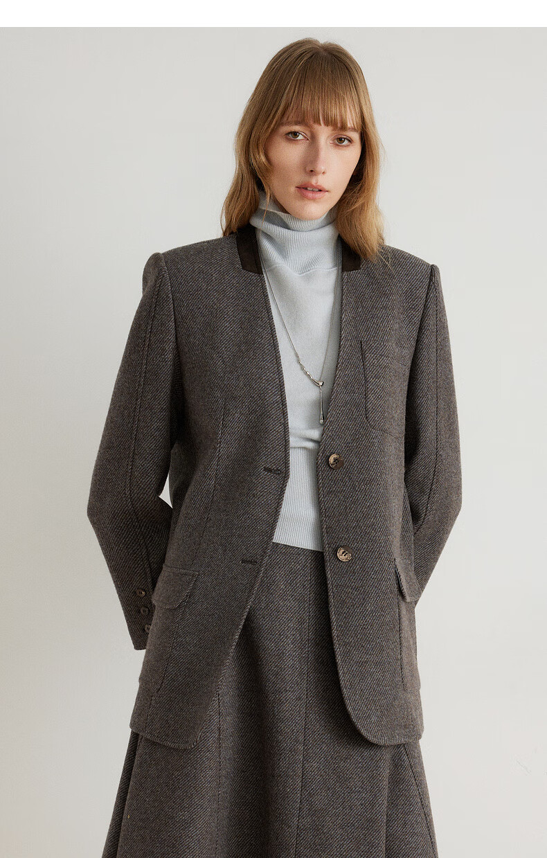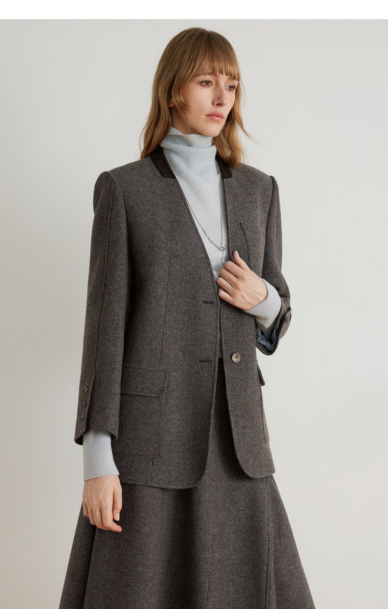 ELLE shopping mall same style 100% sheep wool dark brown suit jacket for women 2024 winter new niche top dark brown S