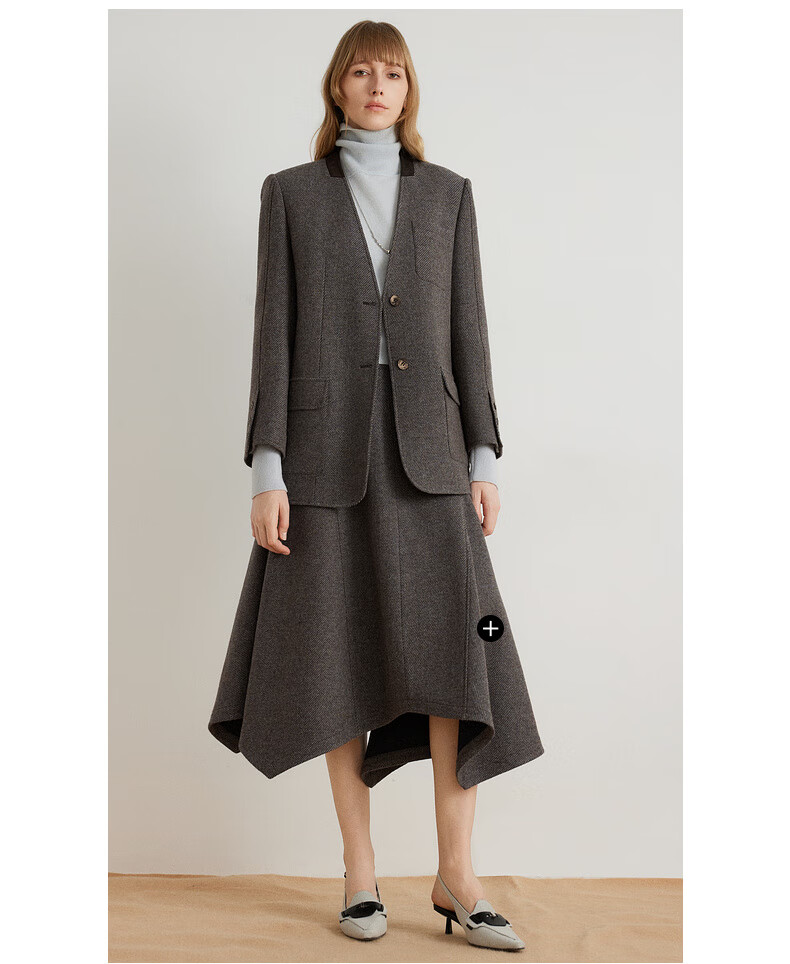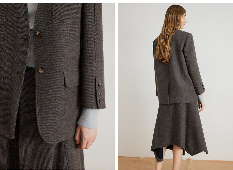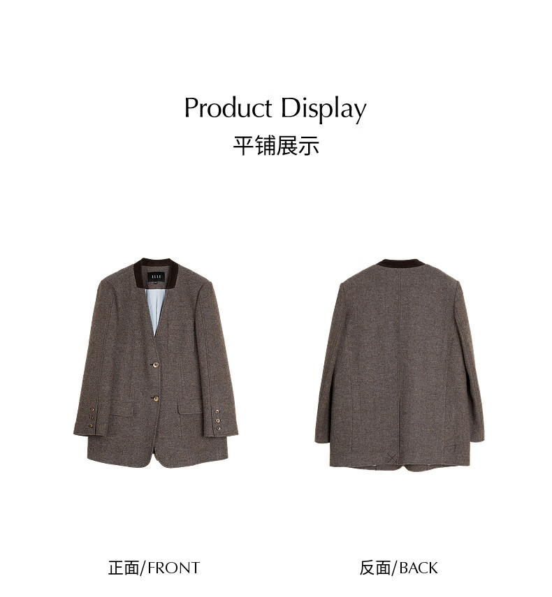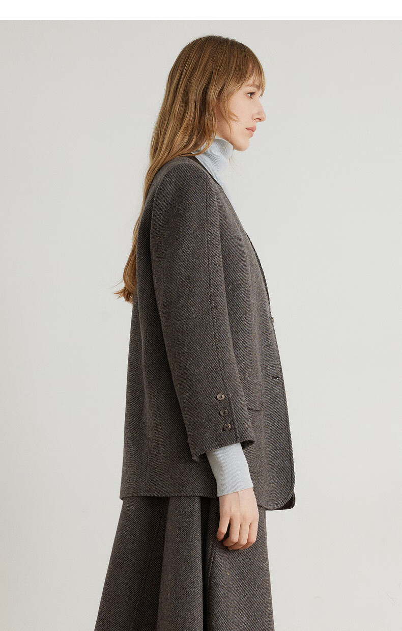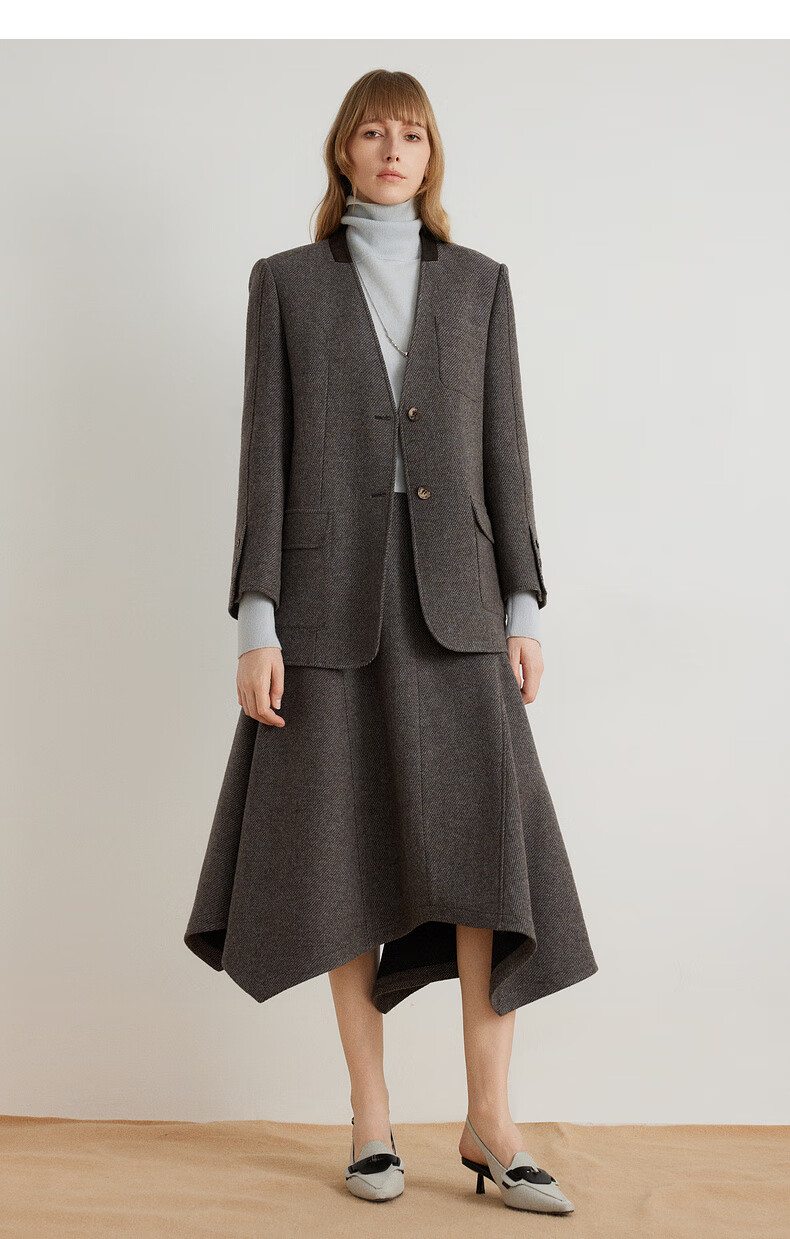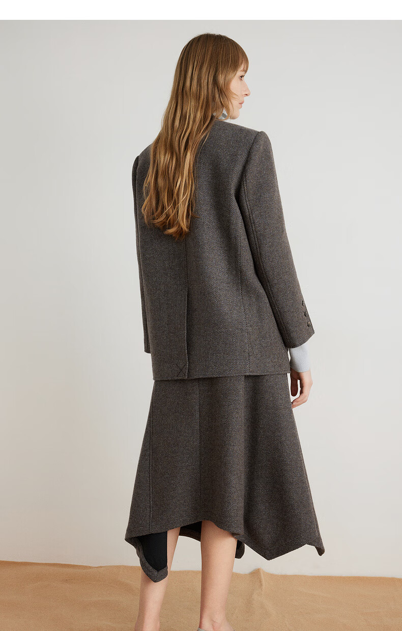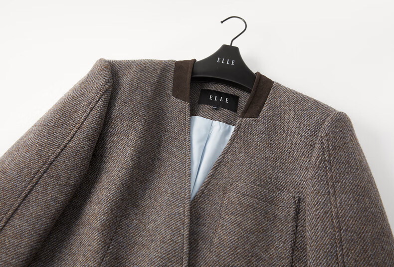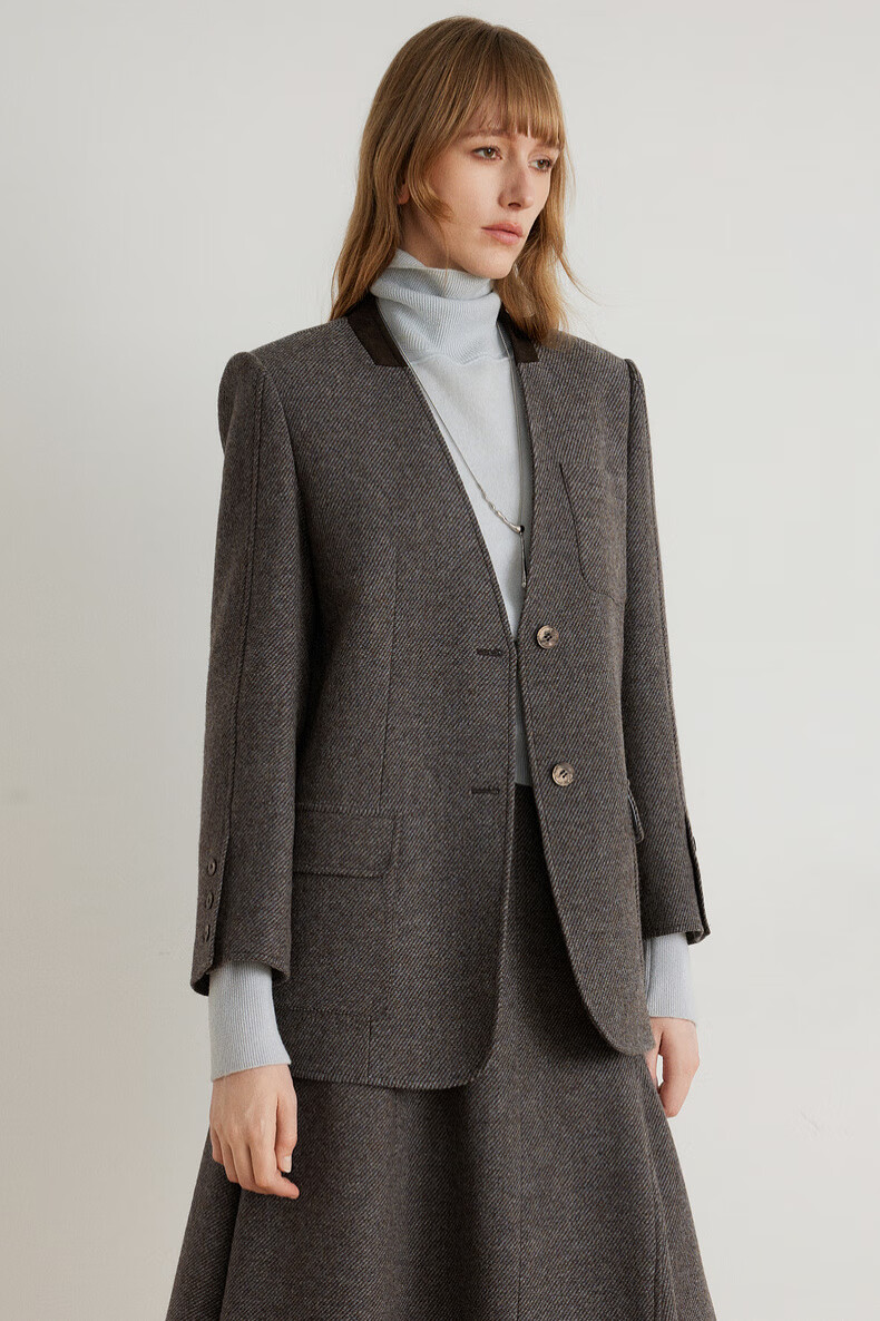 ELLE shopping mall same style 100% sheep wool dark brown suit jacket for women 2024 winter new niche top dark brown S