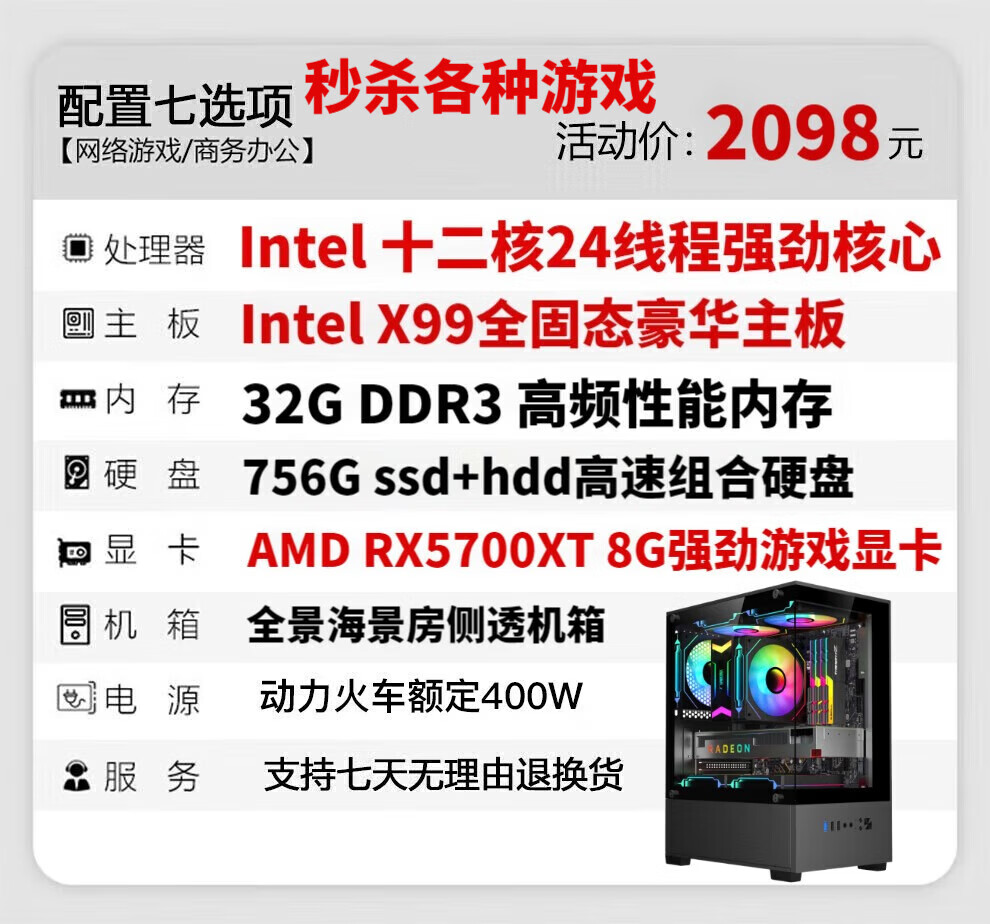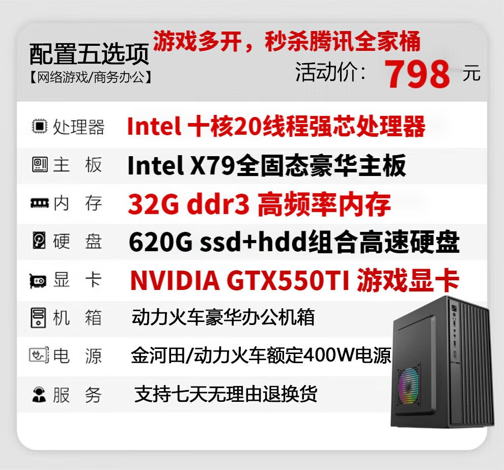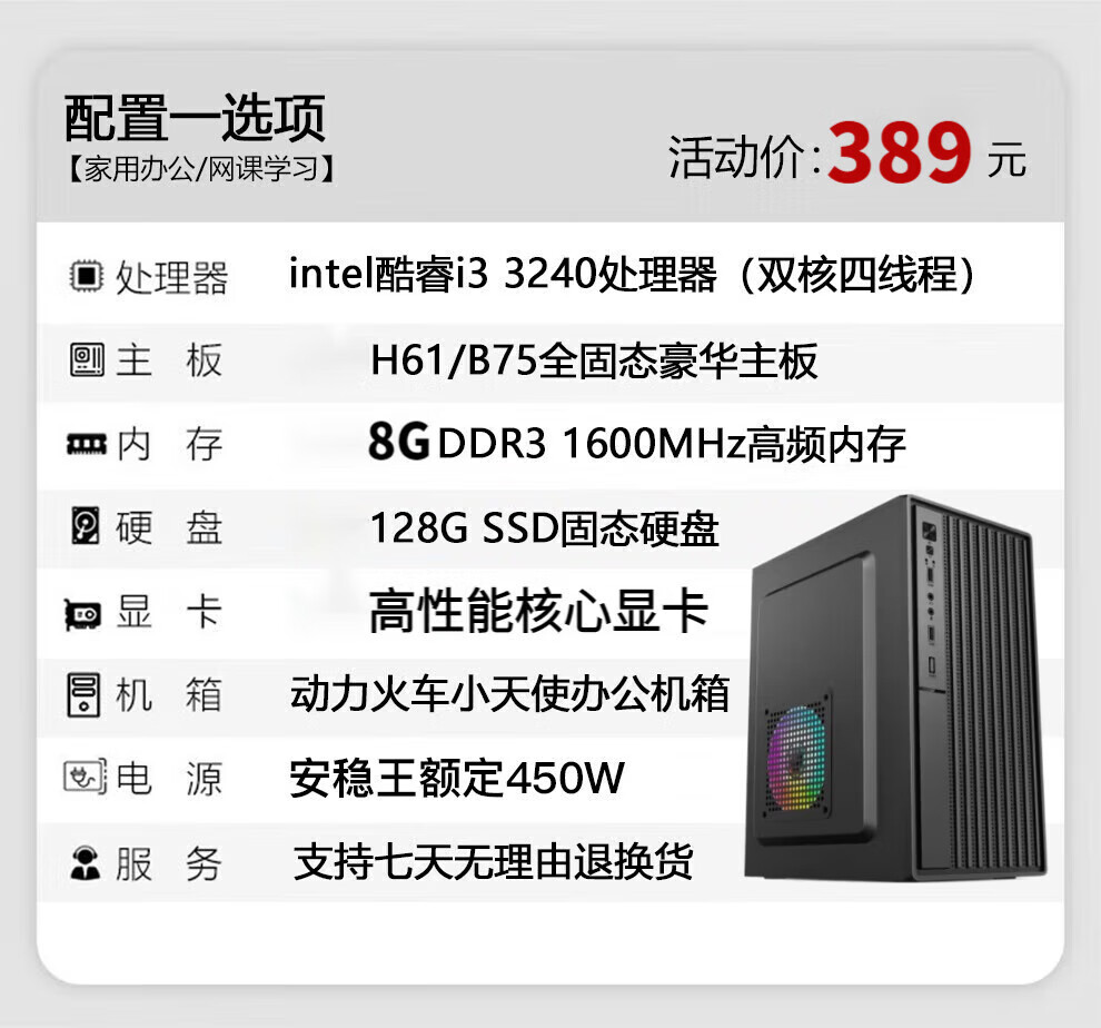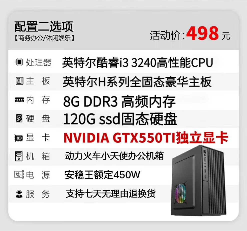 I5 Core i7 liter twelve core/3060 desktop computer host DIY assembly computer complete machine for enterprise office and commercial use equipped with an i3 3240 high-definition core display/8G/120G single host
