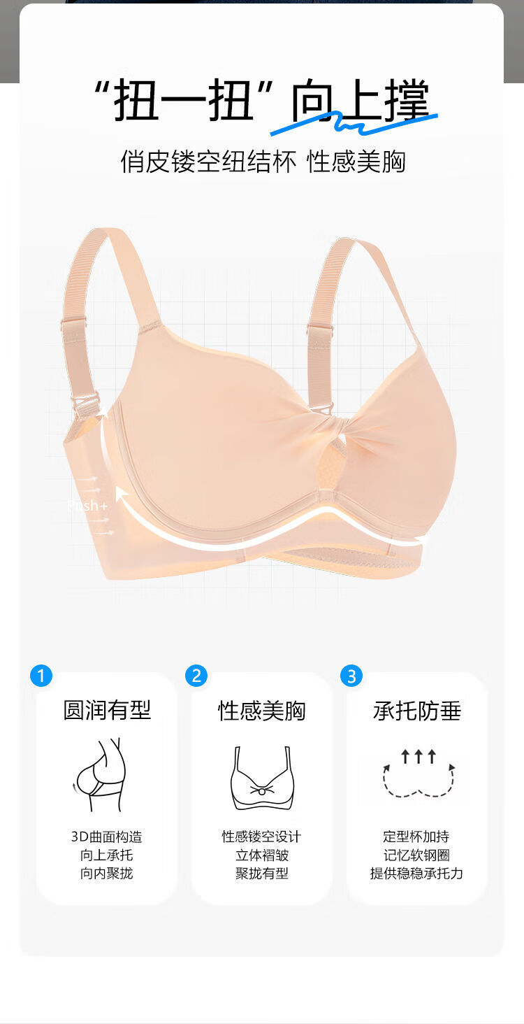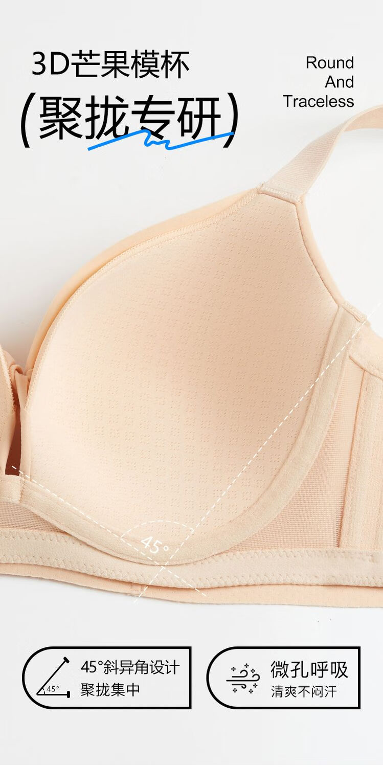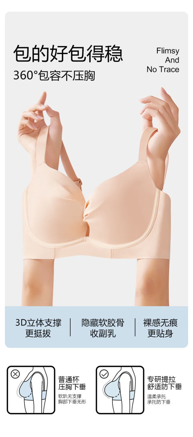 Sugar Grain Large Size Underwear Women's Soft Wire Styling Gathering Seamless Anti-Sagging Secondary Breast Retraction Adjustable Bra Thin Fat Skin-High Quality 75B