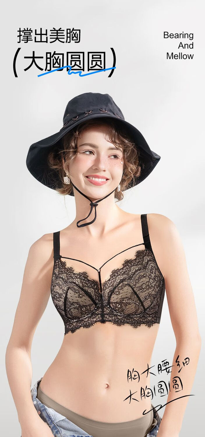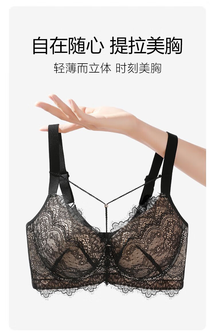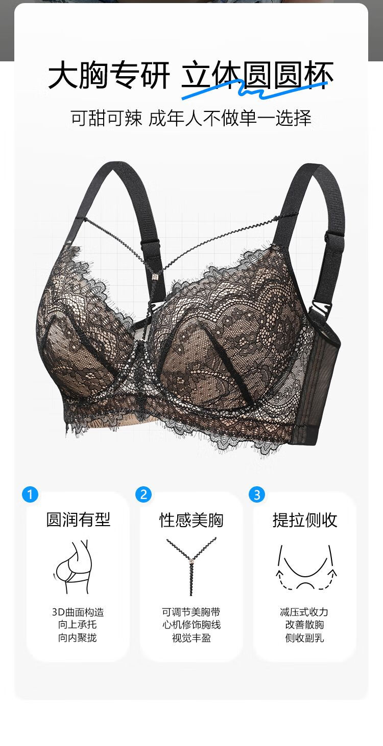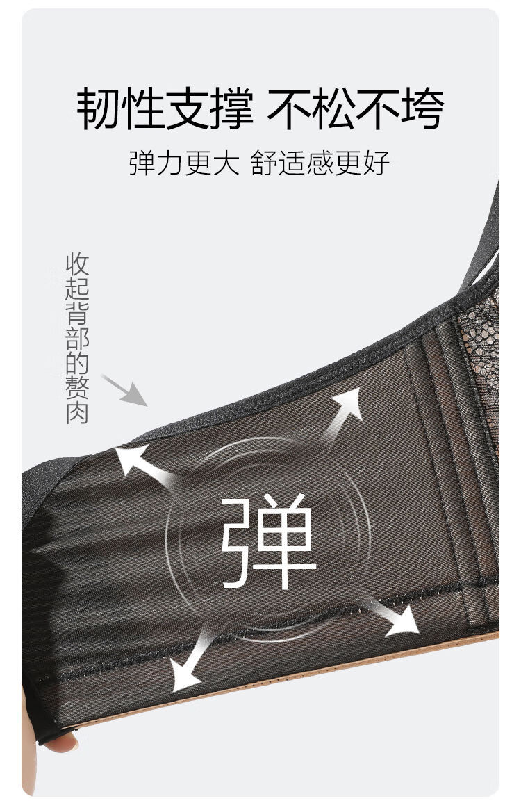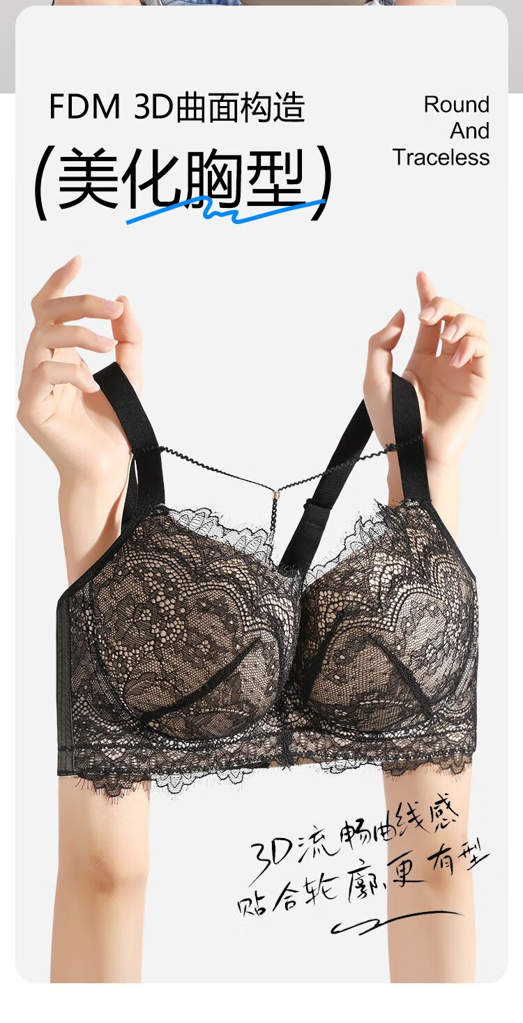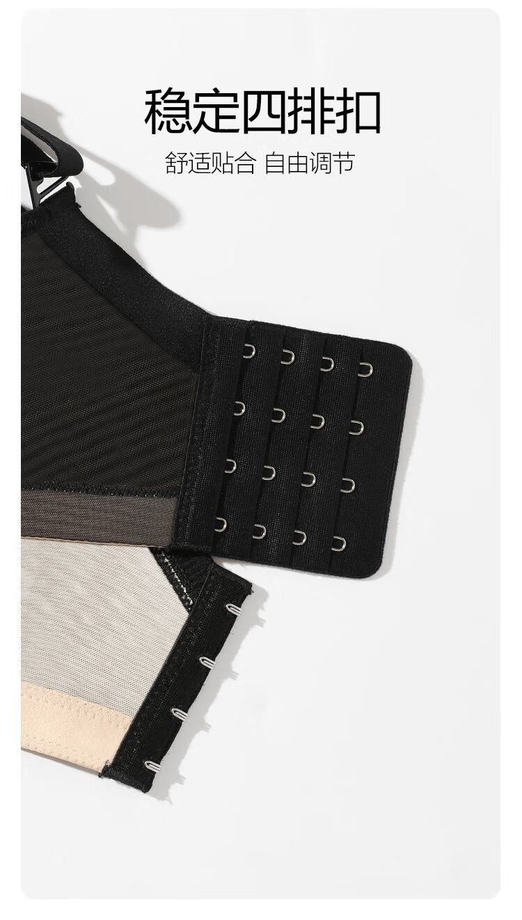 Sugar fat mm plus size underwear, big breasts are made smaller, anti-sagging, side breasts shrinking, soft steel ring bra, bra, light and thin, black and translucent - soft steel ring 85C