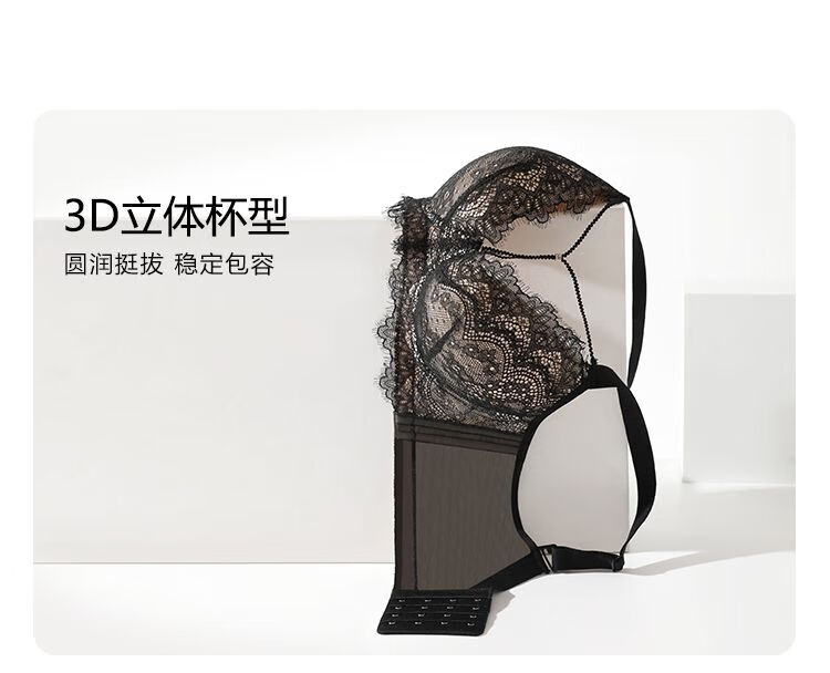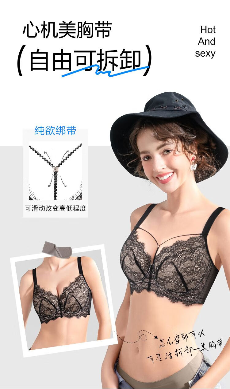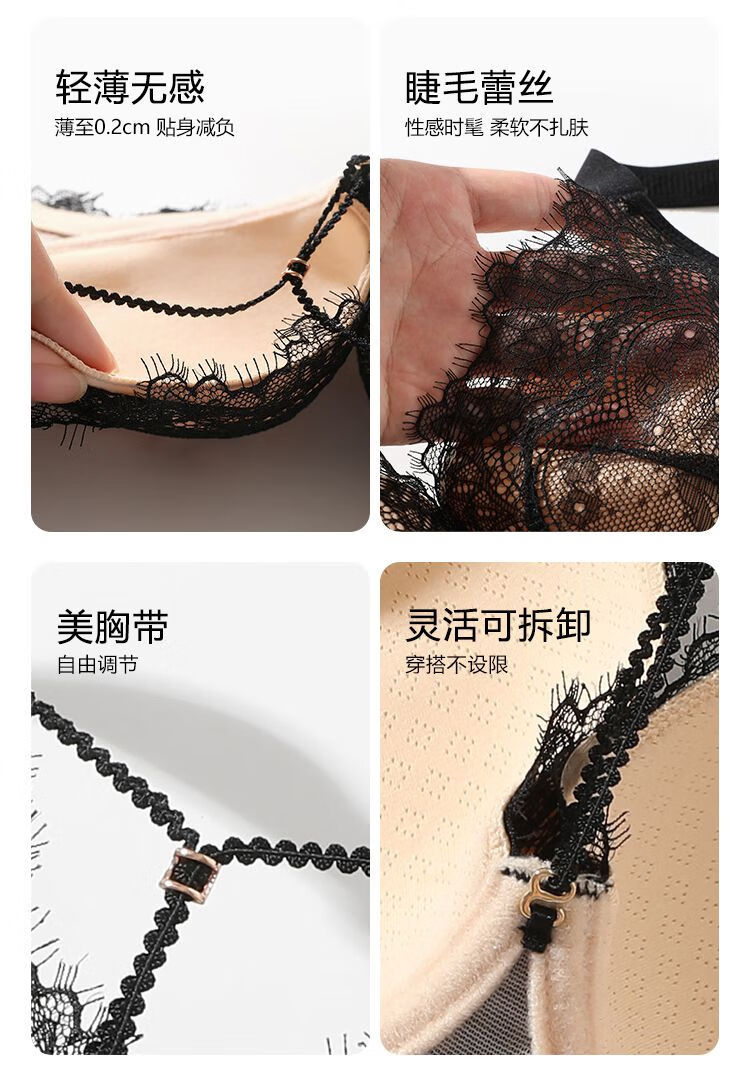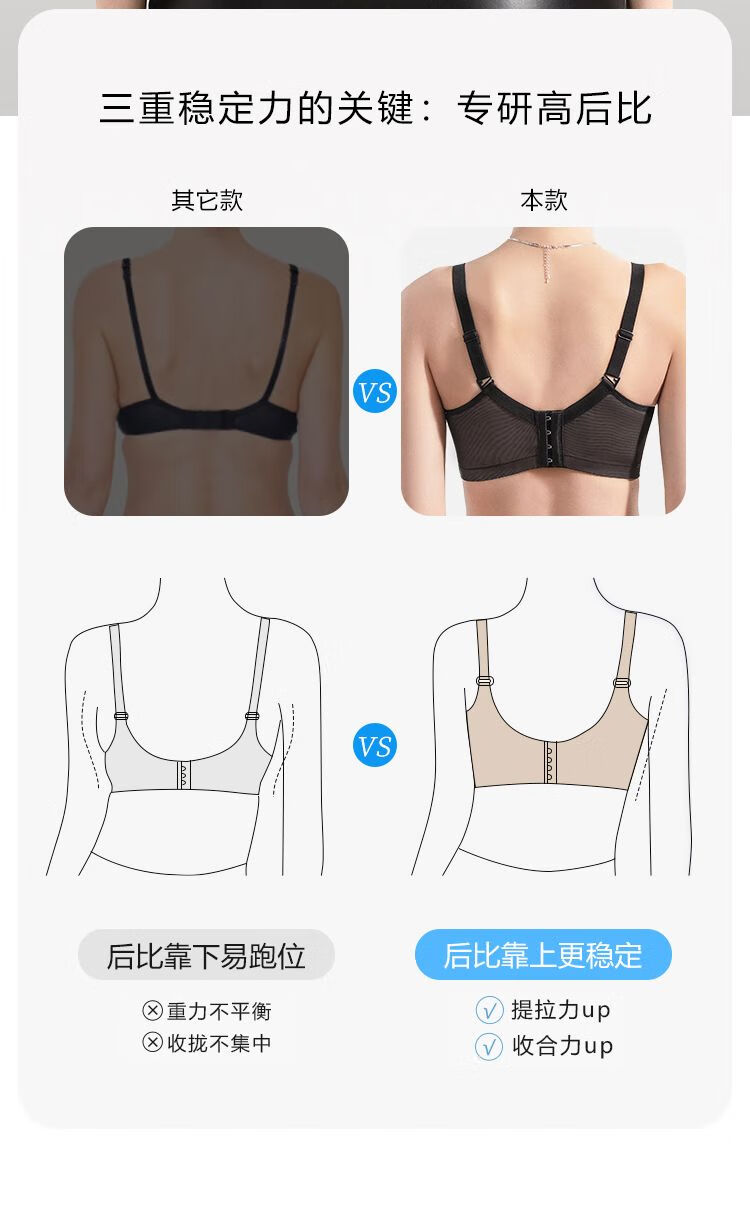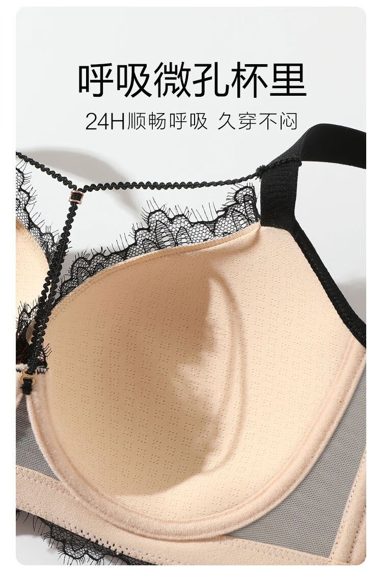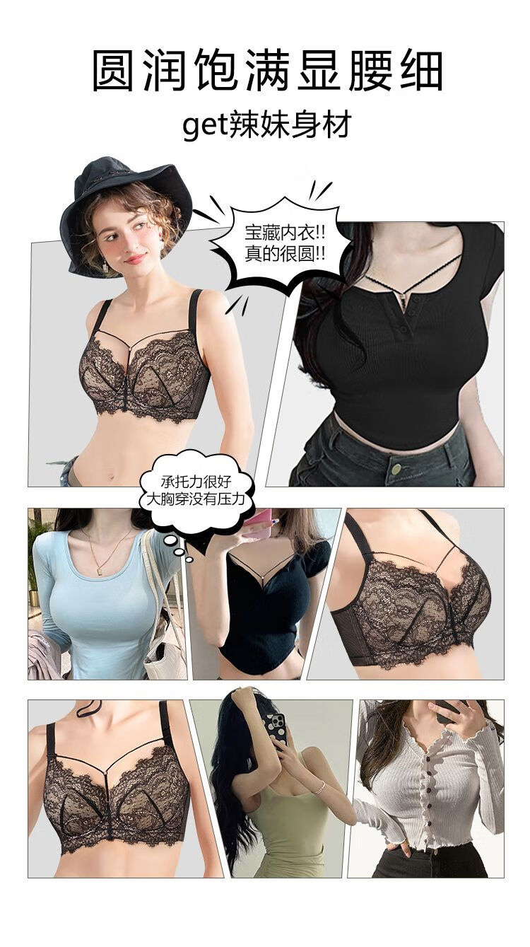 Sugar fat mm plus size underwear, big breasts are made smaller, anti-sagging, side breasts shrinking, soft steel ring bra, bra, light and thin, black and translucent - soft steel ring 85C