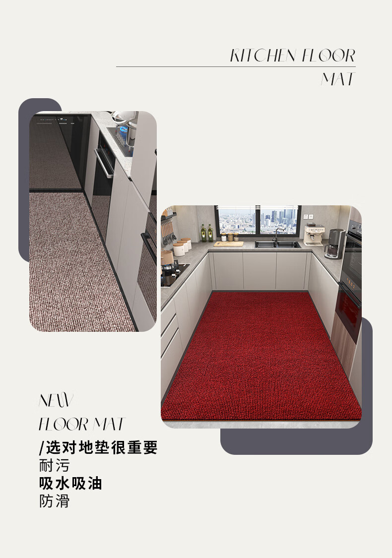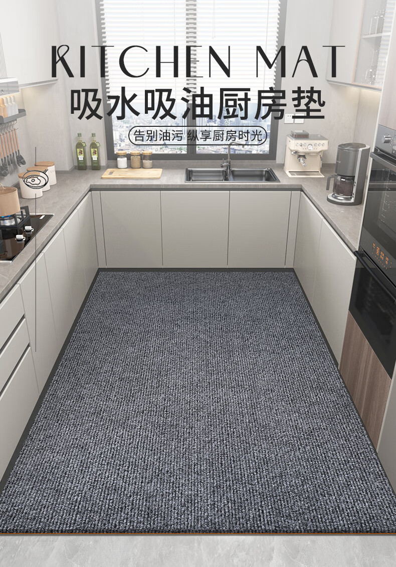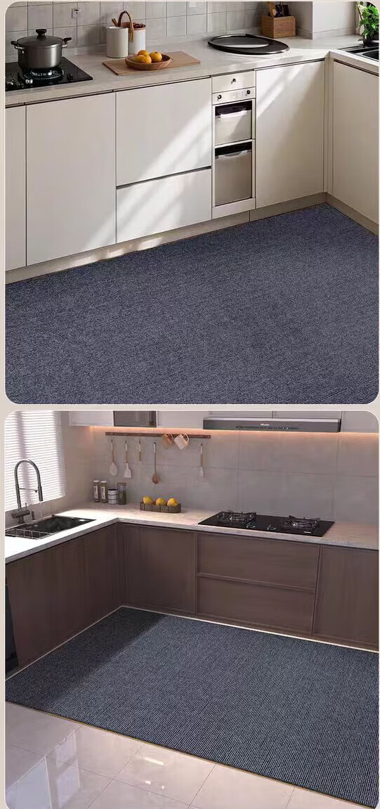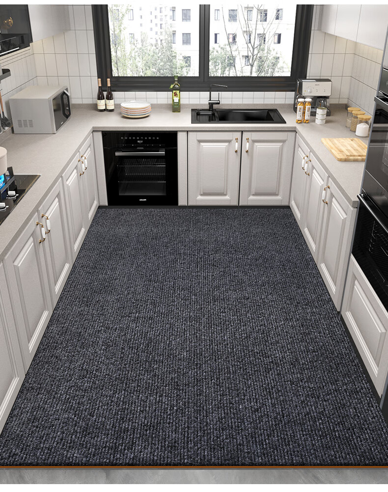 Ruiliju kitchen carpet is waterproof, oil-proof, anti-slip, cuttable floor mat, wipeable, no-wash, water-absorbent and oil-absorbent foot mats, special full matting, TPE single stripe - smoke gray. For customized sizes, please contact customer service.