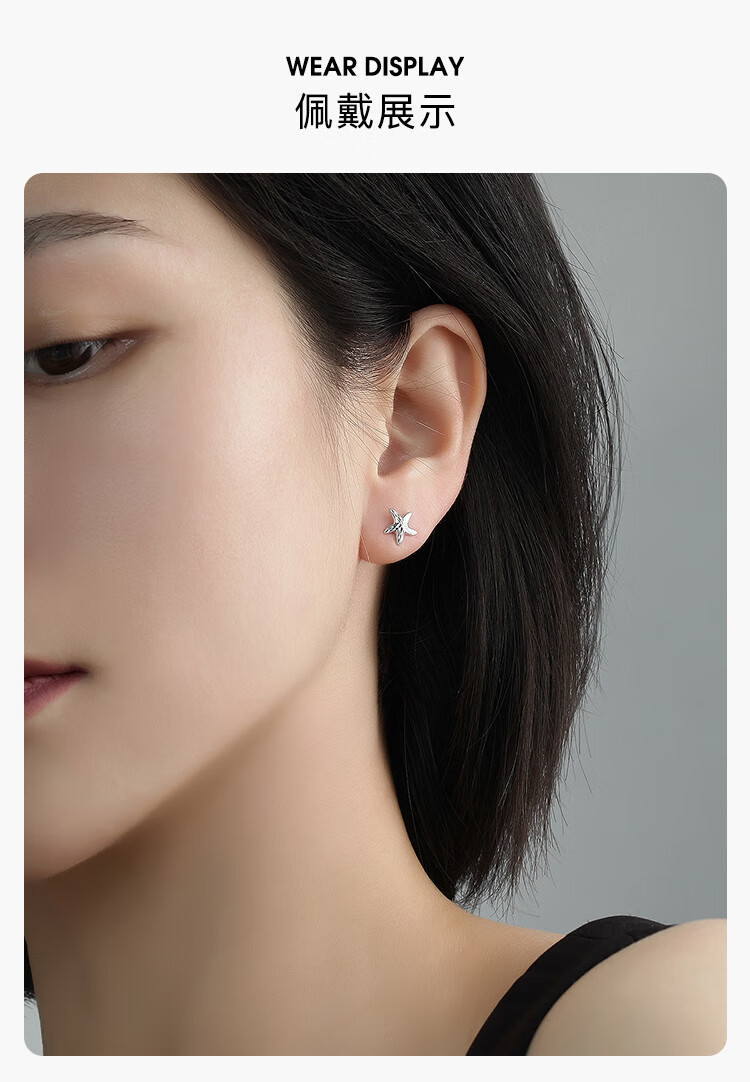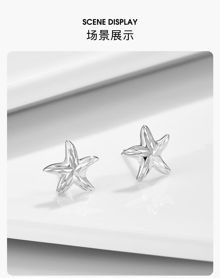 Ming brand jewelry platinum earrings PT950 sparkling car flower starfish earrings BFH0080 platinum earrings about 1.27 grams