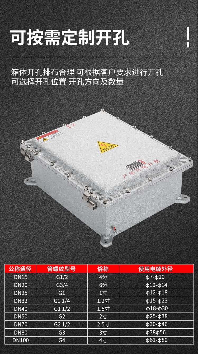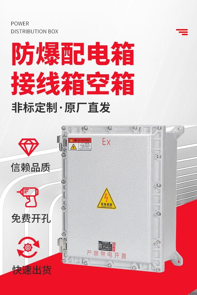 Explosion-proof distribution box, power lighting control box, explosion-proof junction box, operating column, circuit breaker, instrument operating box, custom-made. There is an additional charge for opening holes. Please consult.