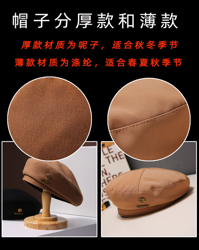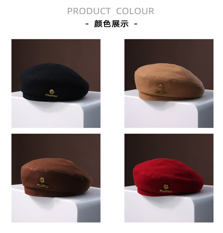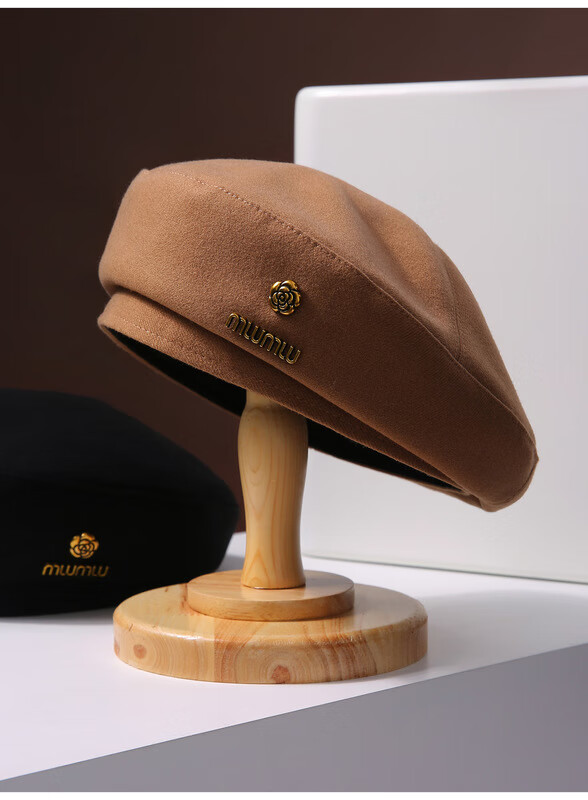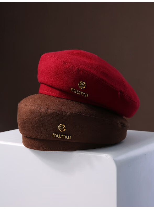Romantic beret black woolen beret for women 2024 new autumn and winter face-showing small French bud hat painter newsboy hat burgundy one size fits all