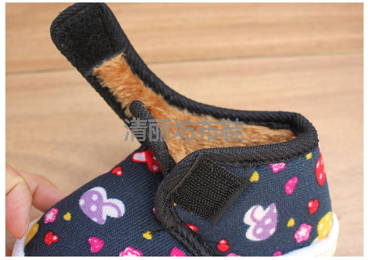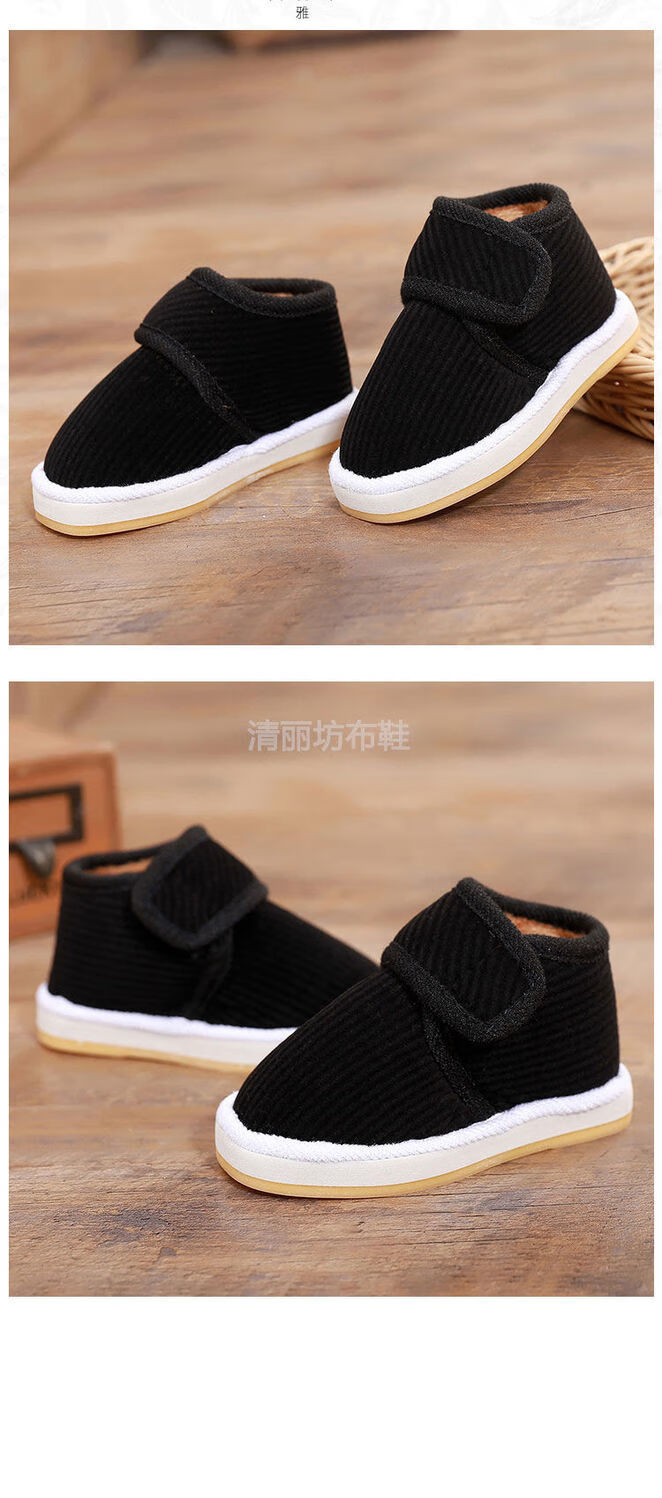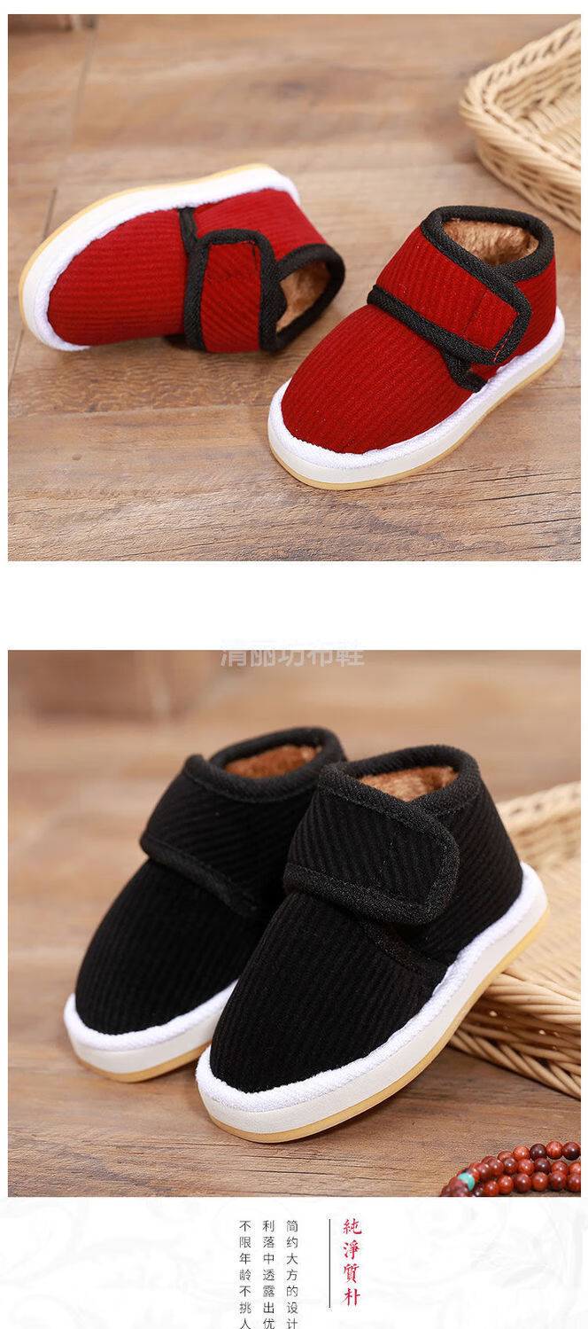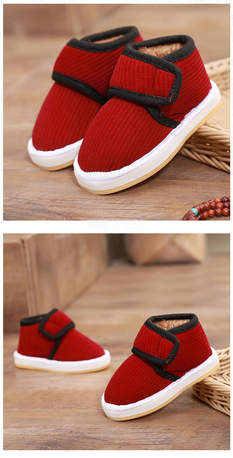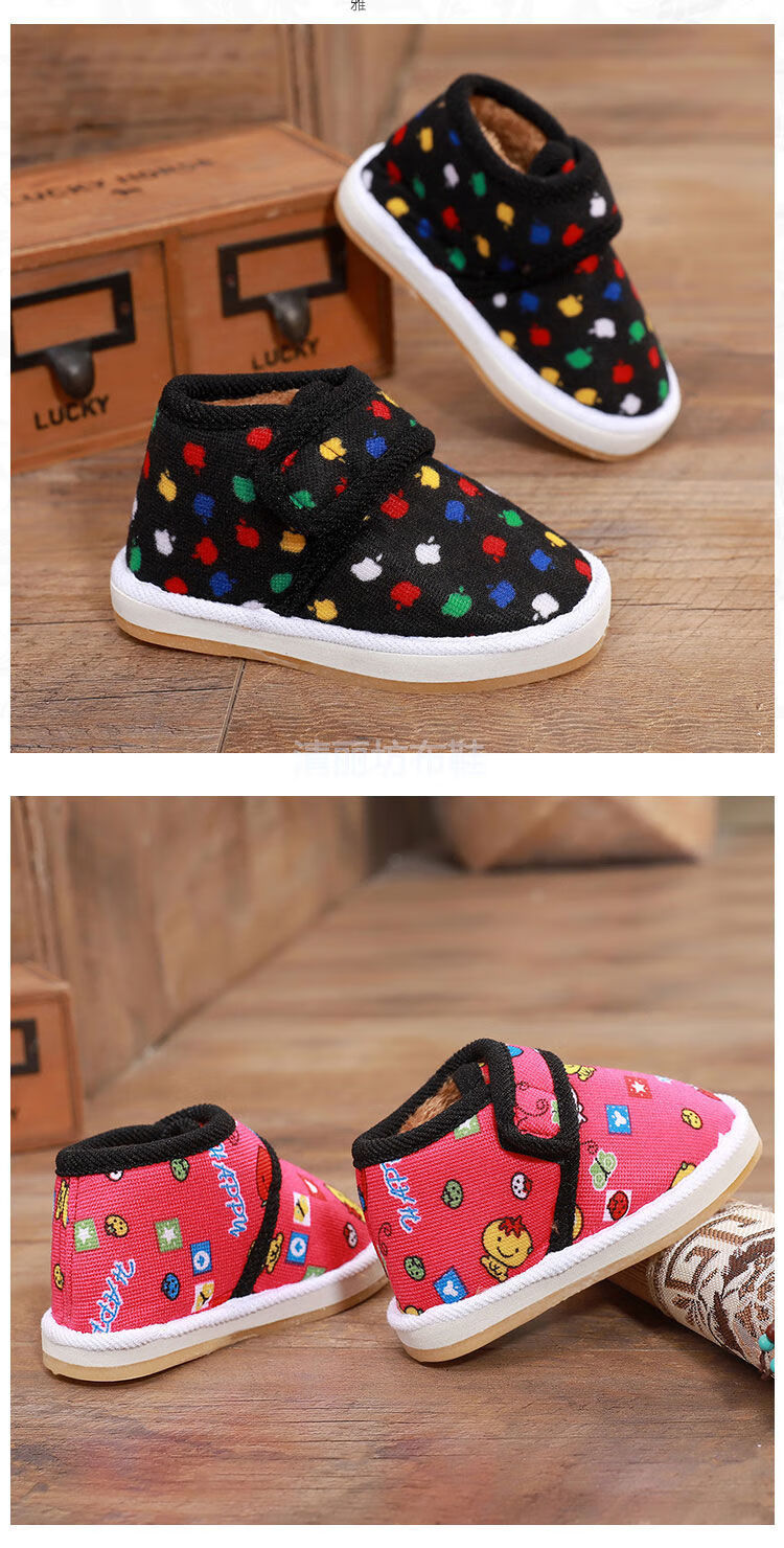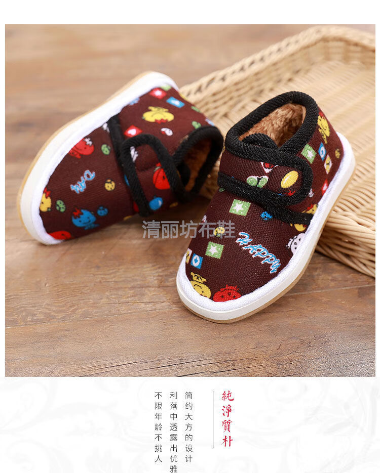 Lingka Qi's new winter velvet home slippers for boys and girls, baby non-slip warm thickened cloth shoes, two children's cotton shoes, brown little happy 14 (inner length 14cm, about 15-18 months)