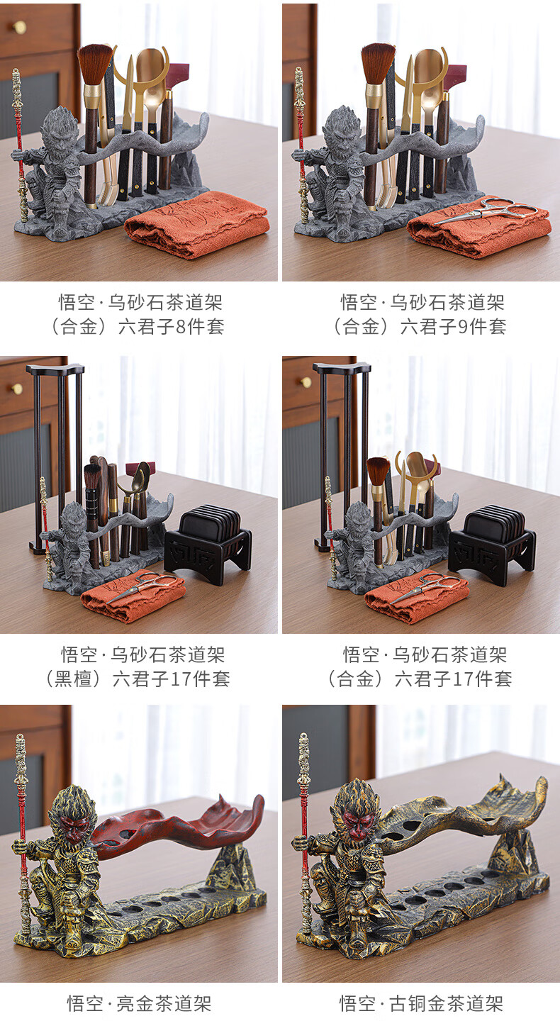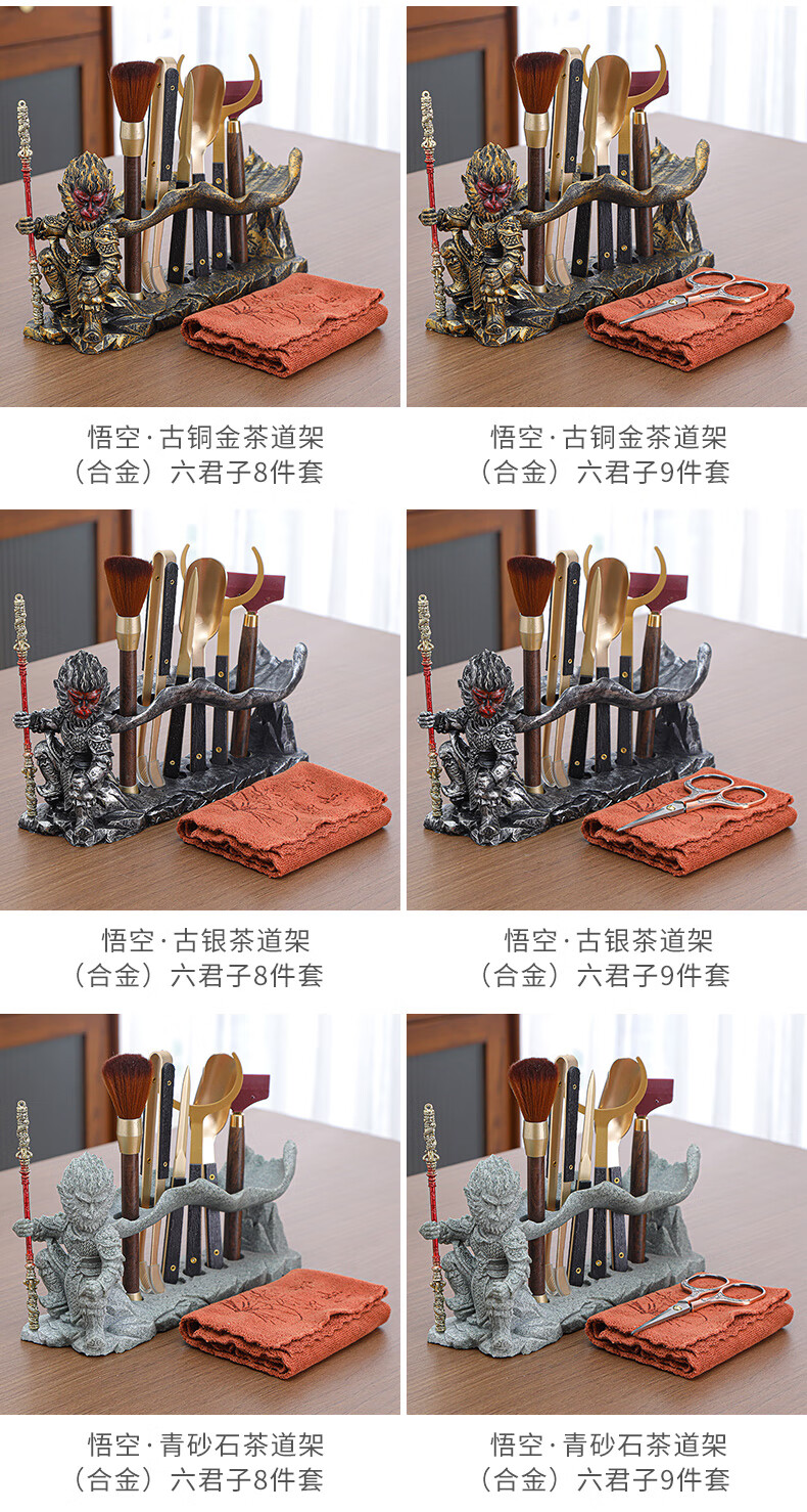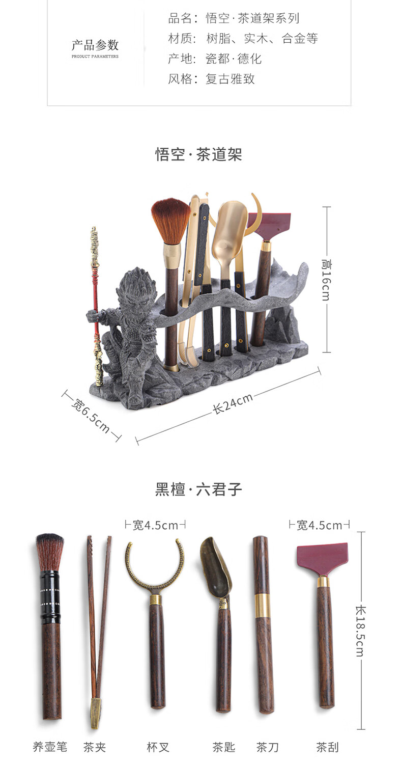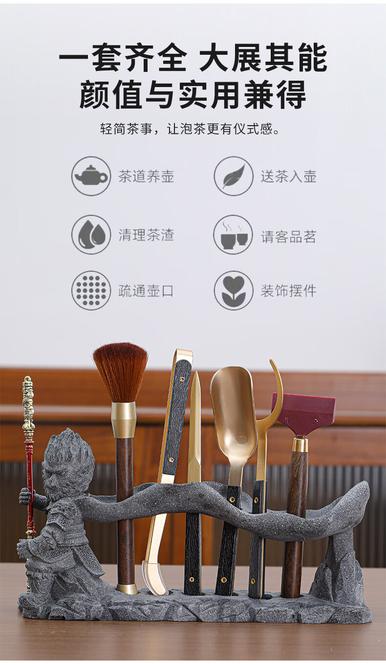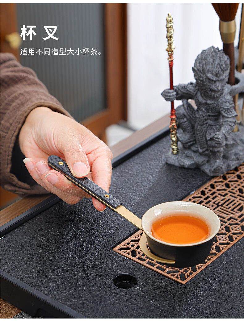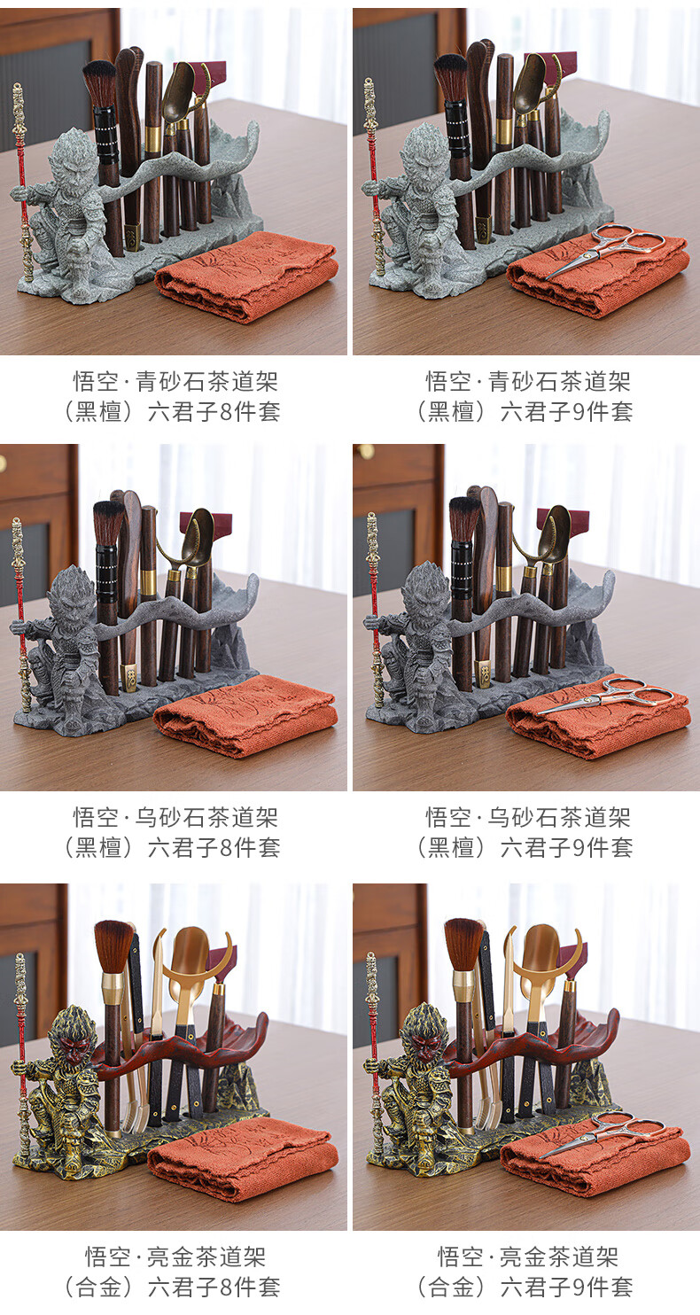 Yunxu Wukong Tea Ceremony Six Gentlemen Set Kung Fu Tea Set Complete Collection of Tea Clips Tea Scrapers Tea Knives Tea Cup Holders Tools Tea Making Accessories Wukong Bronze Gold Tea Ceremony Ebony Six Gentlemen 9 Pieces