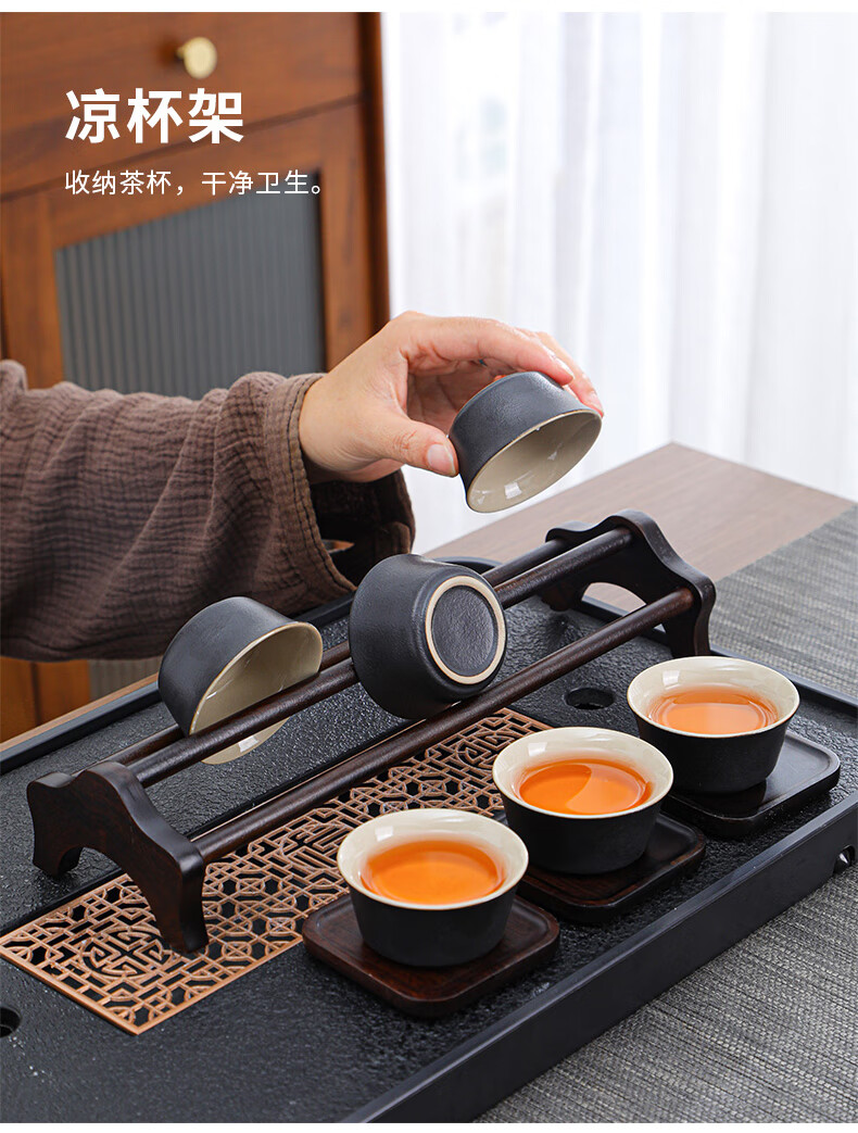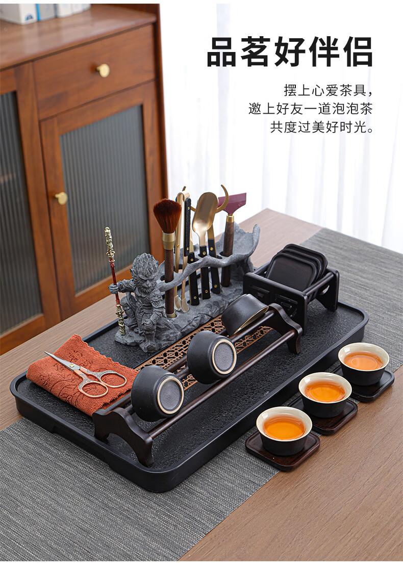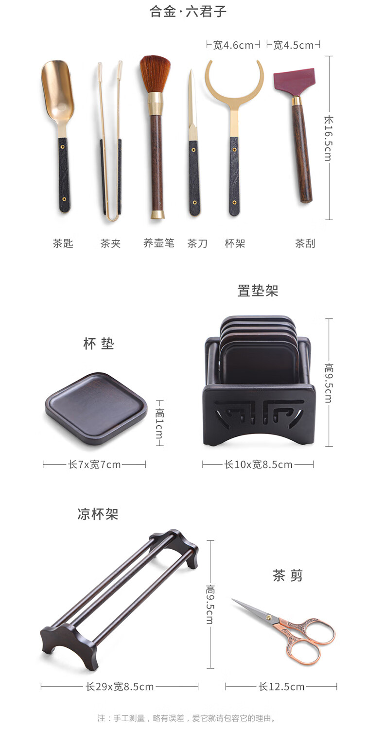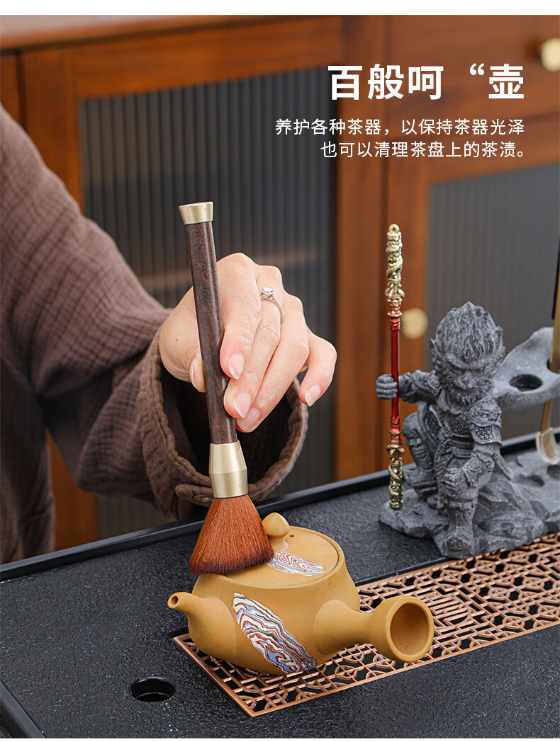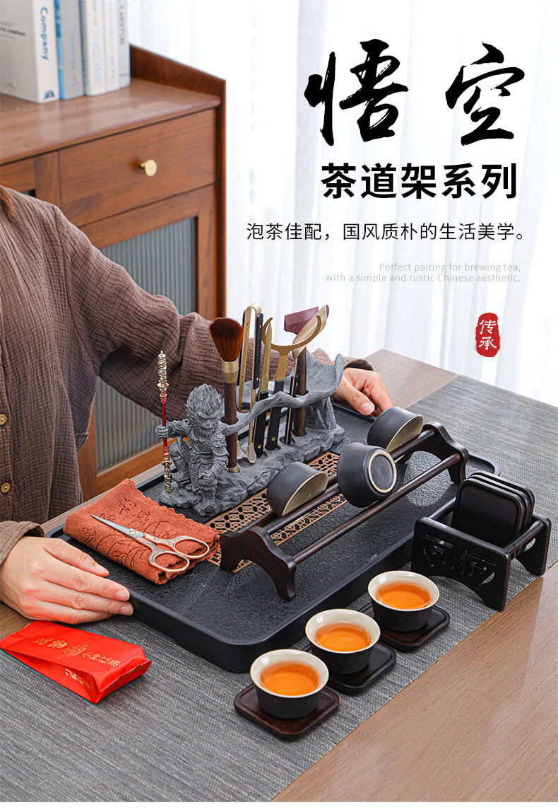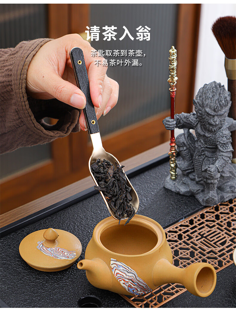 Yunxu Wukong Tea Ceremony Six Gentlemen Set Kung Fu Tea Set Complete Collection of Tea Clips Tea Scrapers Tea Knives Tea Cup Holders Tools Tea Making Accessories Wukong Bronze Gold Tea Ceremony Ebony Six Gentlemen 9 Pieces