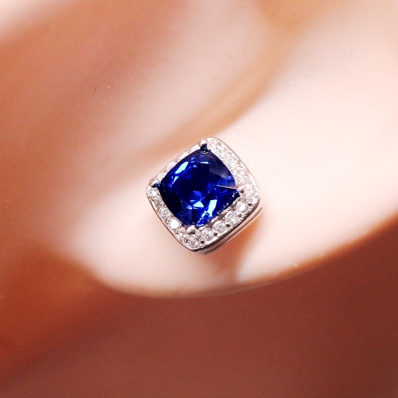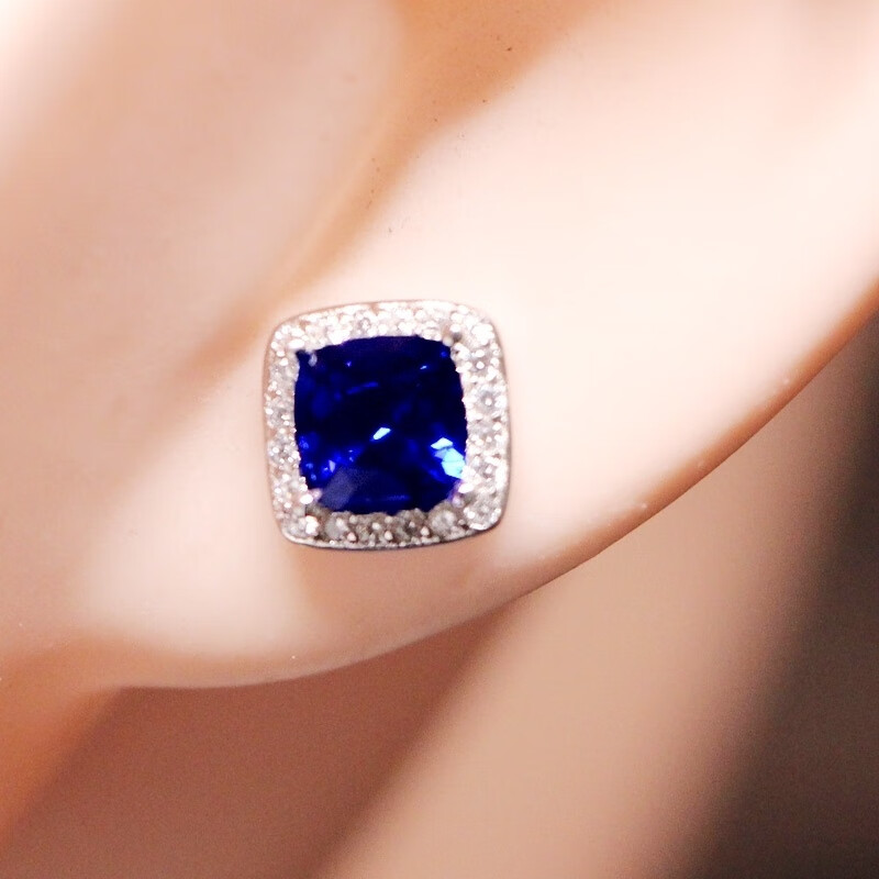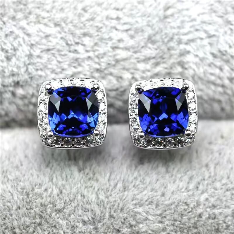 Cheng Yuanxiang CREORISETIN pillow-shaped square tanzanite sapphire earrings for women sterling silver diamond temperament blue tanzanite earrings colored gemstone jewelry white gold / 1 pair
