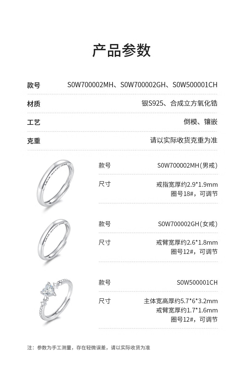 Chow Tai Sang sterling silver ring true love everlasting couple ring niche design ring gift plain silver ring