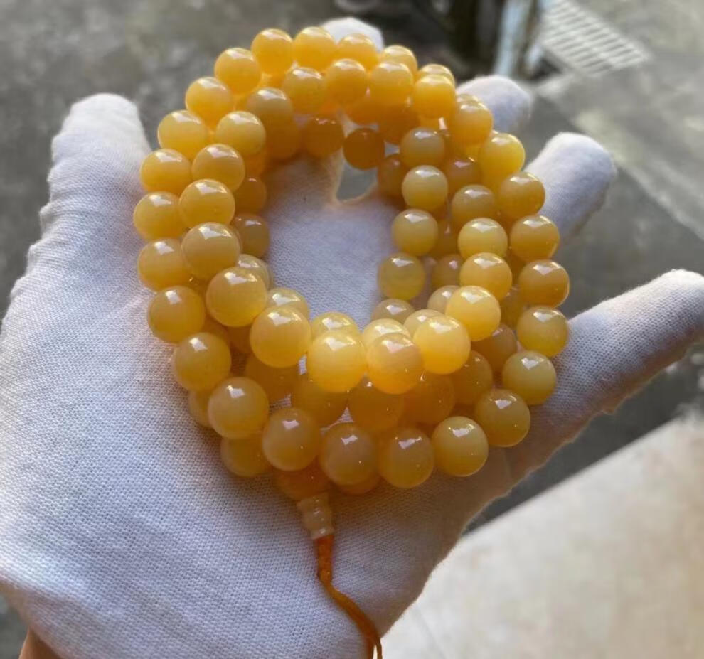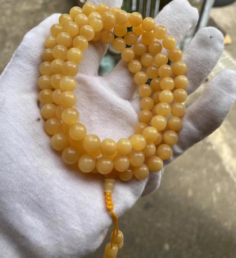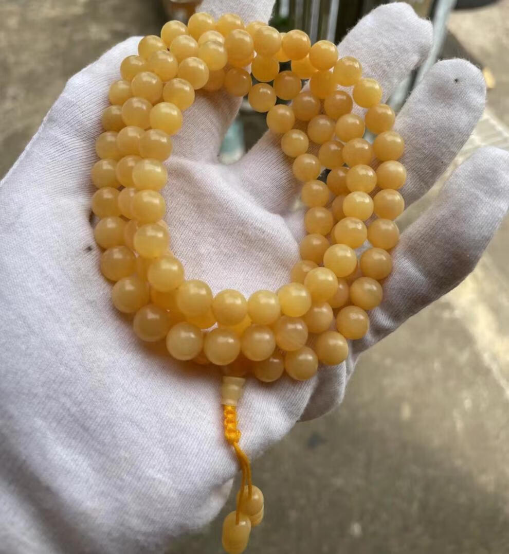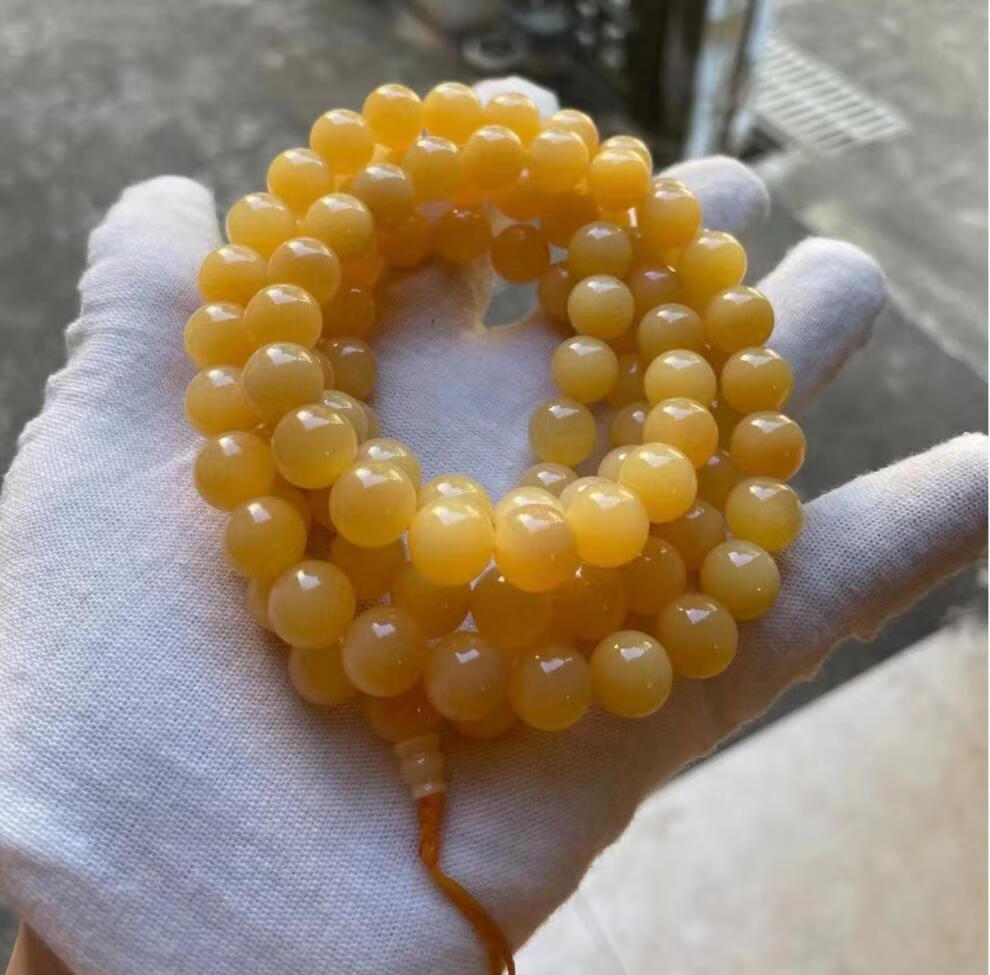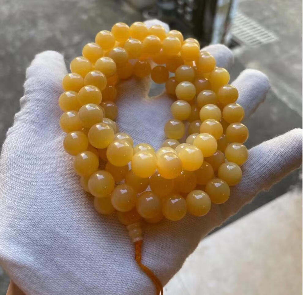 Knock Knock Love Hainan Shell Bracelet 108 Necklace Buddhist Bracelet Natural Chicken Fat Yellow Xinjiang Gold Silk White Jade Bead Chain for Men and Women 8mm Dark Yellow Single Circle 22 Flawless