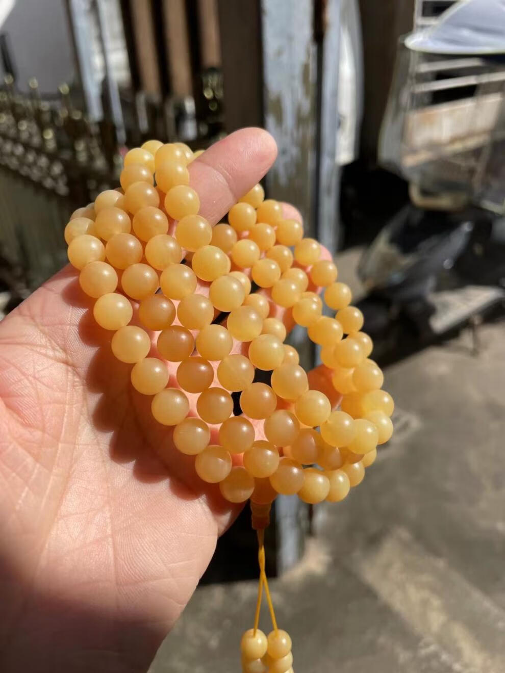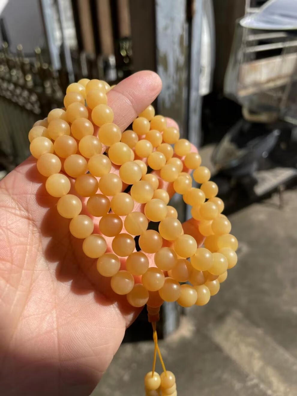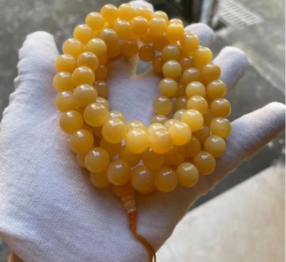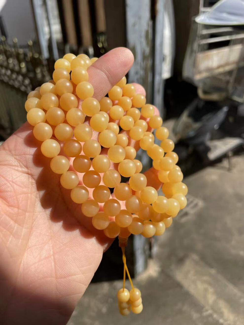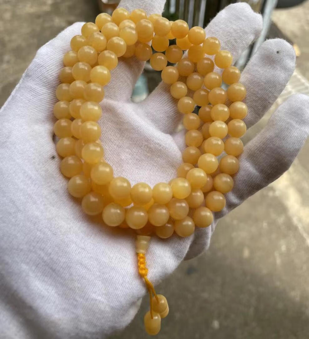 Knock Knock Love Hainan Shell Bracelet 108 Necklace Buddhist Bracelet Natural Chicken Fat Yellow Xinjiang Gold Silk White Jade Bead Chain for Men and Women 8mm Dark Yellow Single Circle 22 Flawless