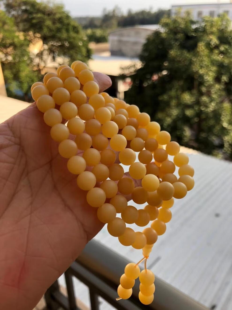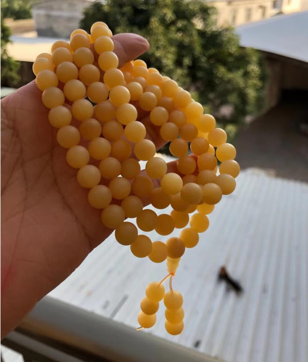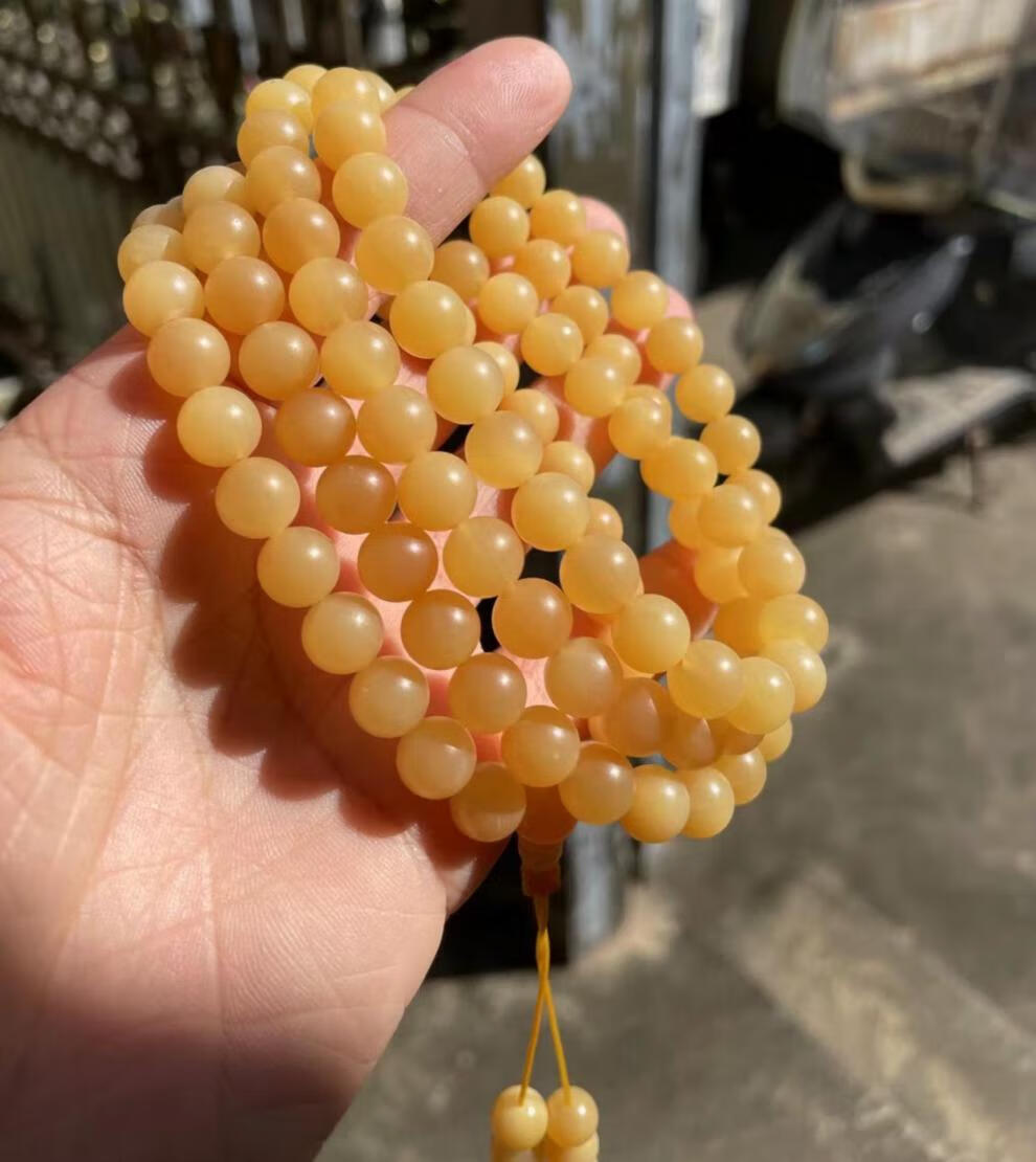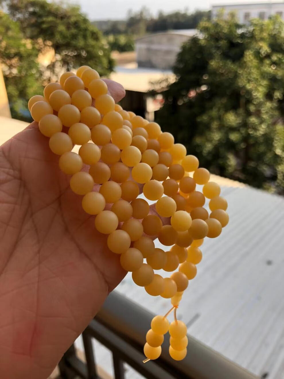 Knock Knock Love Hainan Shell Bracelet 108 Necklace Buddhist Bracelet Natural Chicken Fat Yellow Xinjiang Gold Silk White Jade Bead Chain for Men and Women 8mm Dark Yellow Single Circle 22 Flawless