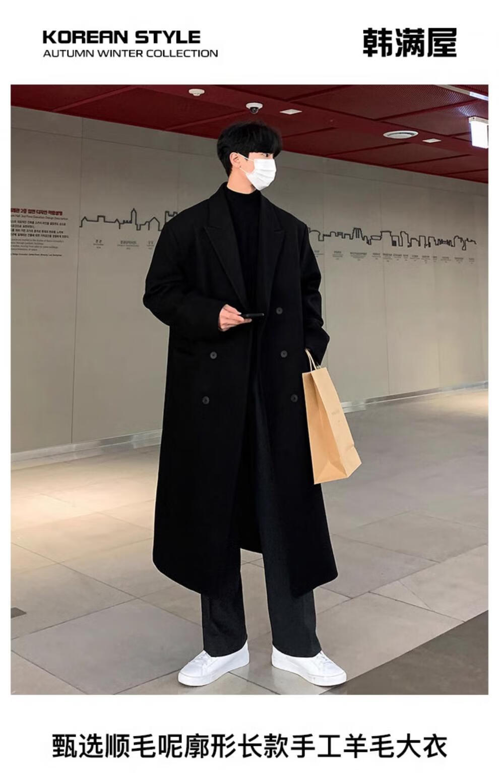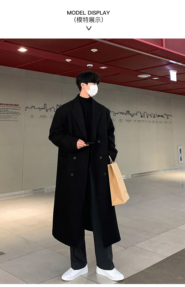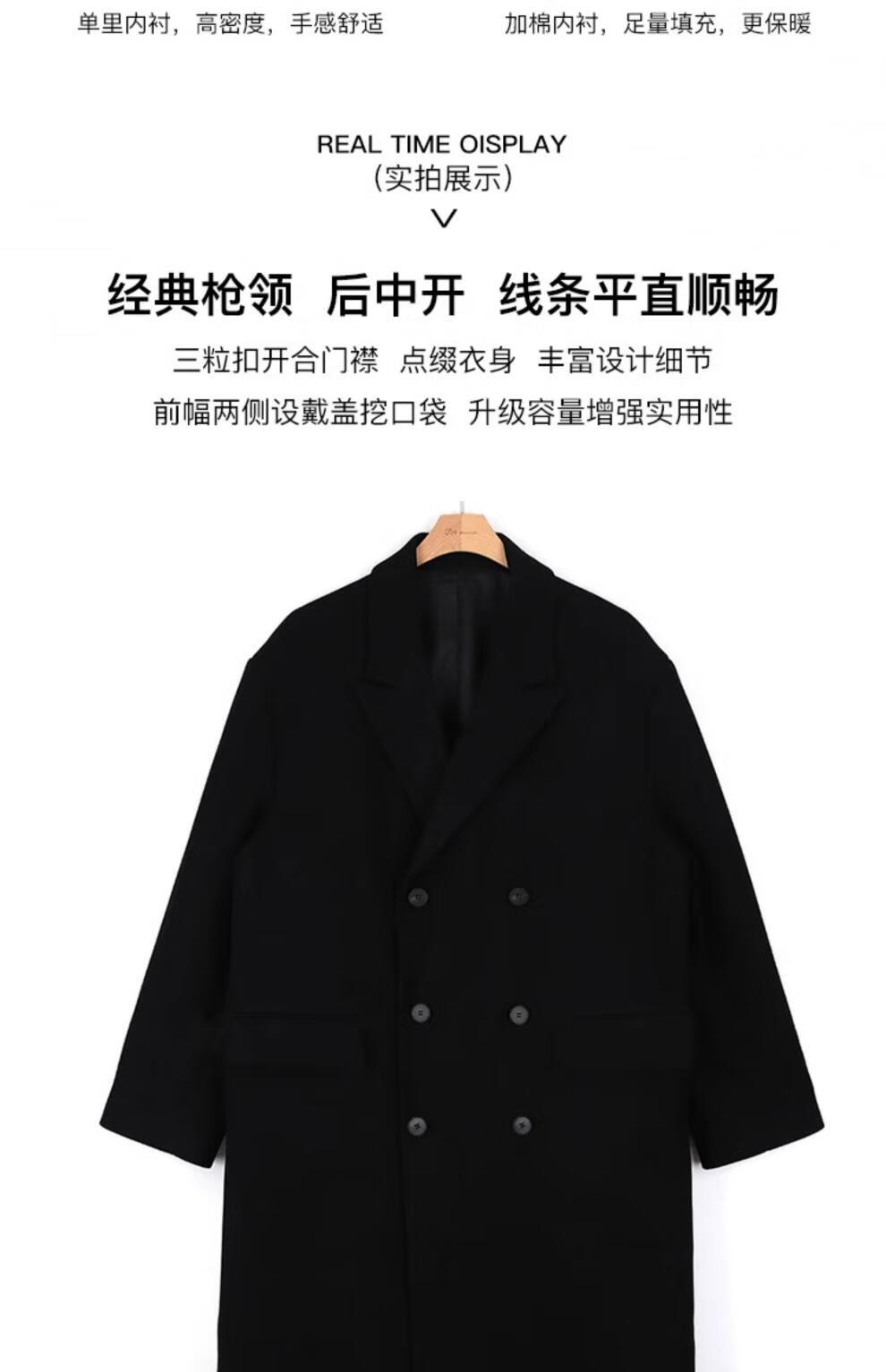 ROMON's new woolen coat, men's mid-length knee-length cashmere woolen double-sided wool windbreaker coat, winter Korean style coat, black and cotton (2024) XL
