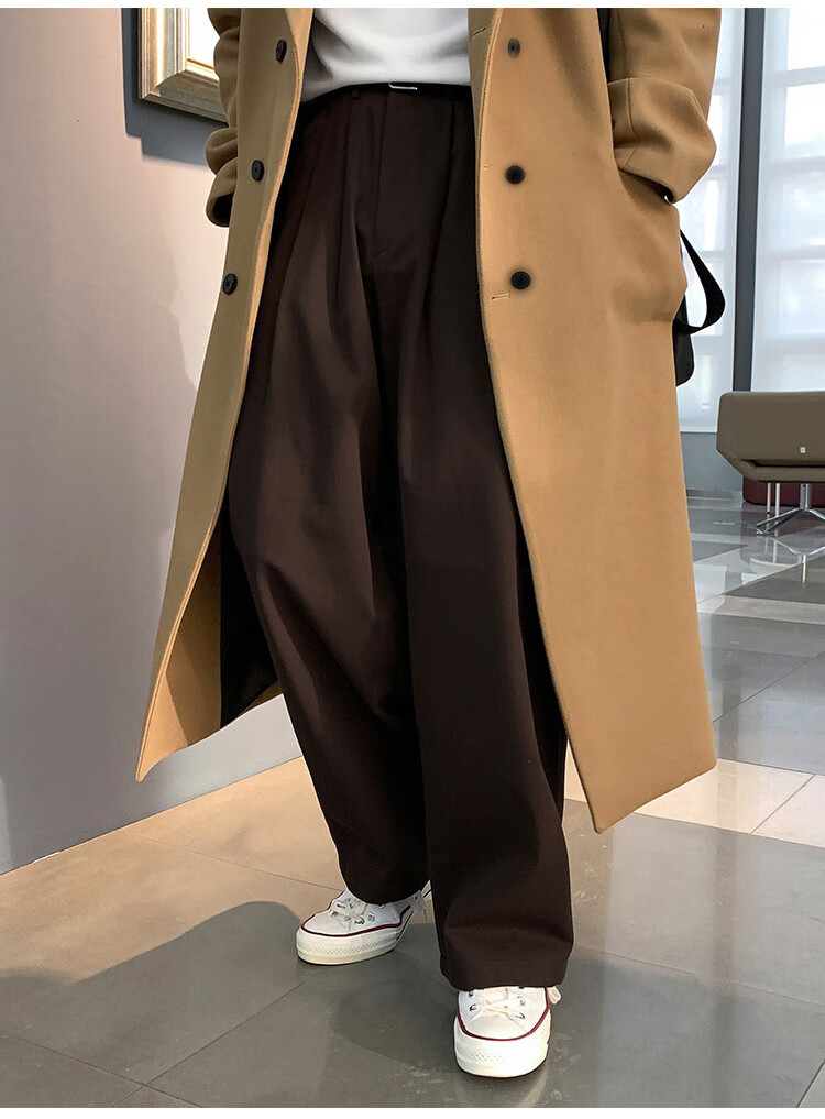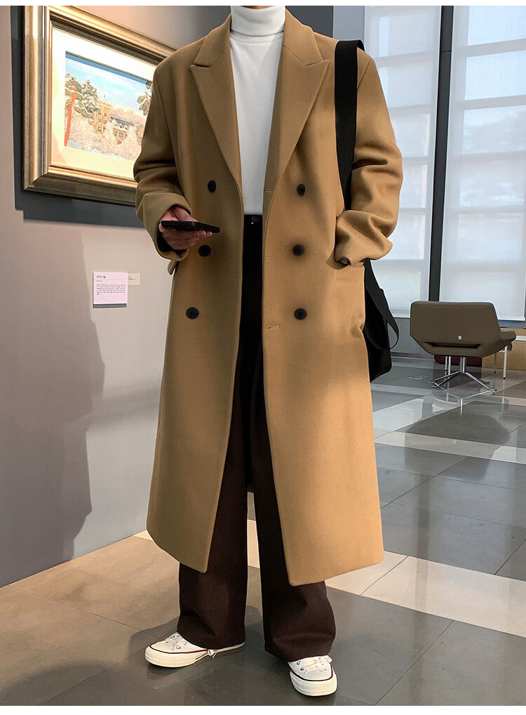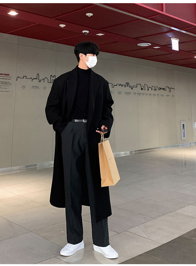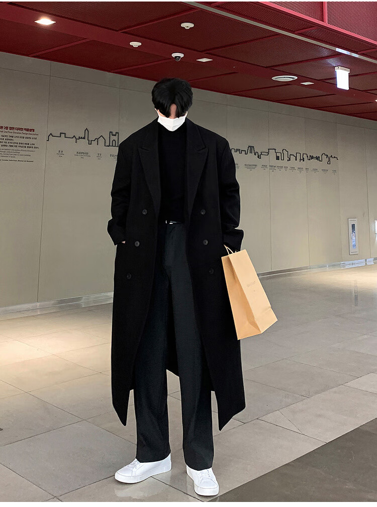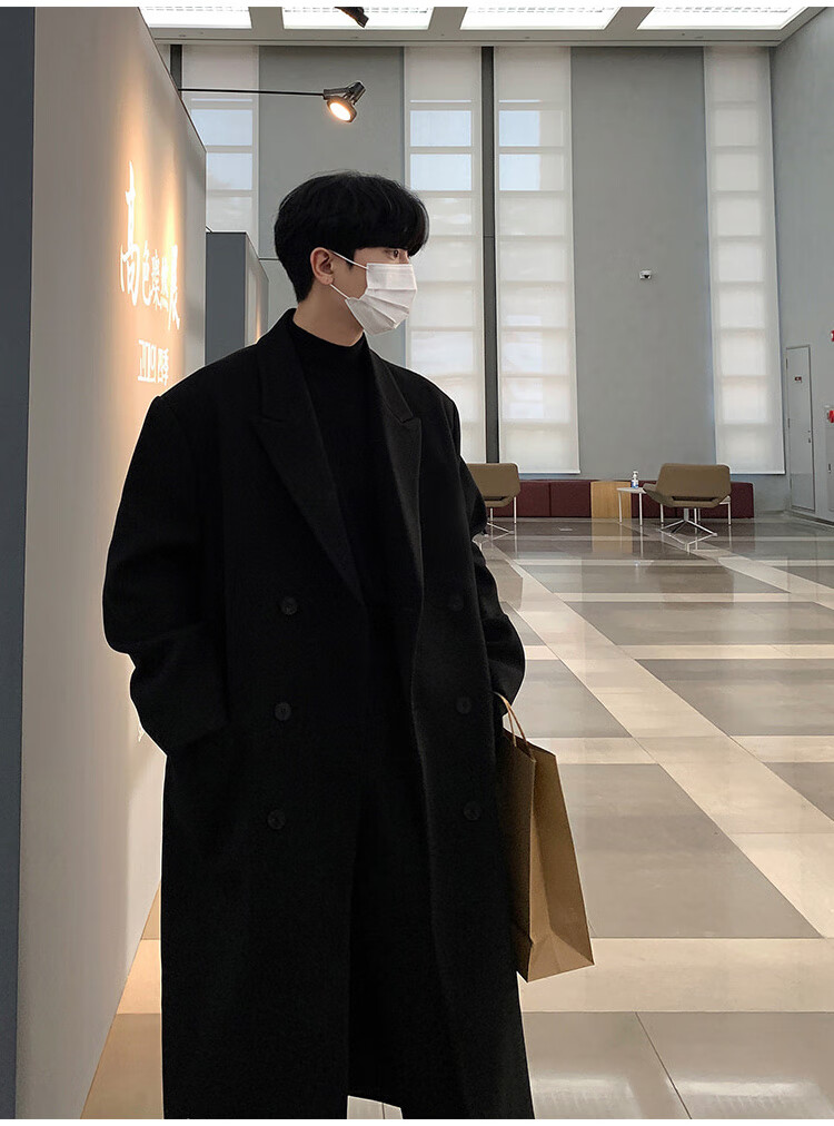 ROMON's new woolen coat, men's mid-length knee-length cashmere woolen double-sided wool windbreaker coat, winter Korean style coat, black and cotton (2024) XL