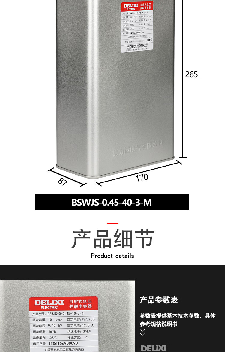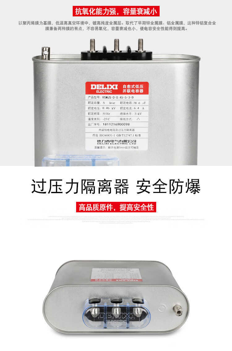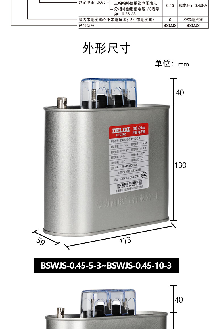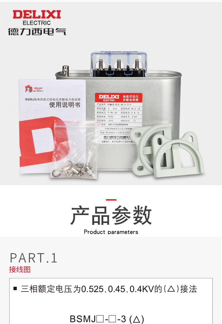 BSMJS-0.45 self-healing low-voltage parallel power capacitor withstand voltage 450V power compensation 20-3 415V (0415) 20-3