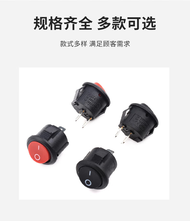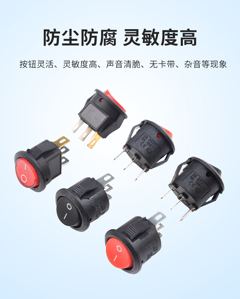 KCD5 small round boat-shaped switch, power supply, 2-pin, 2-speed, 3-pin boat-shaped hole, 15mm rocker, black/red with light, red, 3-pin, 2-speed (2 pieces), please consult customer service for quotation for large quantities.