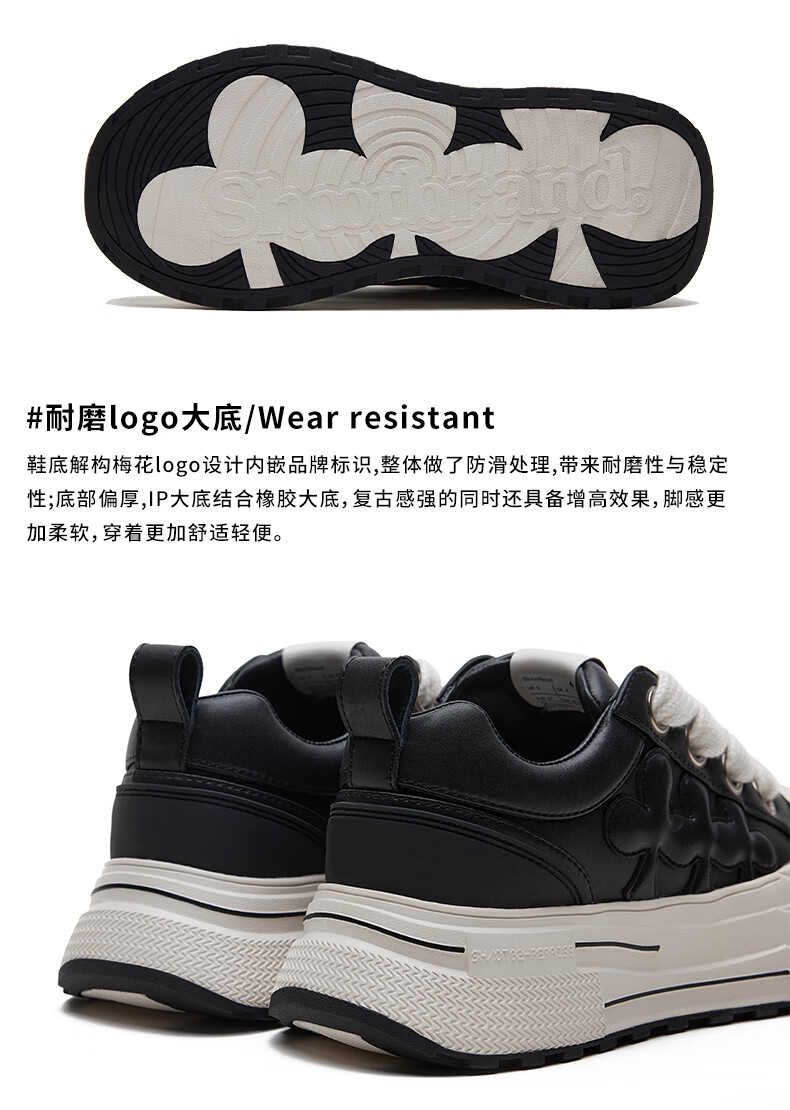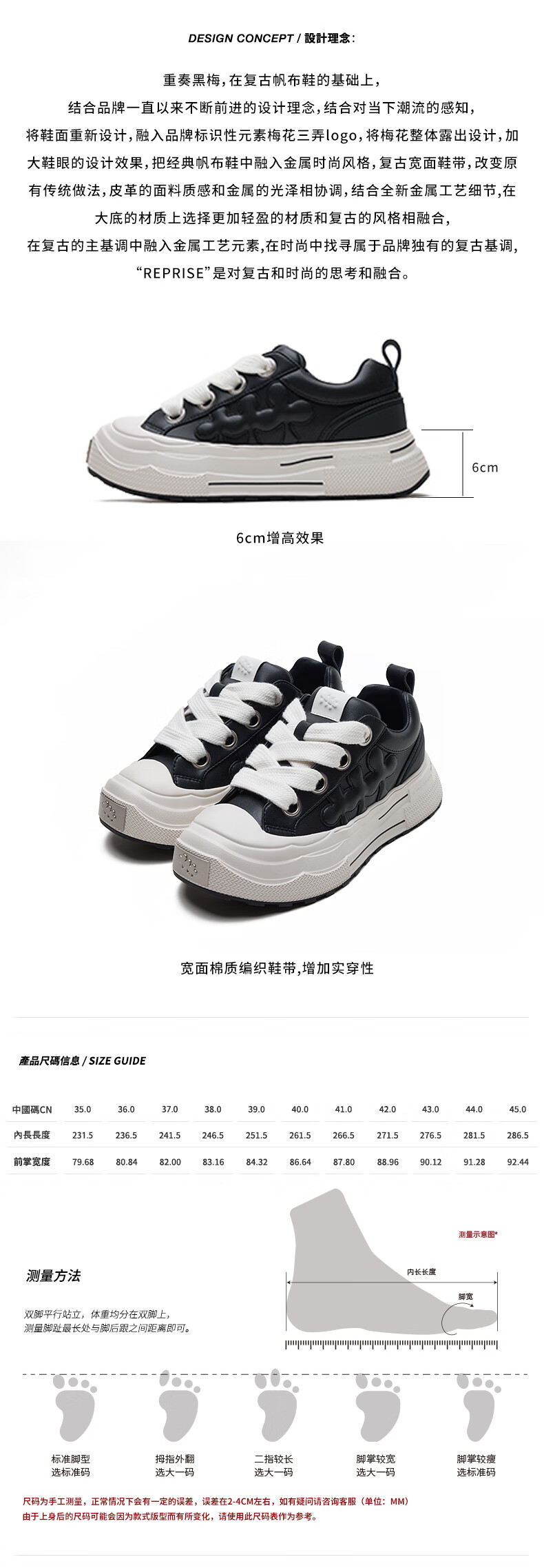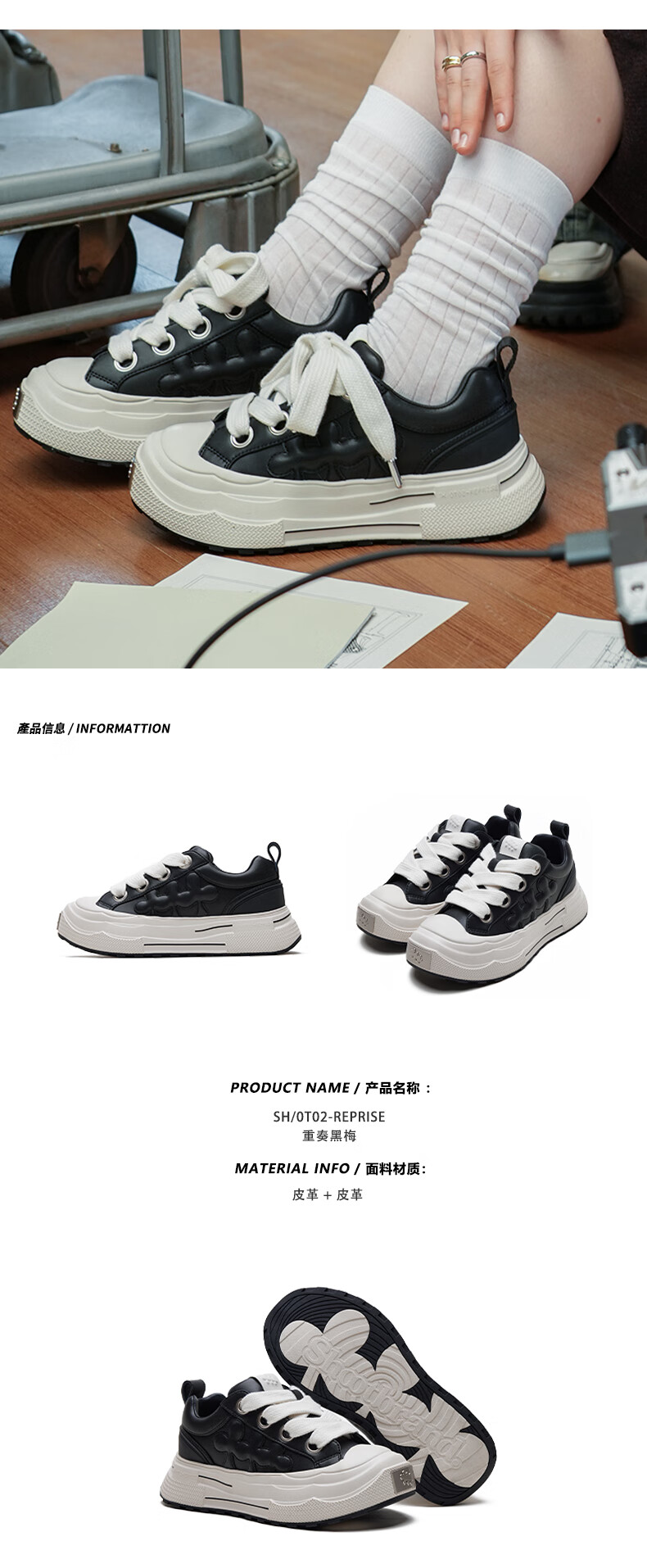 SHOOT BRAND Reprise Black Plum Sneakers for Men and Women Thick-soled Heightened Retro Leather Bread Shoes Plum Blossom Shoes Autumn and Winter Black 37