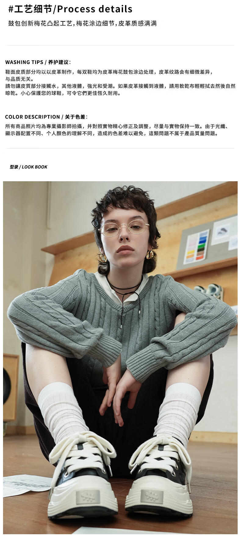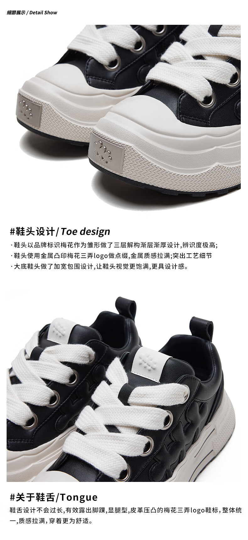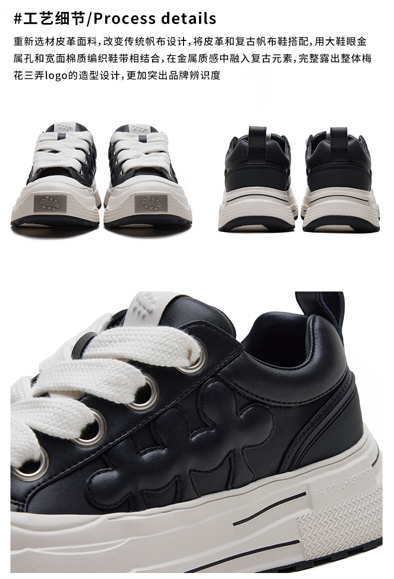 SHOOT BRAND Reprise Black Plum Sneakers for Men and Women Thick-soled Heightened Retro Leather Bread Shoes Plum Blossom Shoes Autumn and Winter Black 37