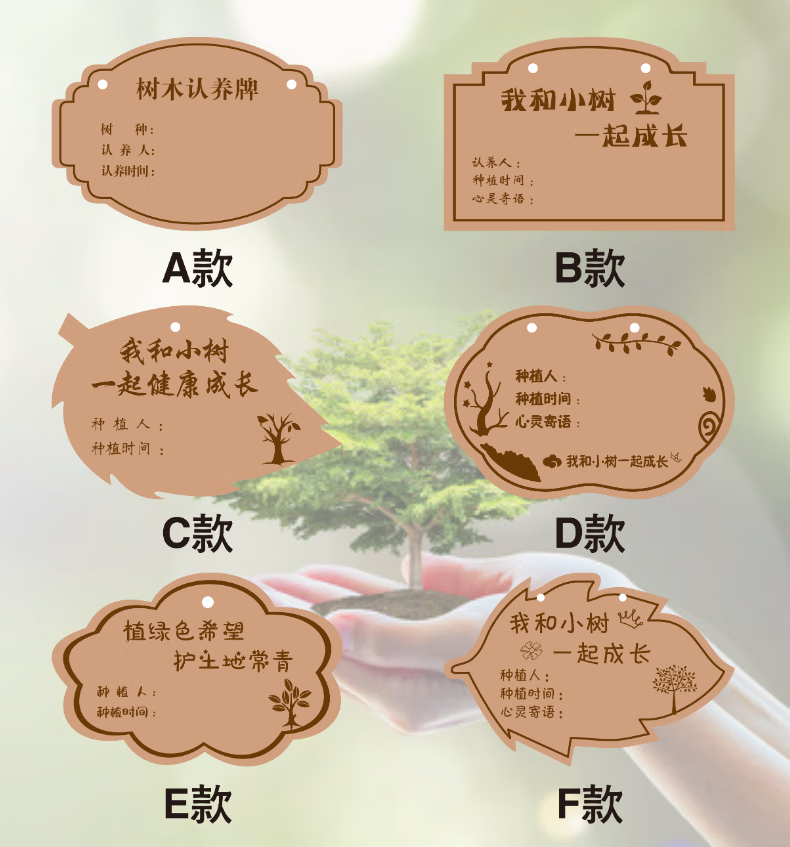 Qiyuemang high-quality Arbor Day listing tree tag tree adoption tag recognition tag plant tag small sapling brand tree name style one (bassin board). 10 pcs.