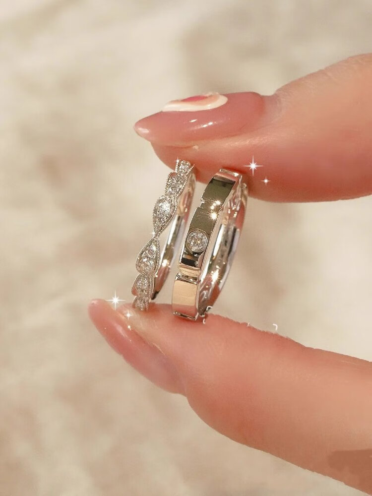 Oein wedding rings, simulated pair of fake diamond rings, wedding props, bride couple rings, a pair of exchange ceremony proposal rings, crowning rings for love, including 2 ring boxes, the opening is adjustable