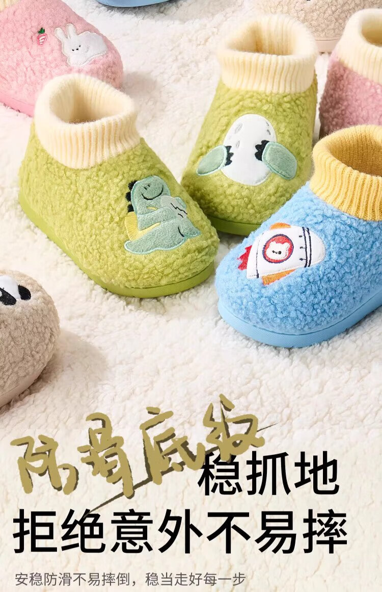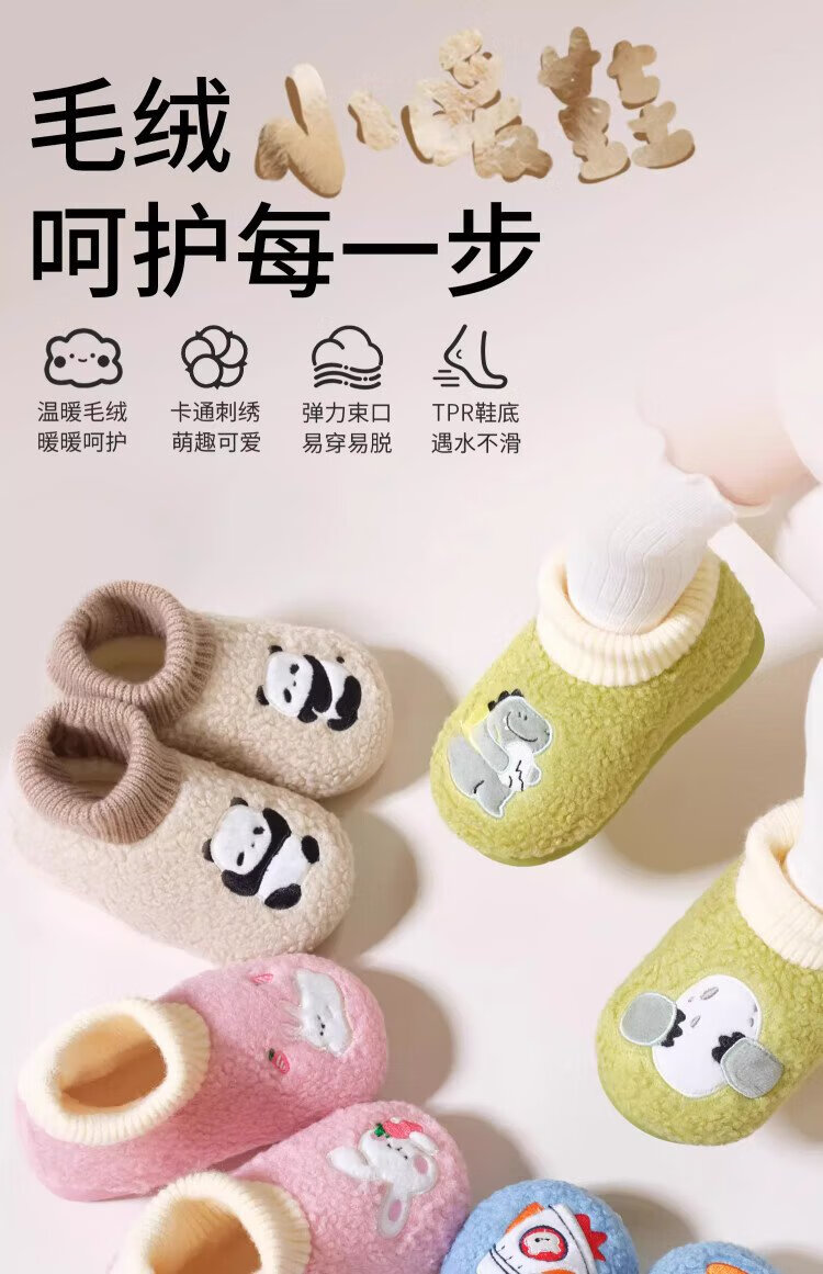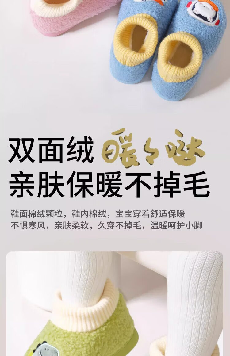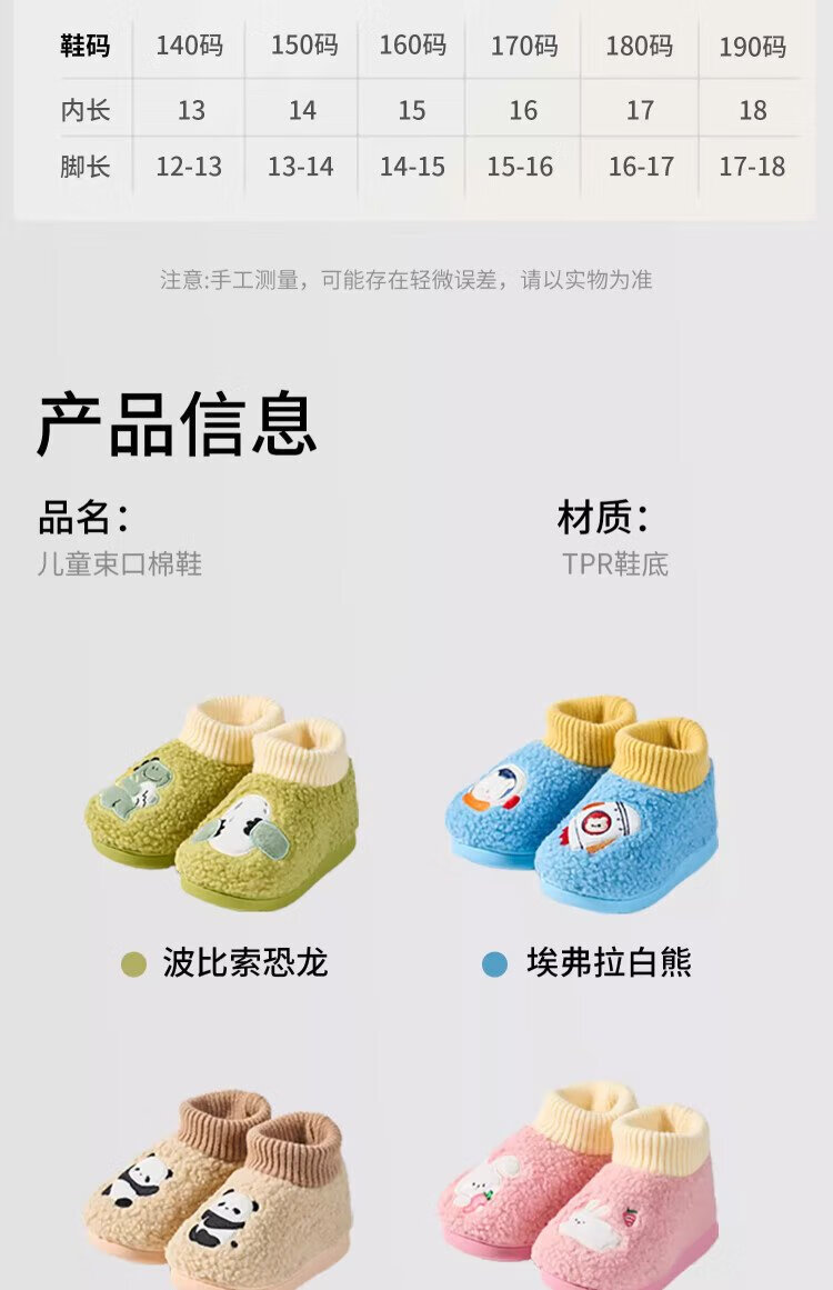 Kechao children's cotton shoes with bag heel, autumn and winter baby cotton slippers, non-slip, warm and non-falling home shoes for men, Andri Panda 160mm, suitable for feet length 13.5-14.5cm